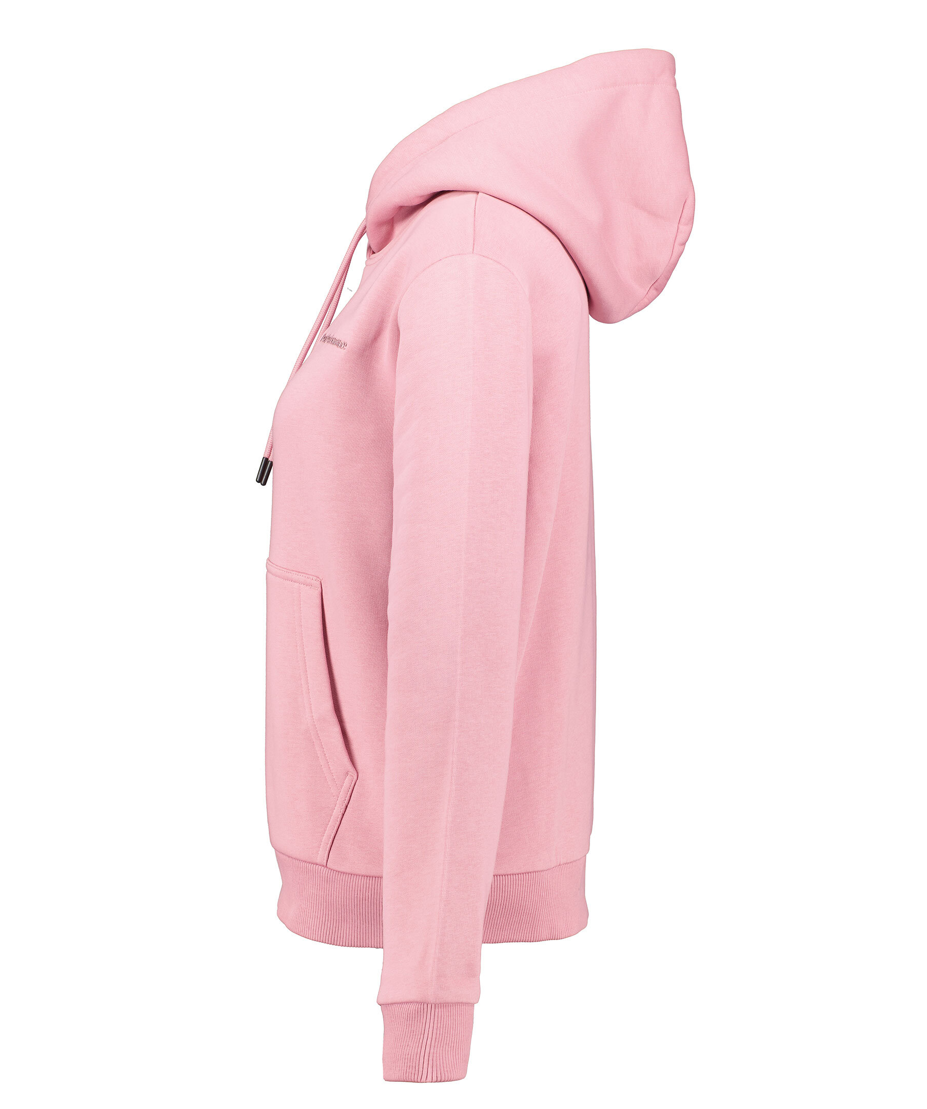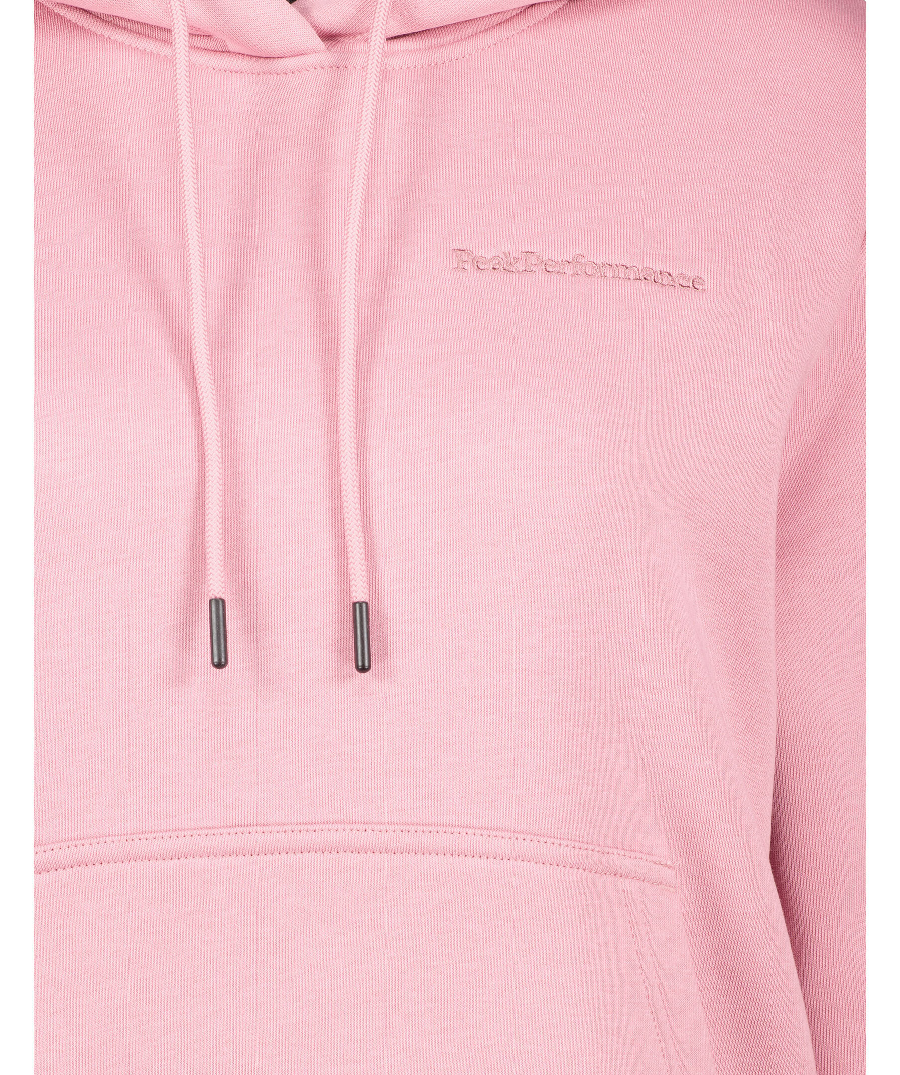 Rosa hoodie från Peak Performance. Tröjan är gjord i en ekologisk bomullsblandning. Känguruficka på magen, broderad ton-i-ton logotyp. Luva med dragsko. Ribbade muddar.