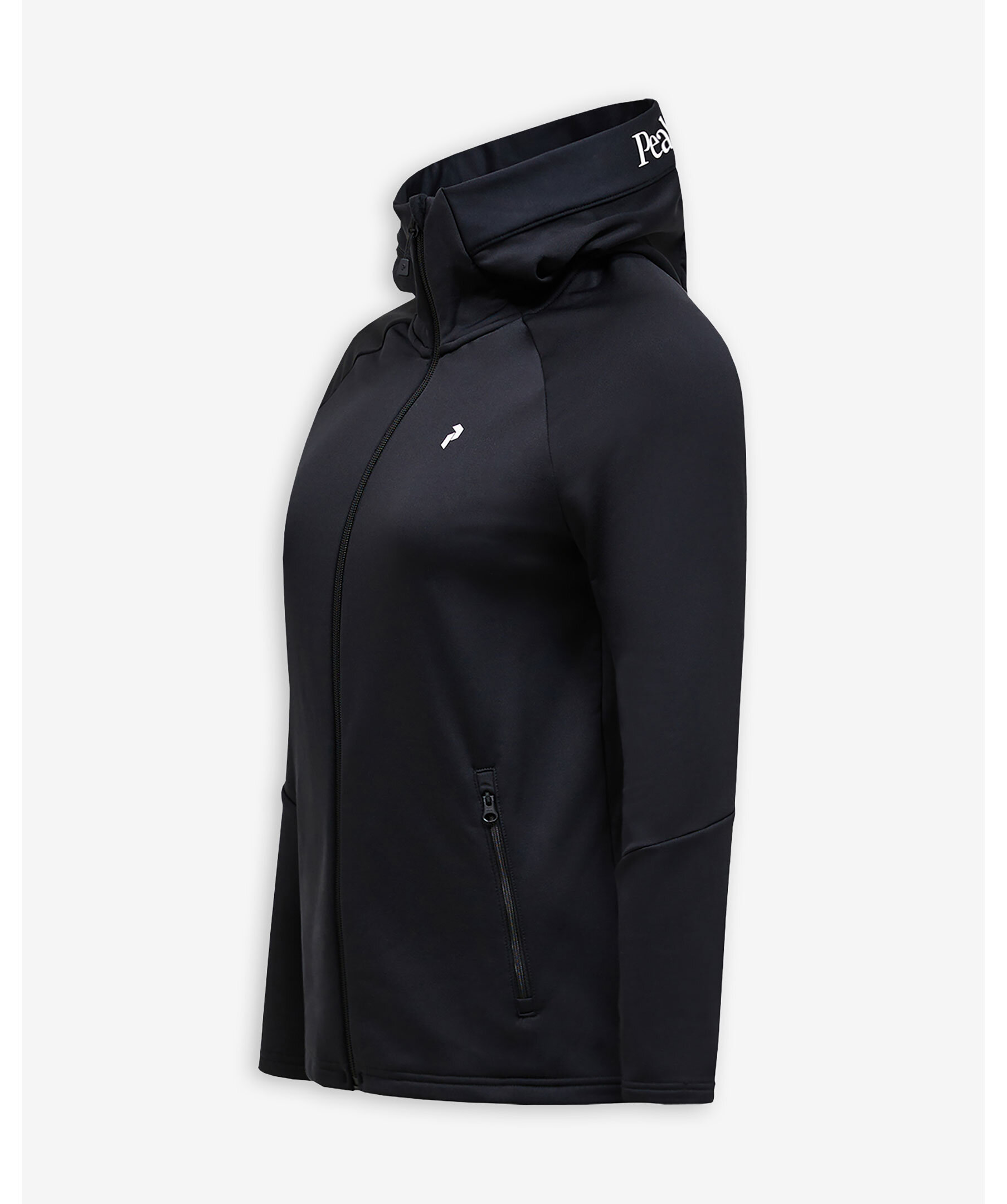Svart zip-up hoodie med huva från Peak Performance. Tröjan stängs med hel dragkedja och har en liten logotyp på bröstet samt logotyp runt huvan. Två sidfickor med dragkedja. Tillverkad i en polyesterblandning.