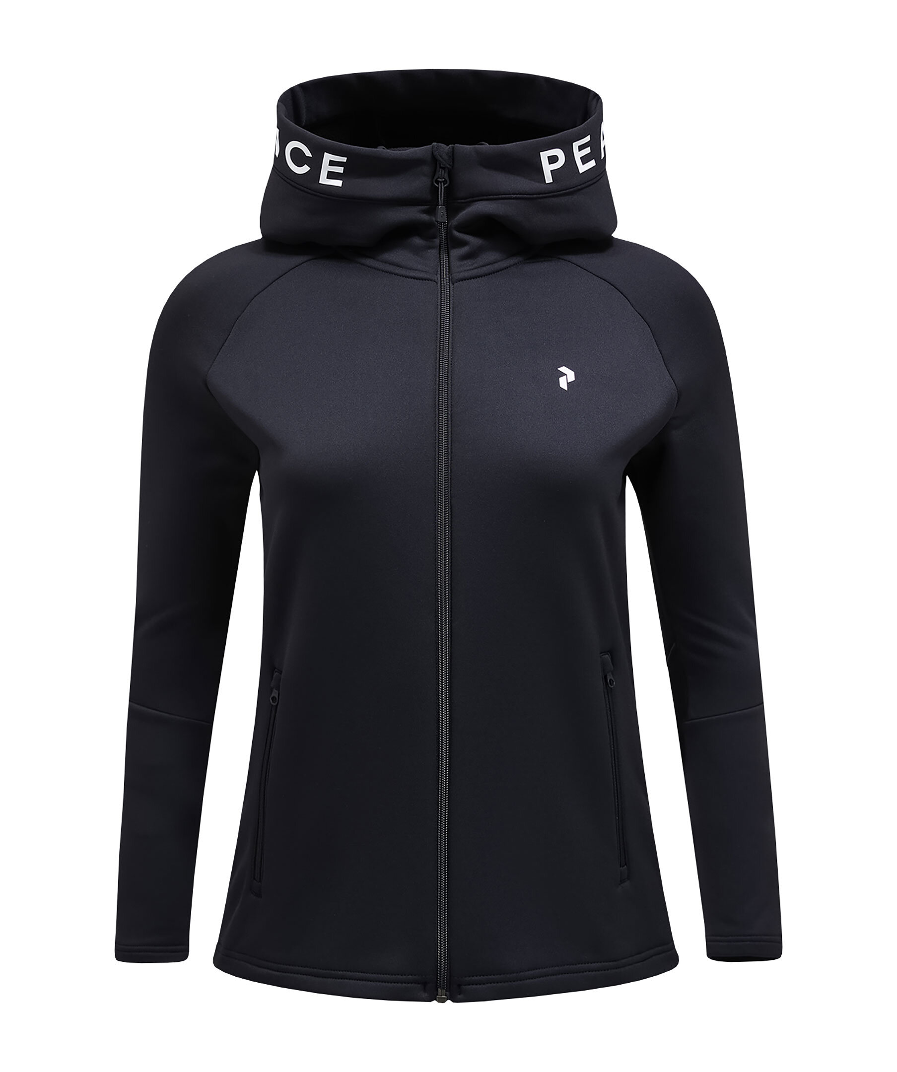 Svart zip-up hoodie med luva från Peak Performance. Tillverkad i en polyesterblandning. Liten logotyp på bröstet samt logotyp runt luvan. Två sidfickor med dragkedja. Normal passform.