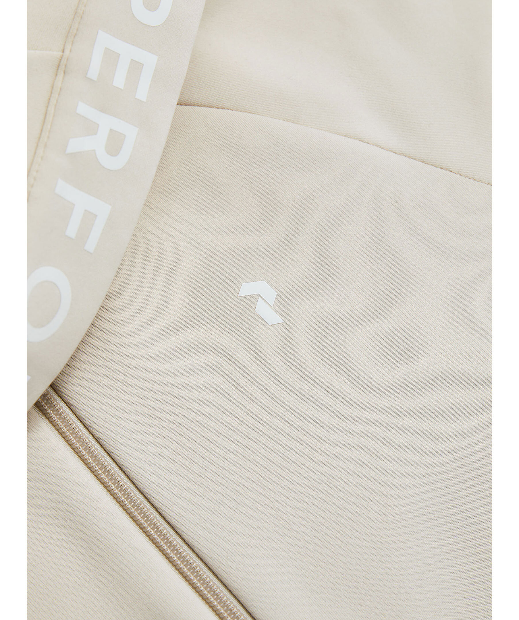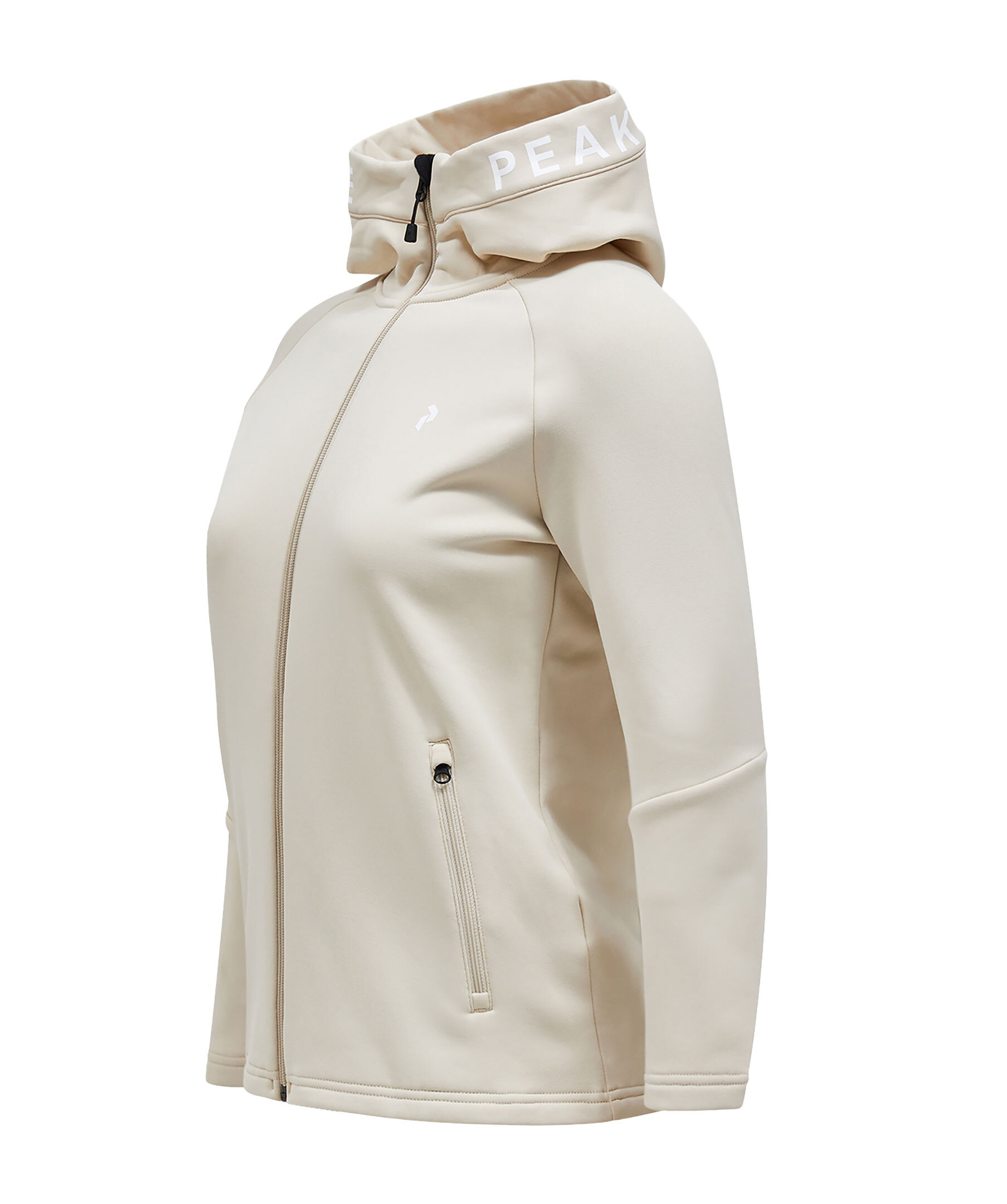 Sandfärgad zip-up hoodie med luva från Peak Performance. Tillverkad i en polyesterblandning. Liten logotyp på bröstet samt logotyp runt luvan. Två sidfickor med dragkedja. Normal passform.