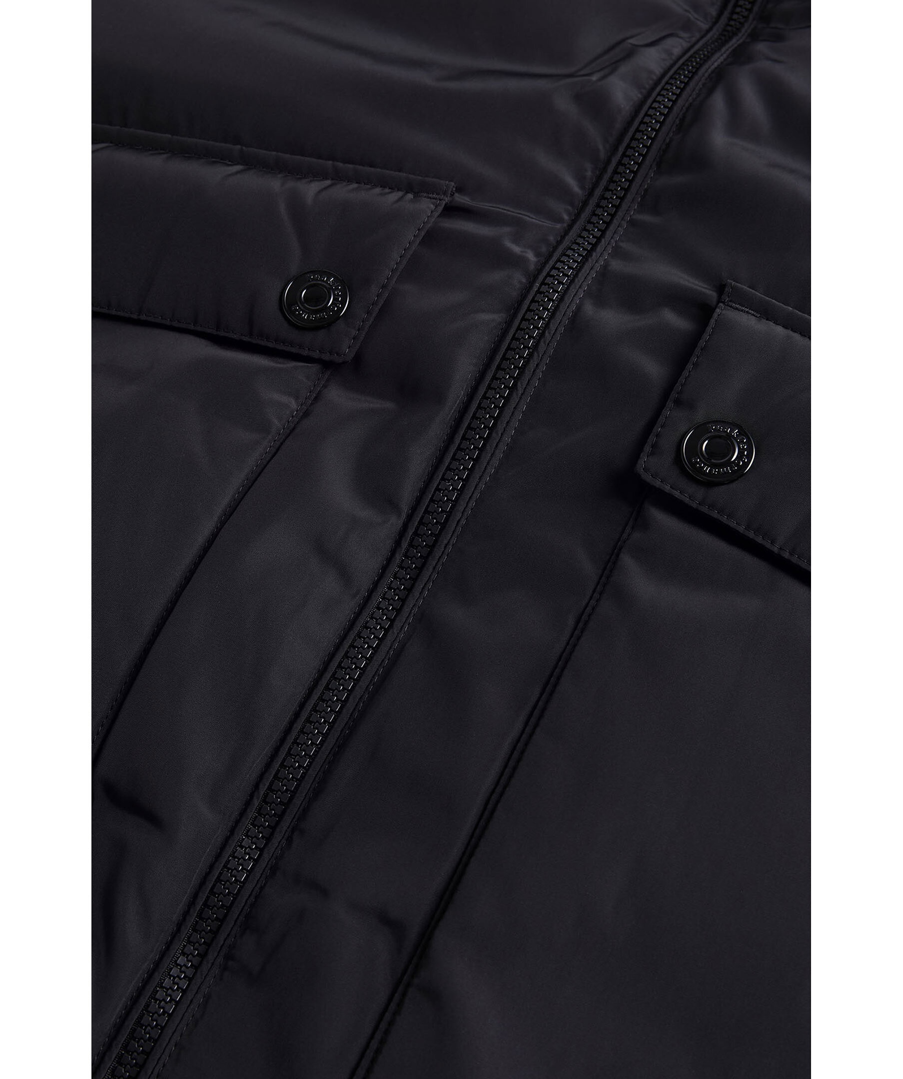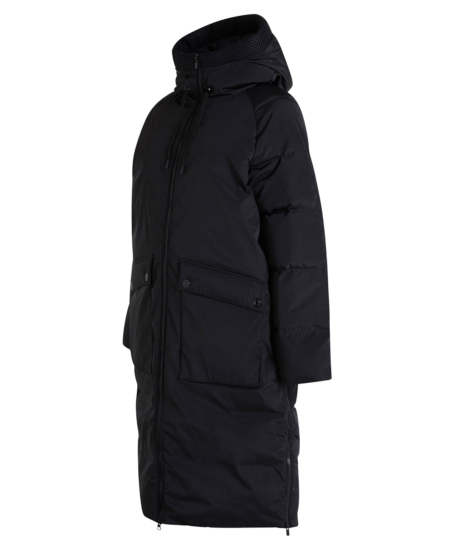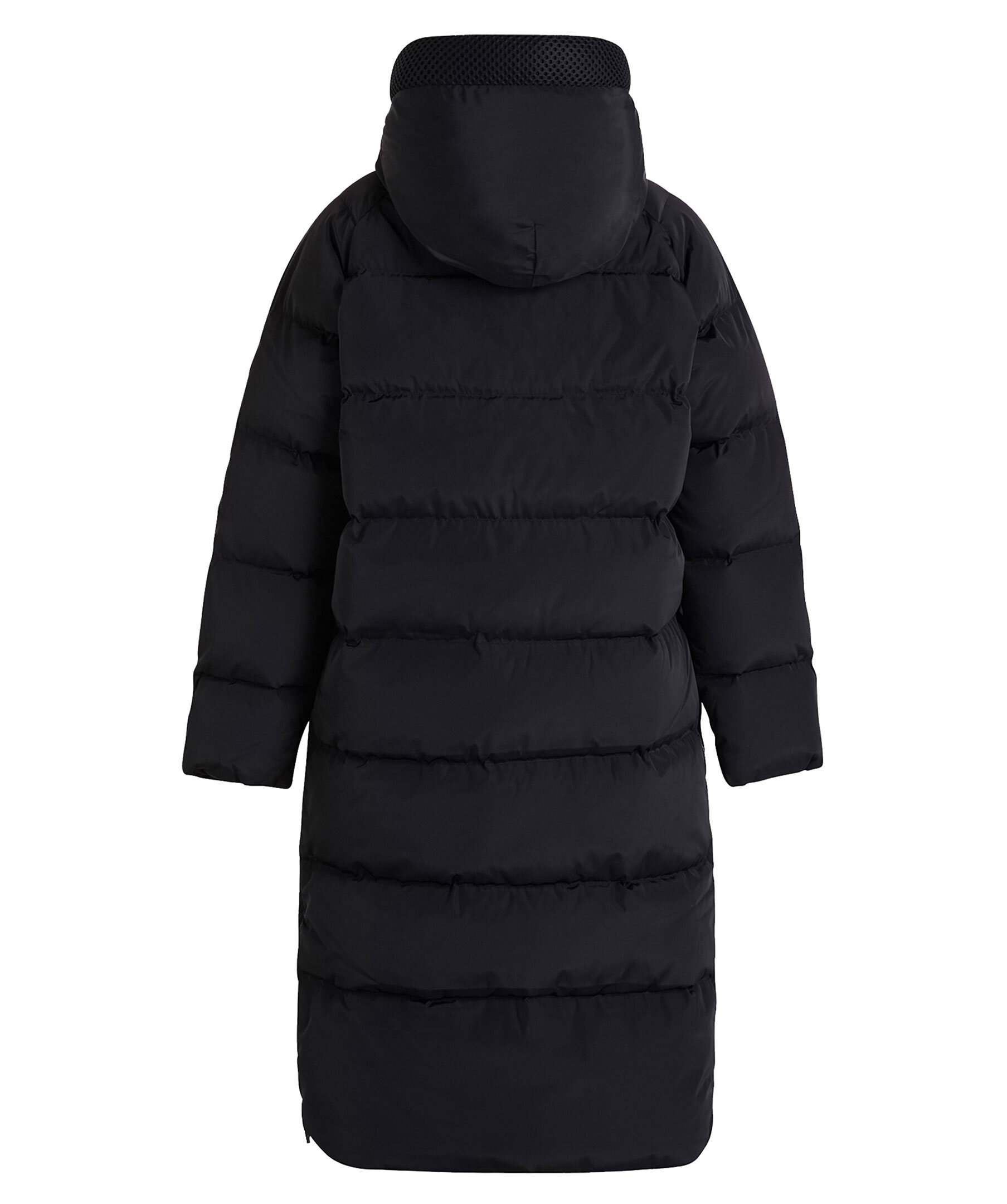 Svart dunjacka tillverkad av ett glansigt material med detaljer i 3D-mesh från Peak Performance. Jackans snygga utseende, design och den stora siluetten skapar en modern form som kan hantera lager-på-lager. Ansvarsfullt producerat dun som håller dig varm med gott samvete. Generös huva med meshdetaljer och dragsko och yttre upphängningsögla i nacken. Innerficka med dragkedja, framfickor med ficklock och tryckknappar samt tvåvägsdragkedja hela vägen fram.
