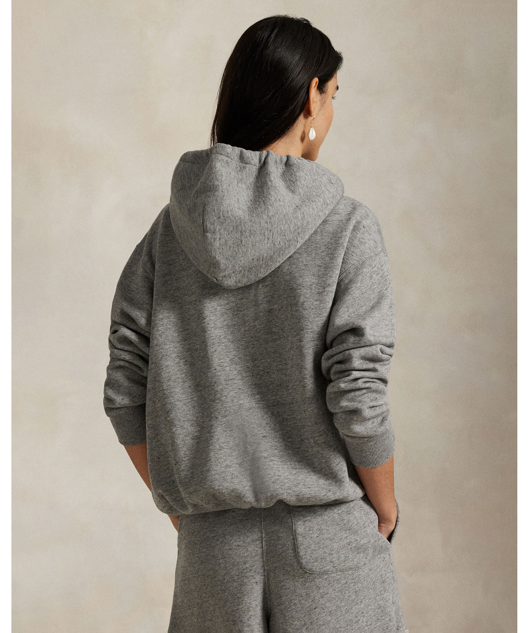 Grå hoodie från Polo Ralph Lauren. Tröjan har en avslappnad passform, klassisk polobjörn på bröstet, snörning i luvan och ribbade muddar.
