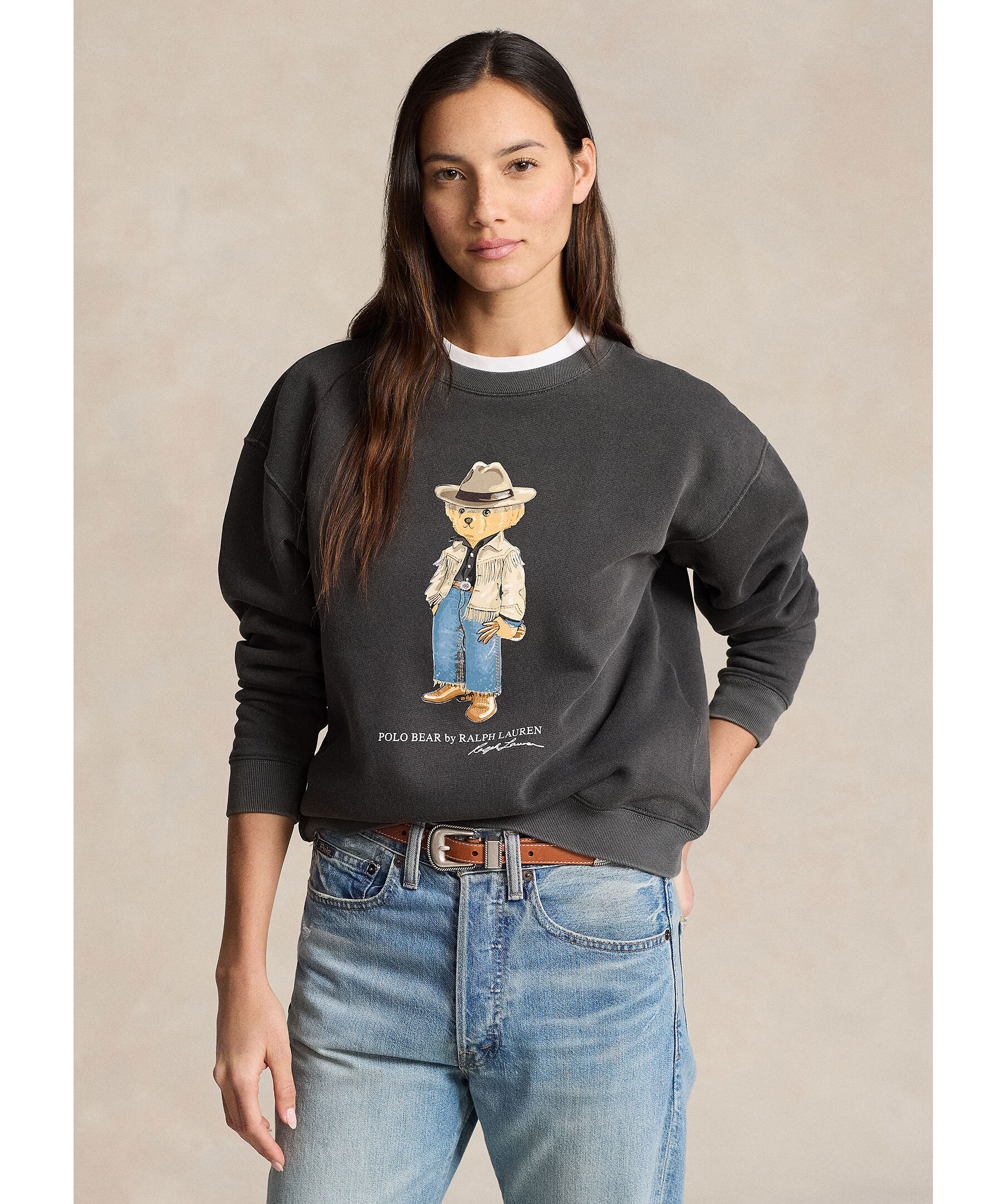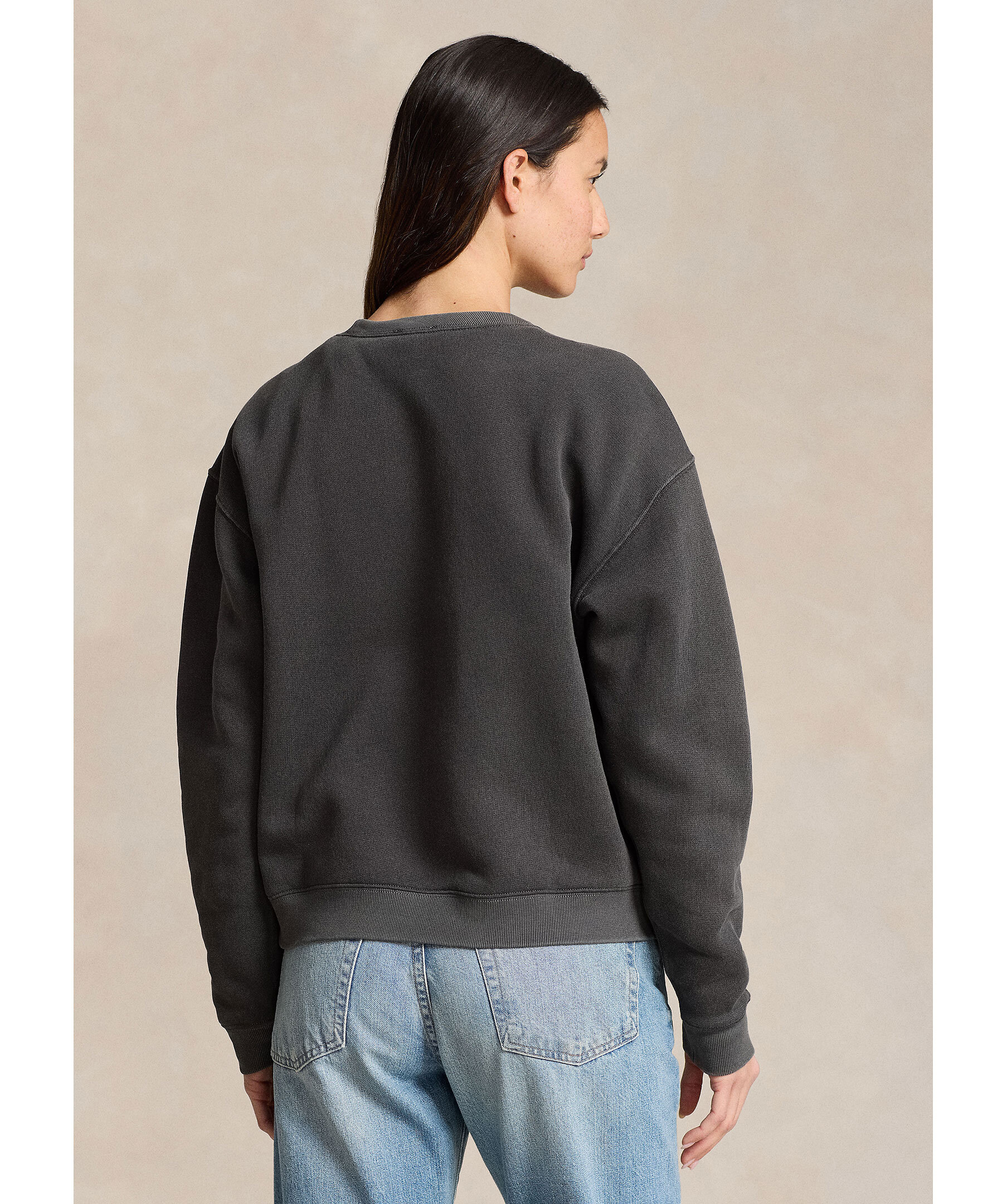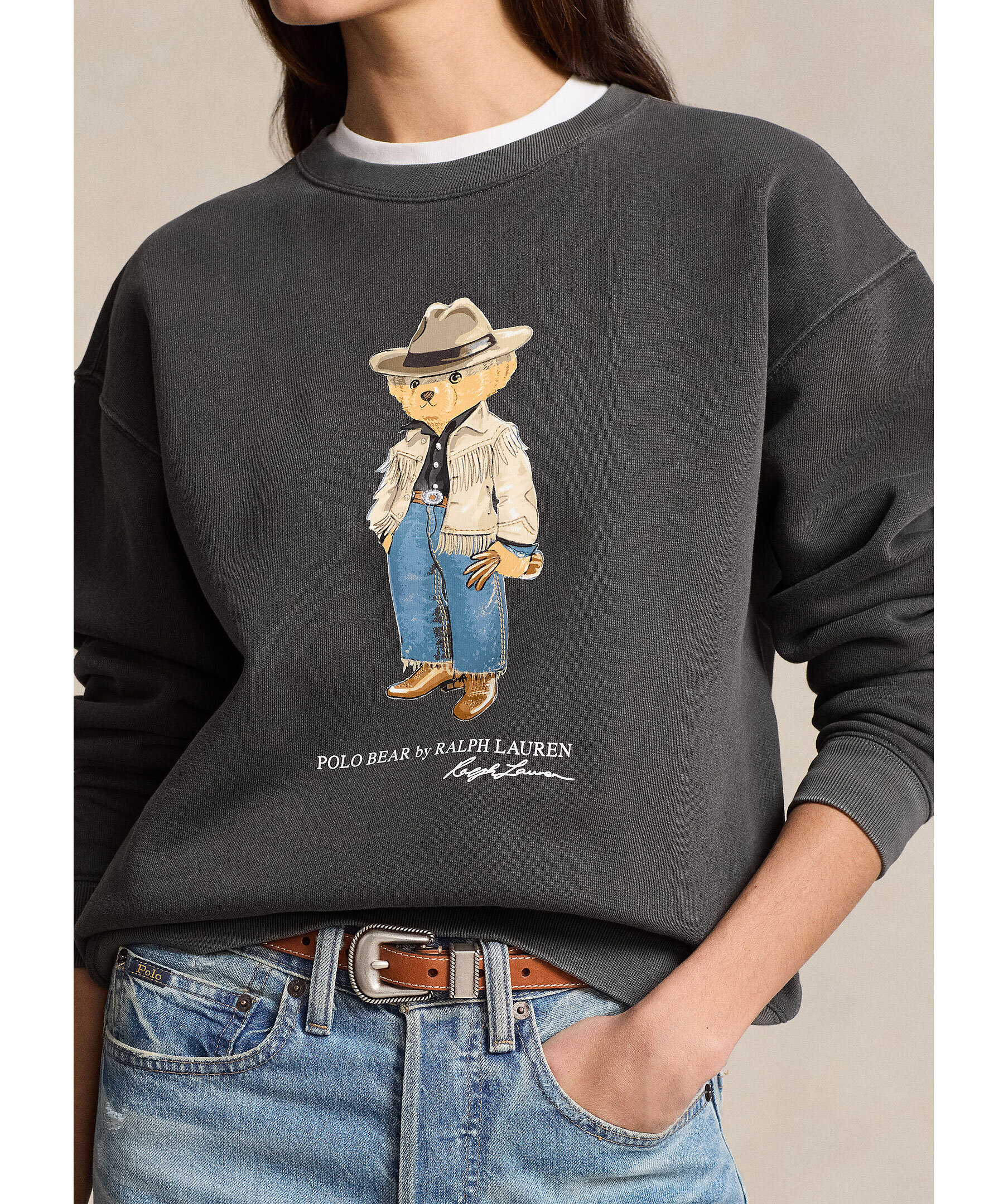 Mörkgrå sweatshirt från Polo Ralph Lauren. Tröjan har rund och ribbstickad halsringning, ribbstickade muddar vid ärm- och plaggslut samt polo Bear-motiv med logotyp på framsidan. Tillverkad i en bomullsblandning.