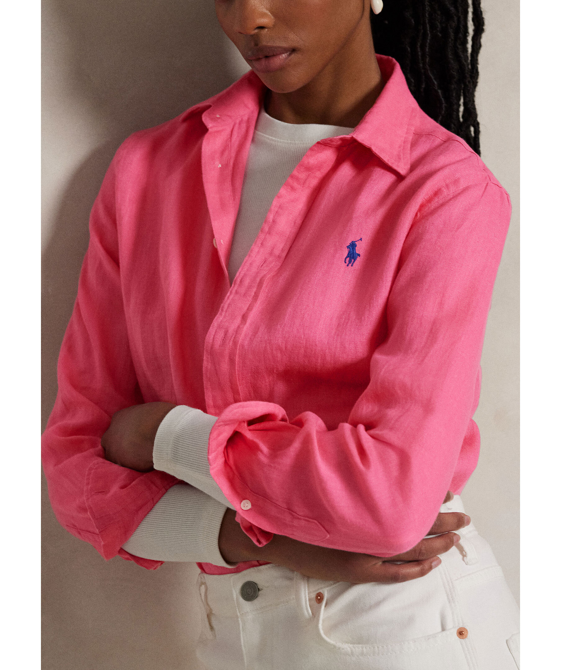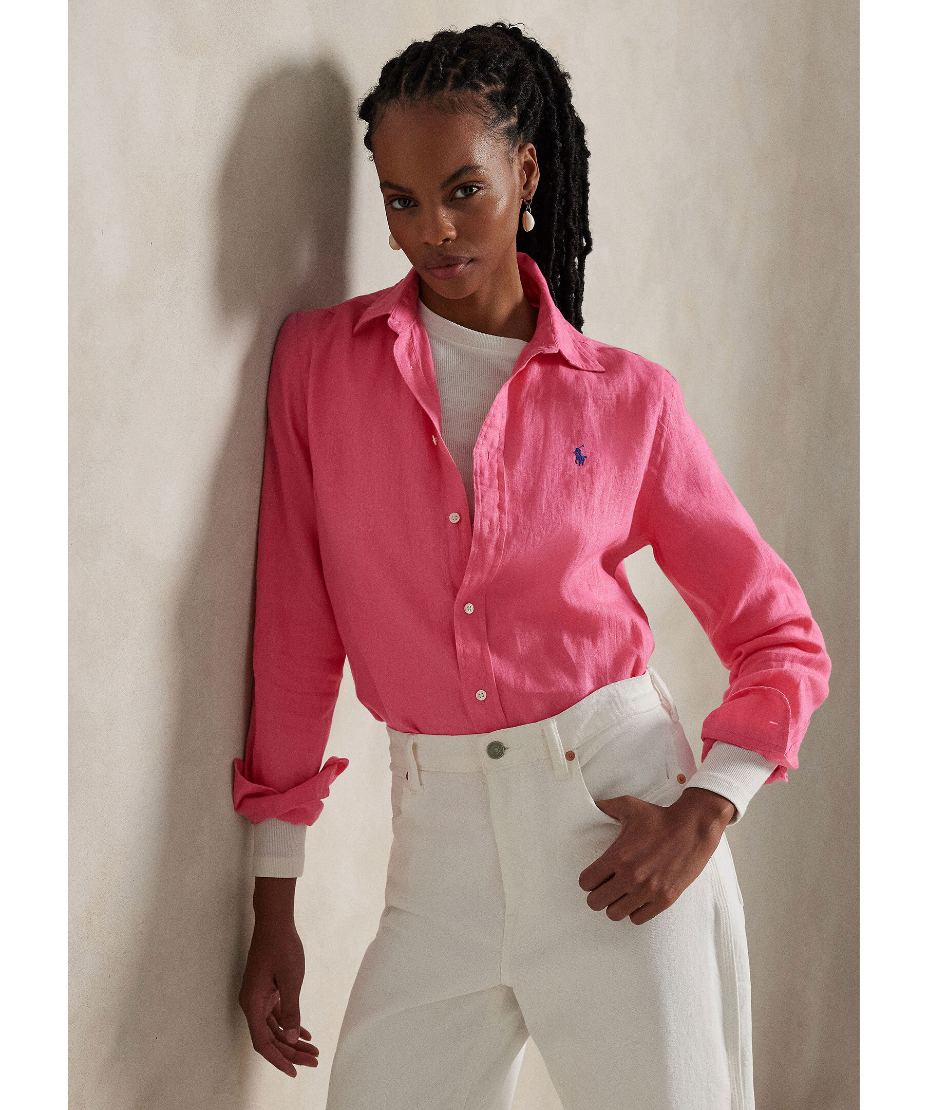 Rosa skjorta från Polo Ralph Lauren. Skjortan har button-down krage och broderad logotyp på bröstet. Tillverkad i 100% linne.