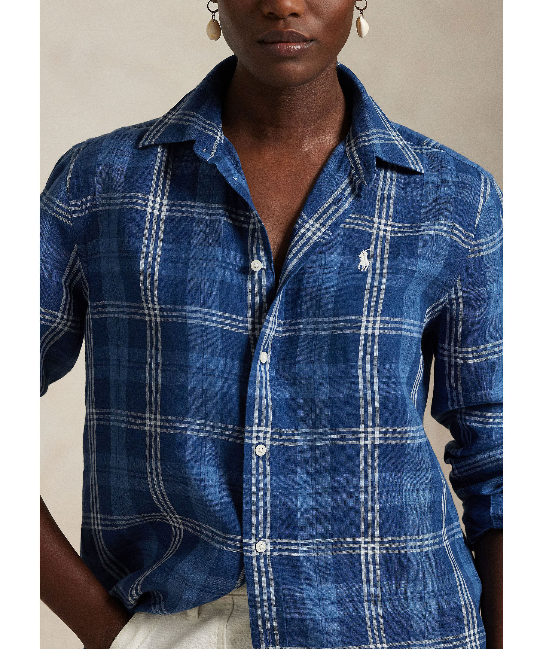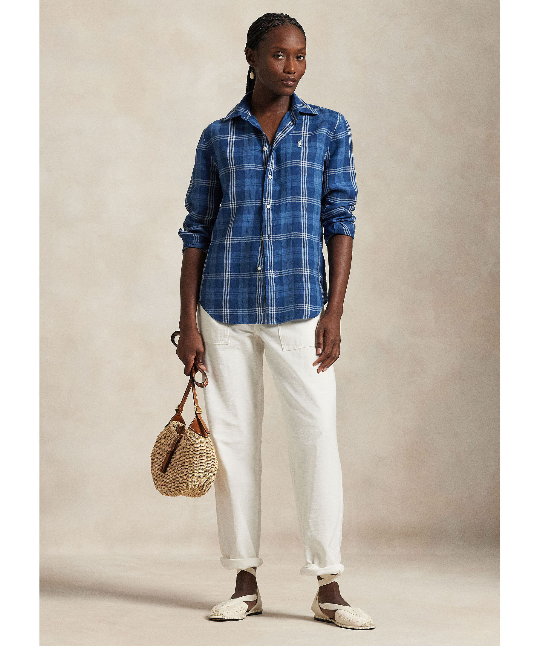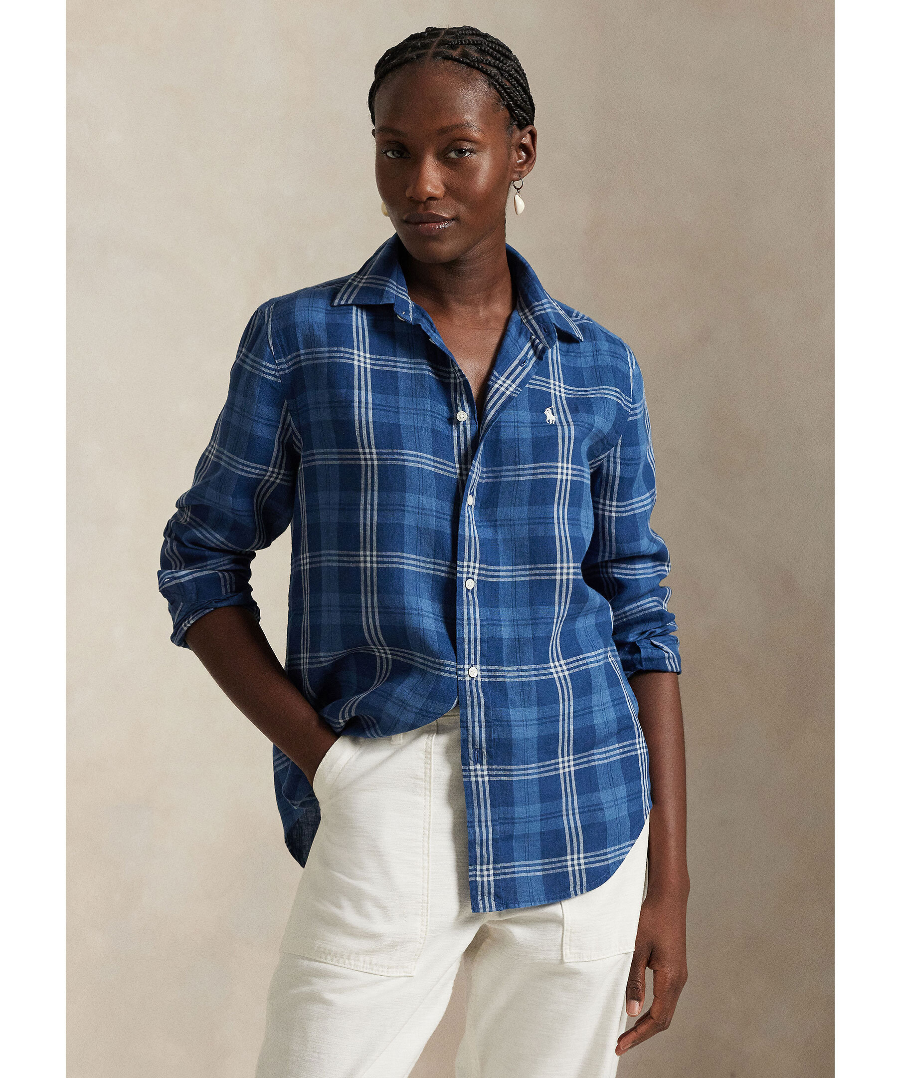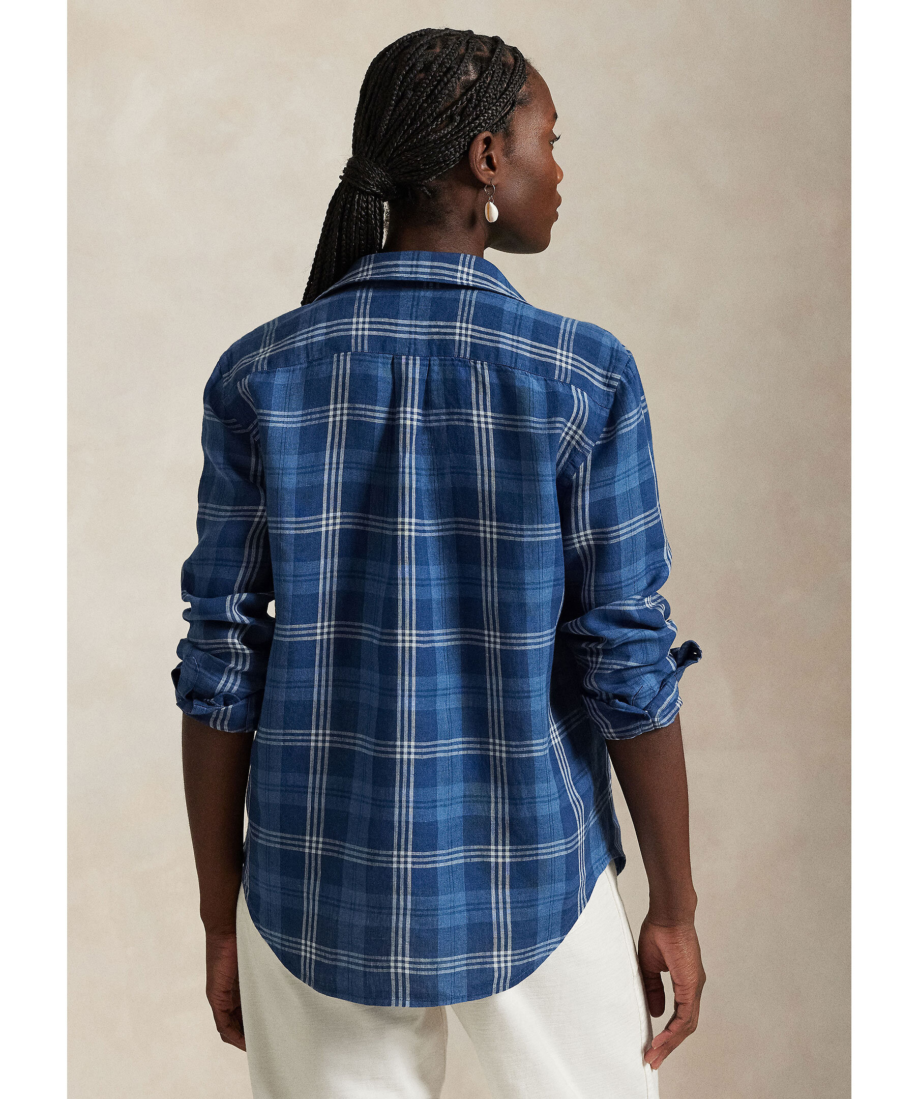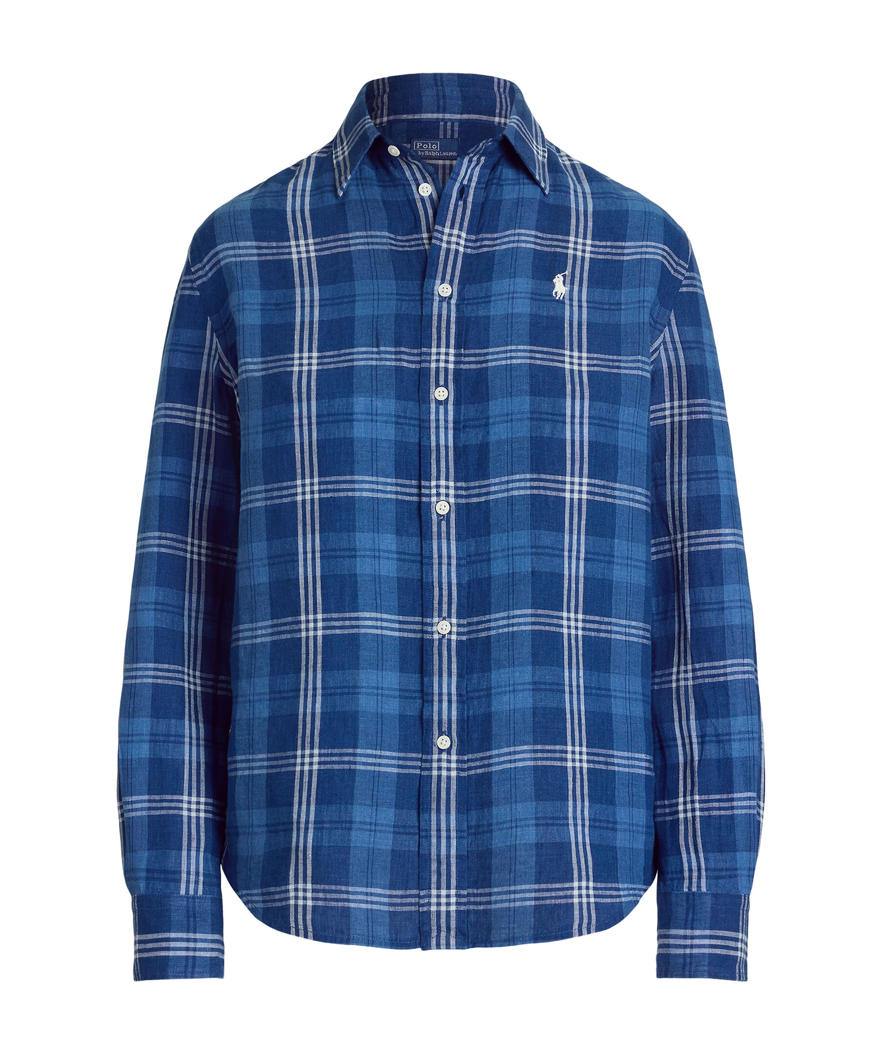 Blå, rutig linneskjorta från Polo Ralph Lauren. Skjortan stängs med knappar framtill och har deras broderade signaturpony på bröstet. Tillverkad i 100% linne.