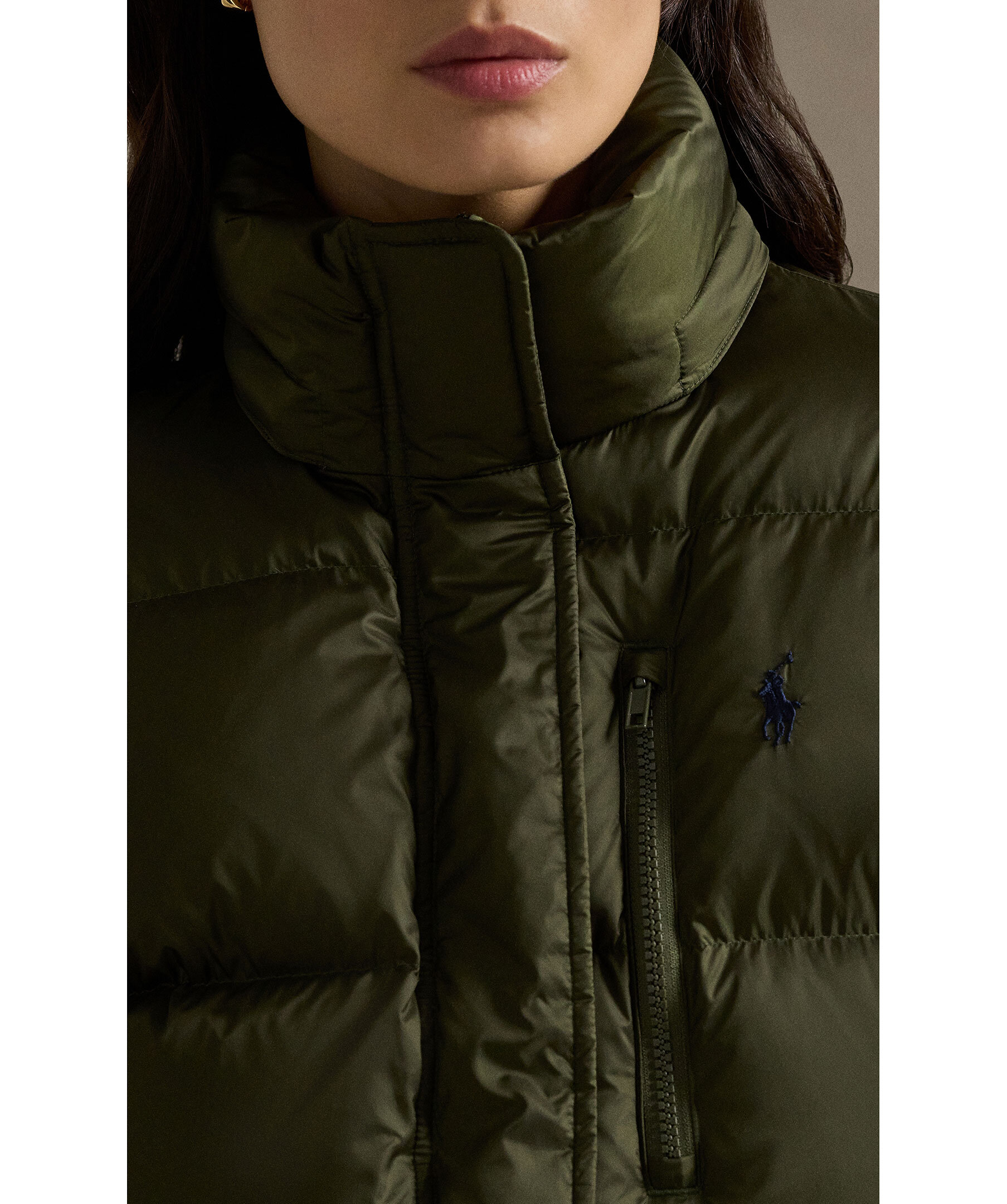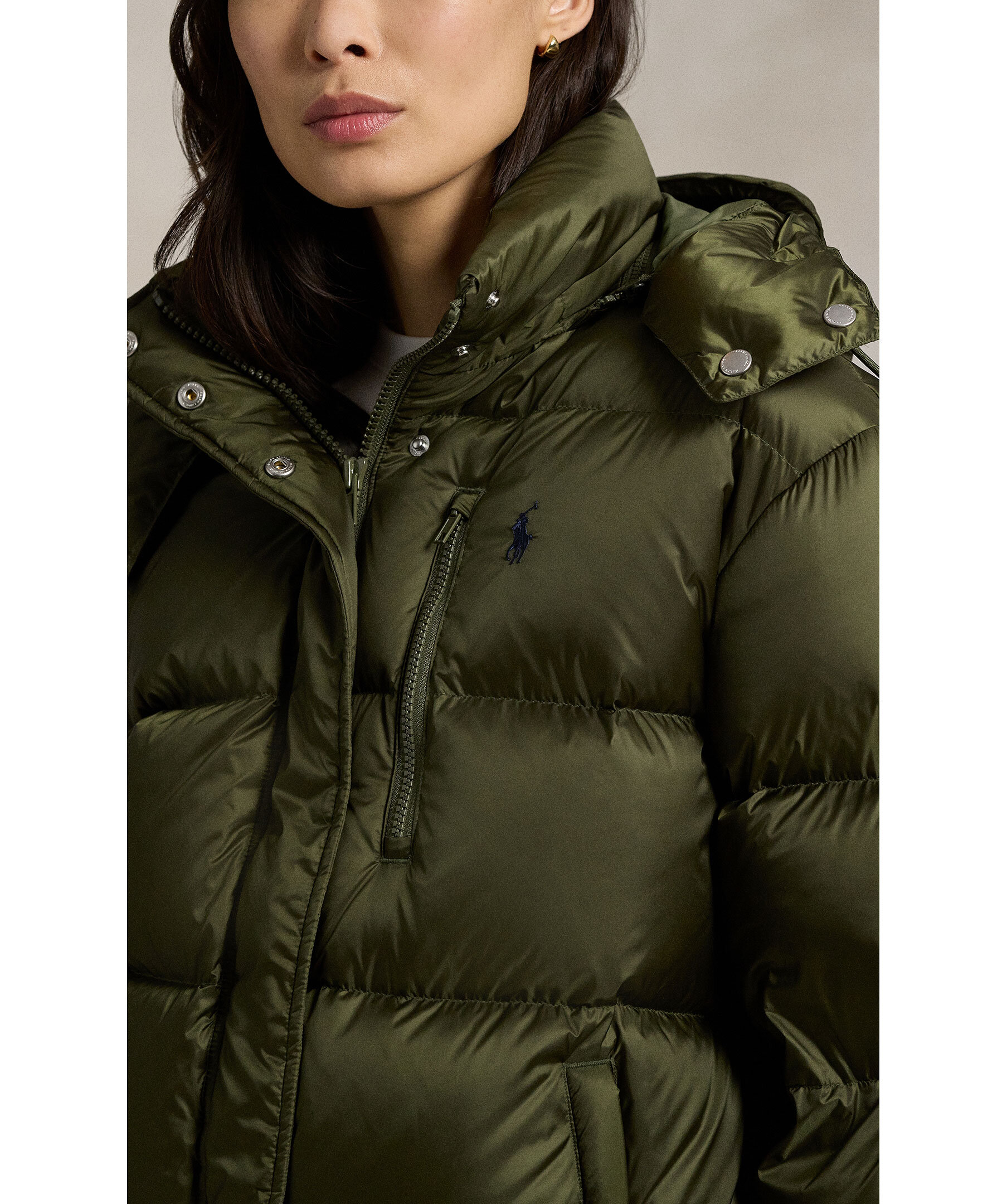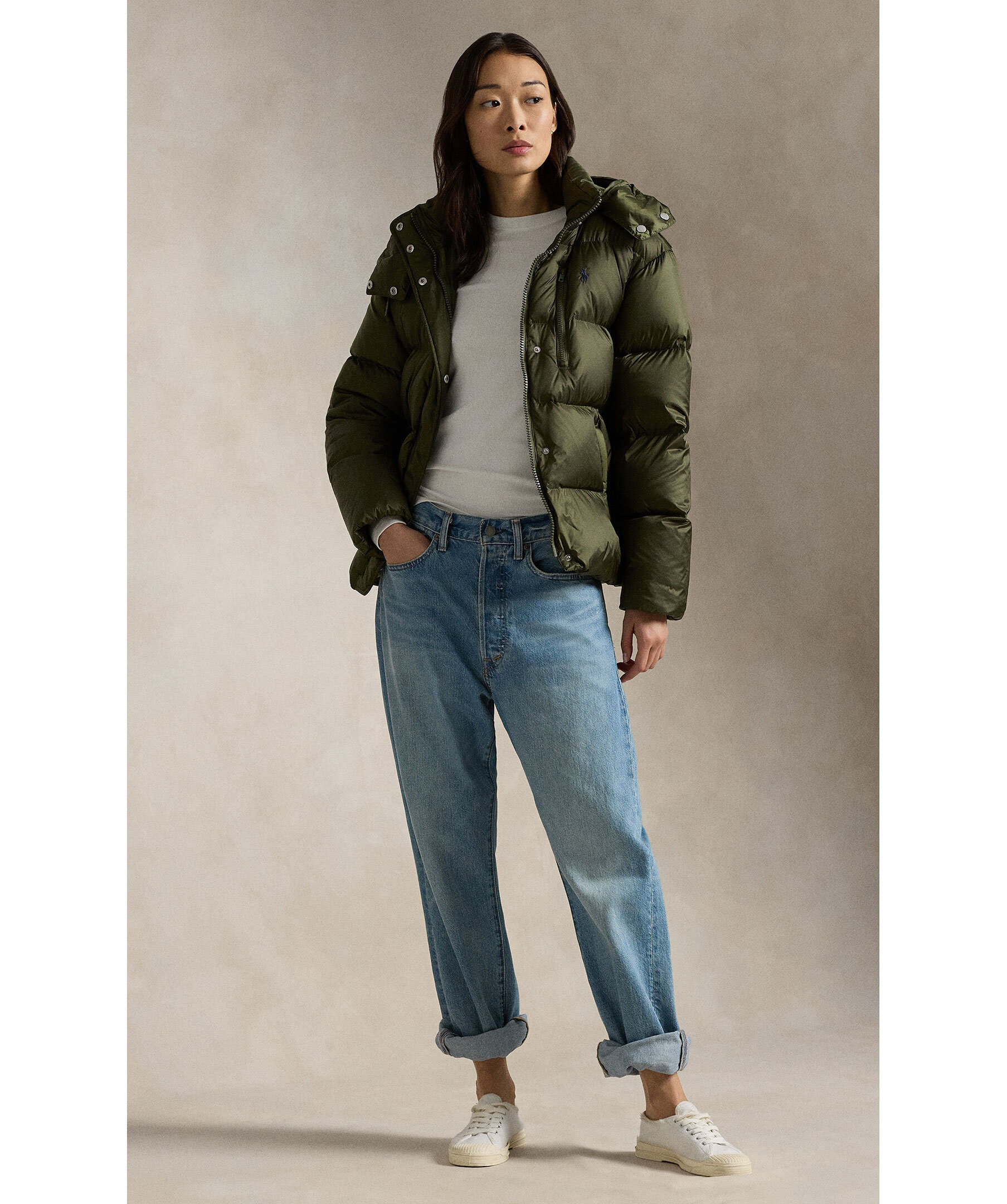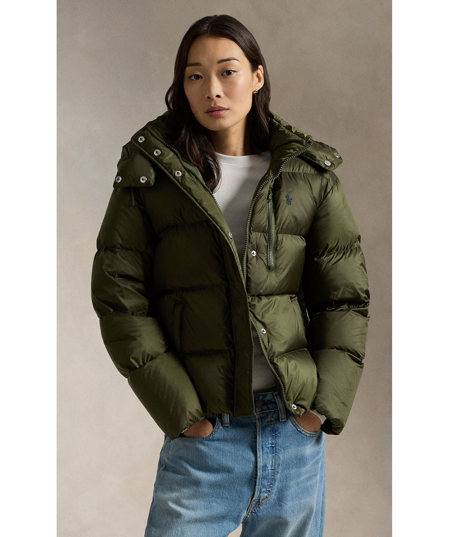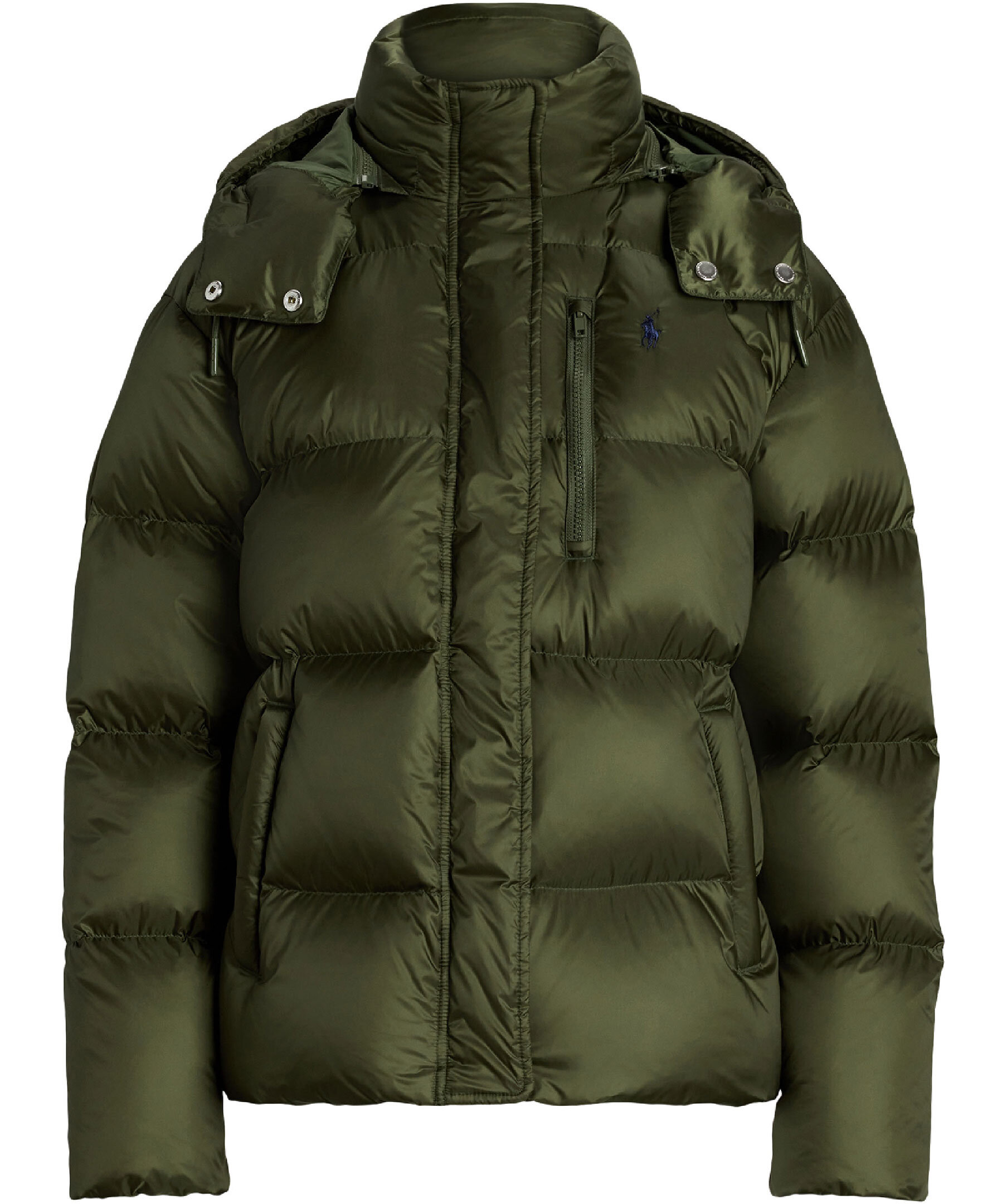 Grön pufferjacka med dunfyllning från Polo Ralph Lauren. Jackan har en avslappnad passform och är designad för att sluta vid höften. Luvan är avtagbar med knäppbar vindslå. Dunjackan stängs med en tvåvägsdragkedja och har två framfickor och en bröstficka. Broderad logotyp på bröstet. Gjord i ett vattenavvisande yttertyg. Produkten är certifierad enligt Responsible Down Standard (RDS) för djurvälfärd.