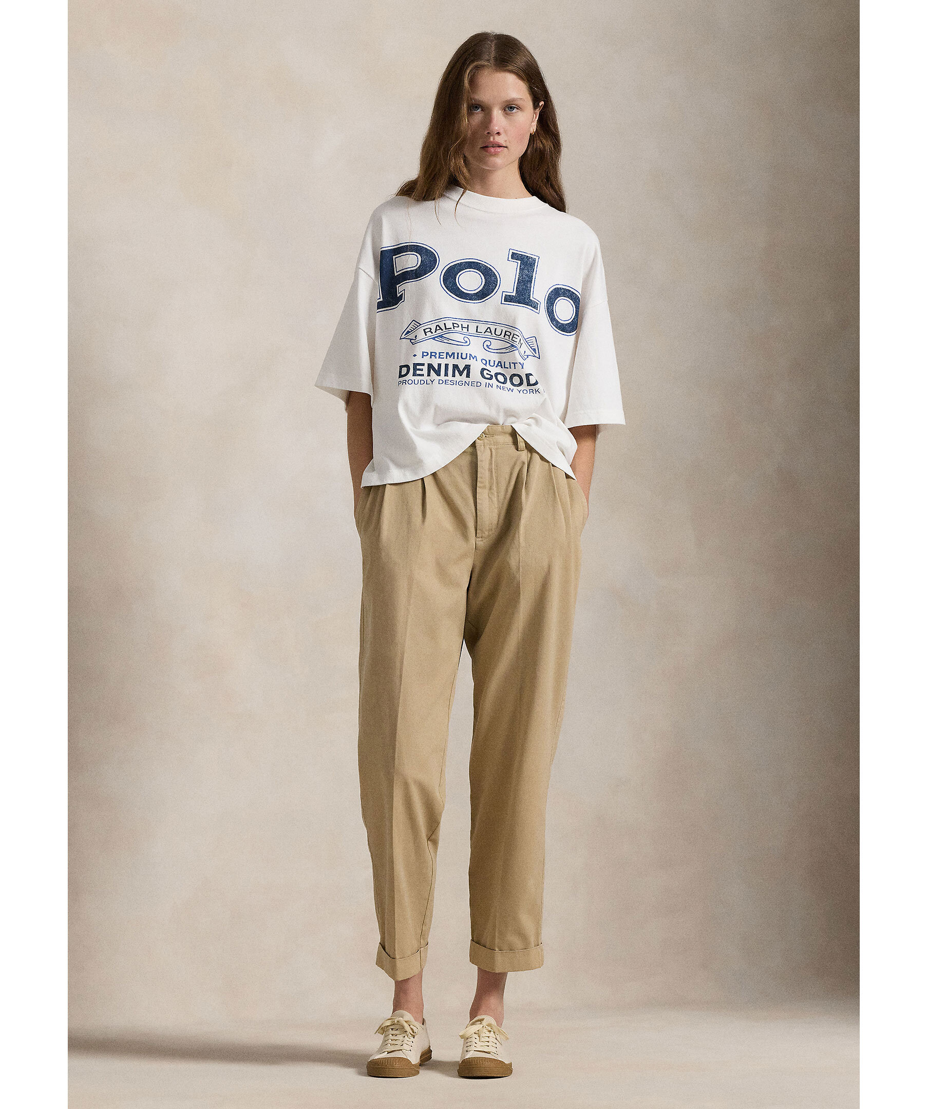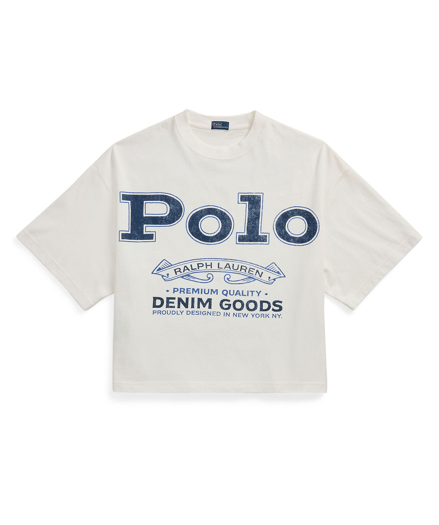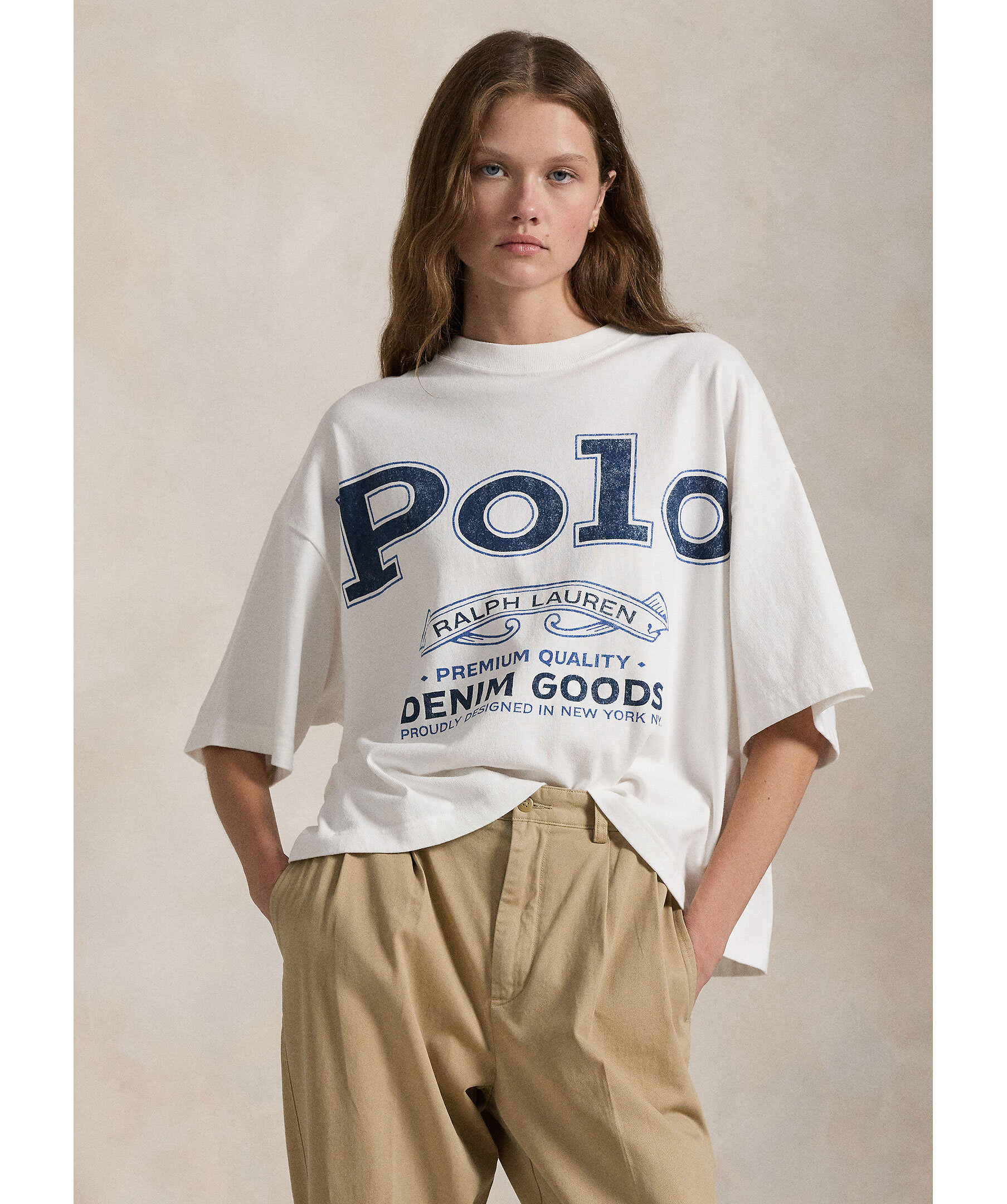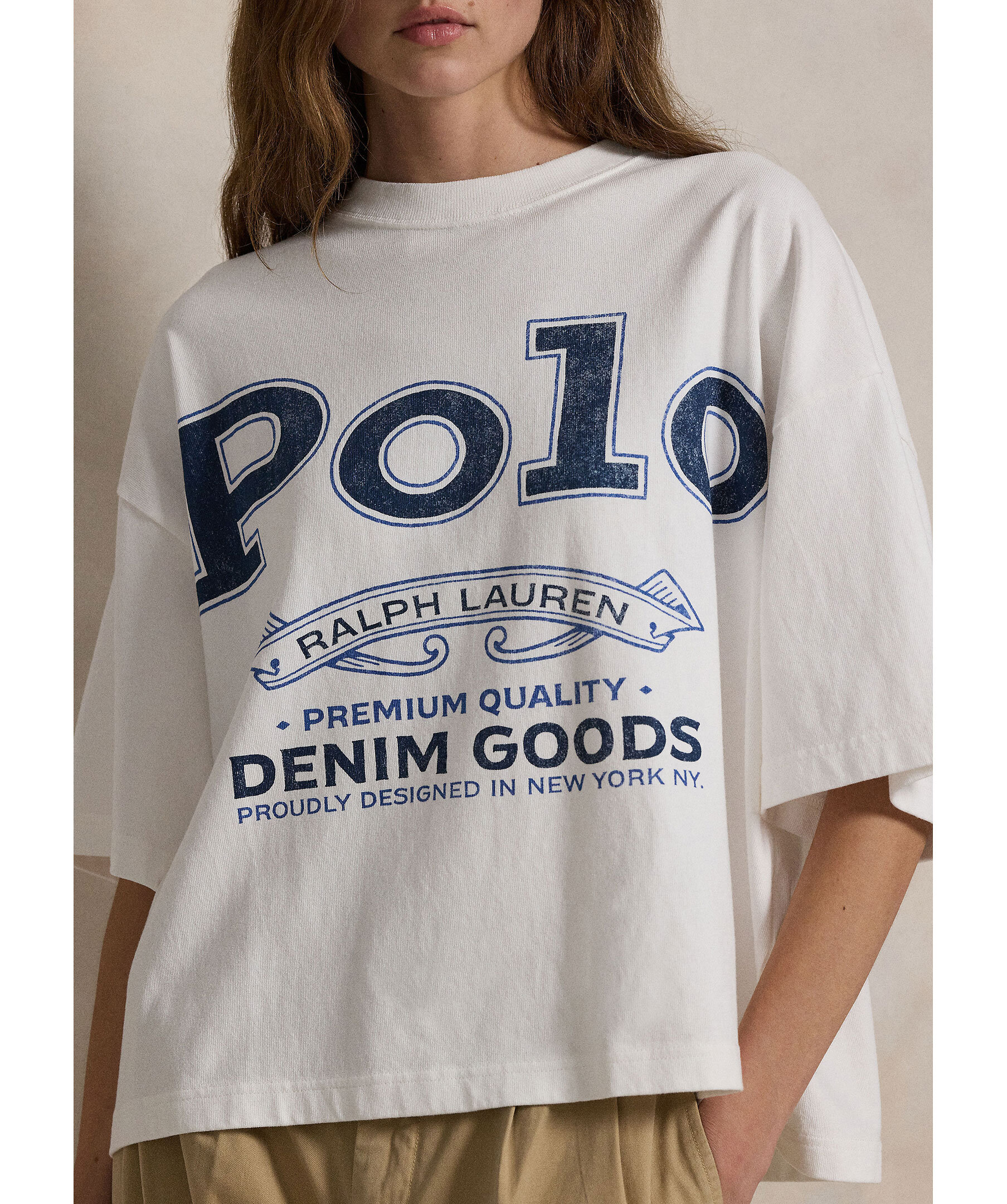 Vit oversized T-shirt från Polo Ralph Lauren. T-shirten har rundan halsringning, stort tryck på framsidan och avslappnade axlar. Tillverkad av bomull.