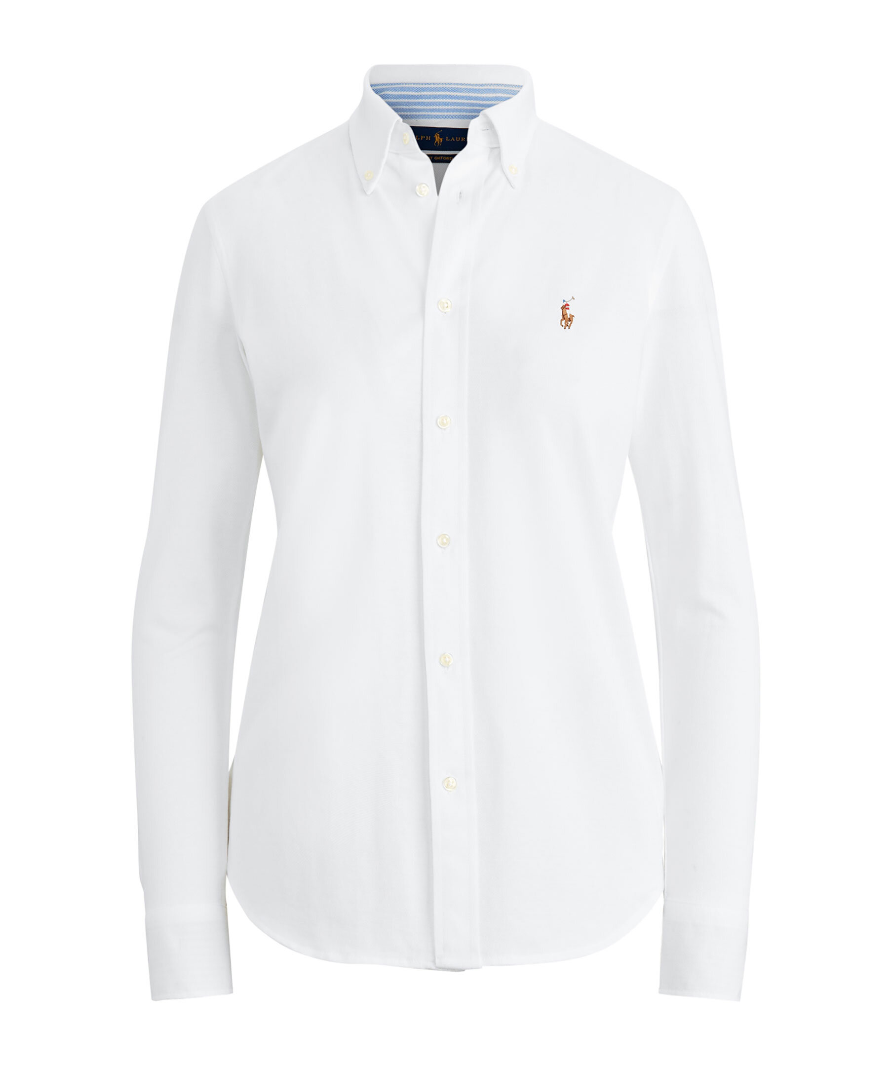 Vit långärmad skjorta i oxfordväv från Polo Ralph Lauren. Skjortan har en button down-krage, broderad logotyp på bröstet och är sydd i en slim fit modell. Modellen är 178 cm lång och har på sig storlek S.