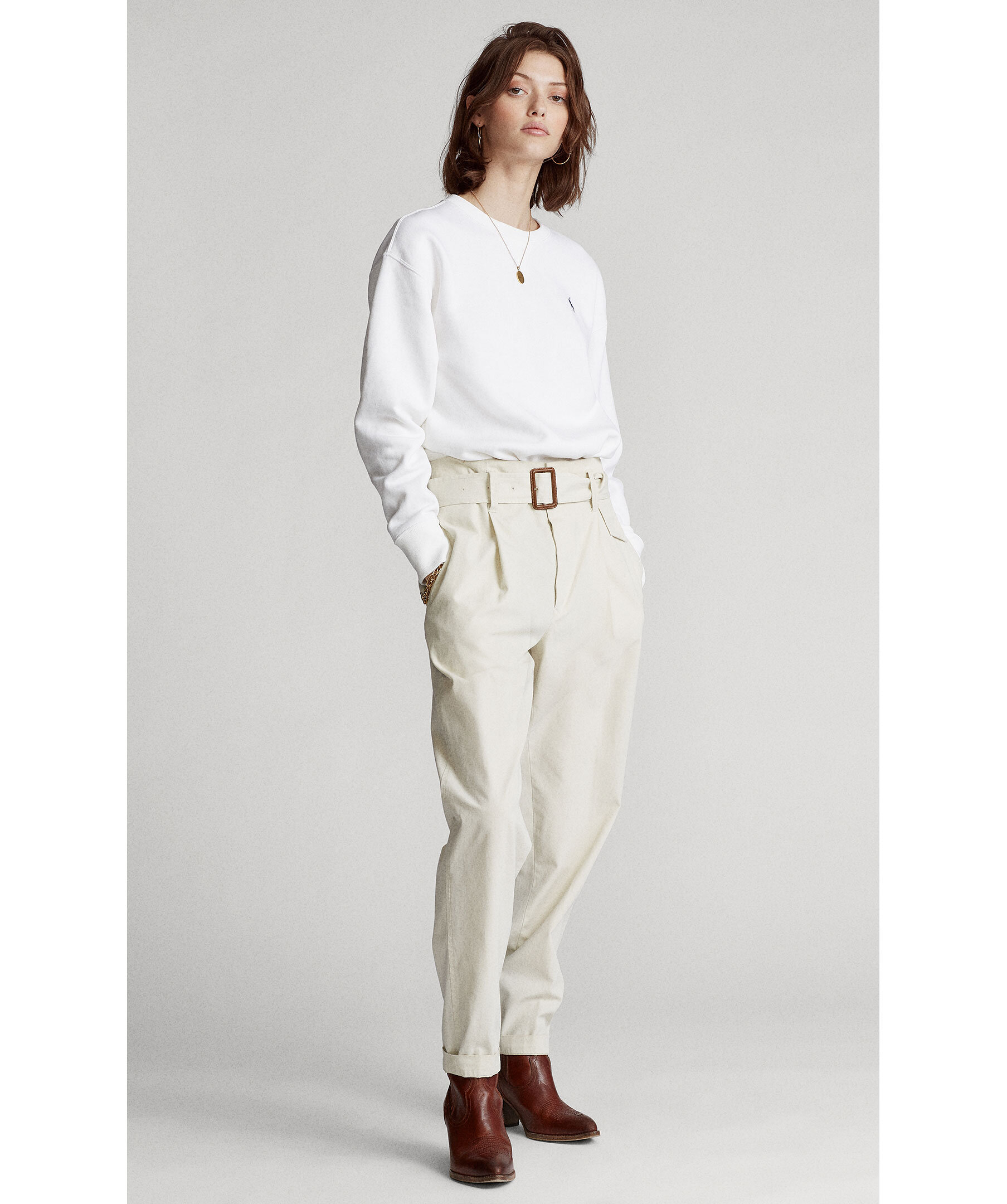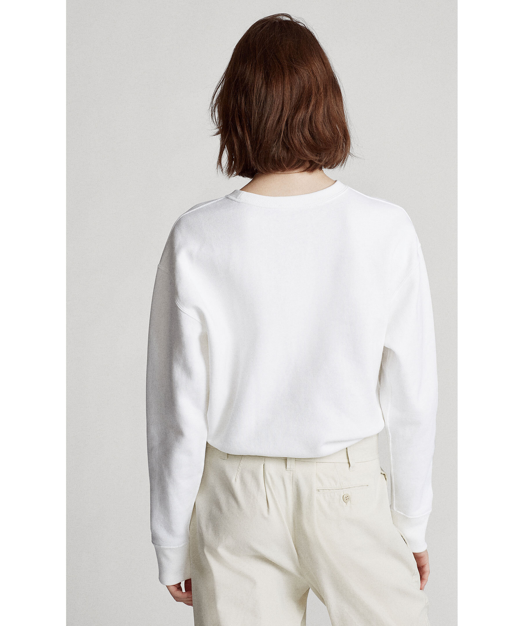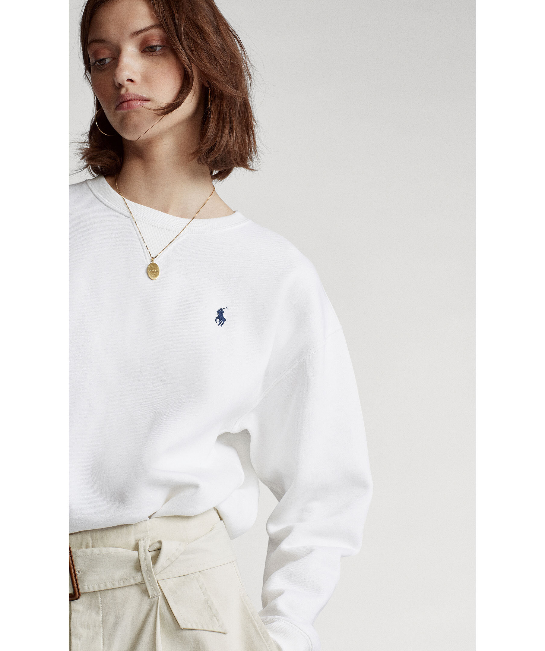 Vit sweatshirt från Polo Ralph Lauren. Tillverkad i en mjuk bomullsmix med en mjuk borstad insida. Rundad halsringning broderad logotyp på bröstet. Ribbade muddar i halsringning, plaggslut och ärmslut.