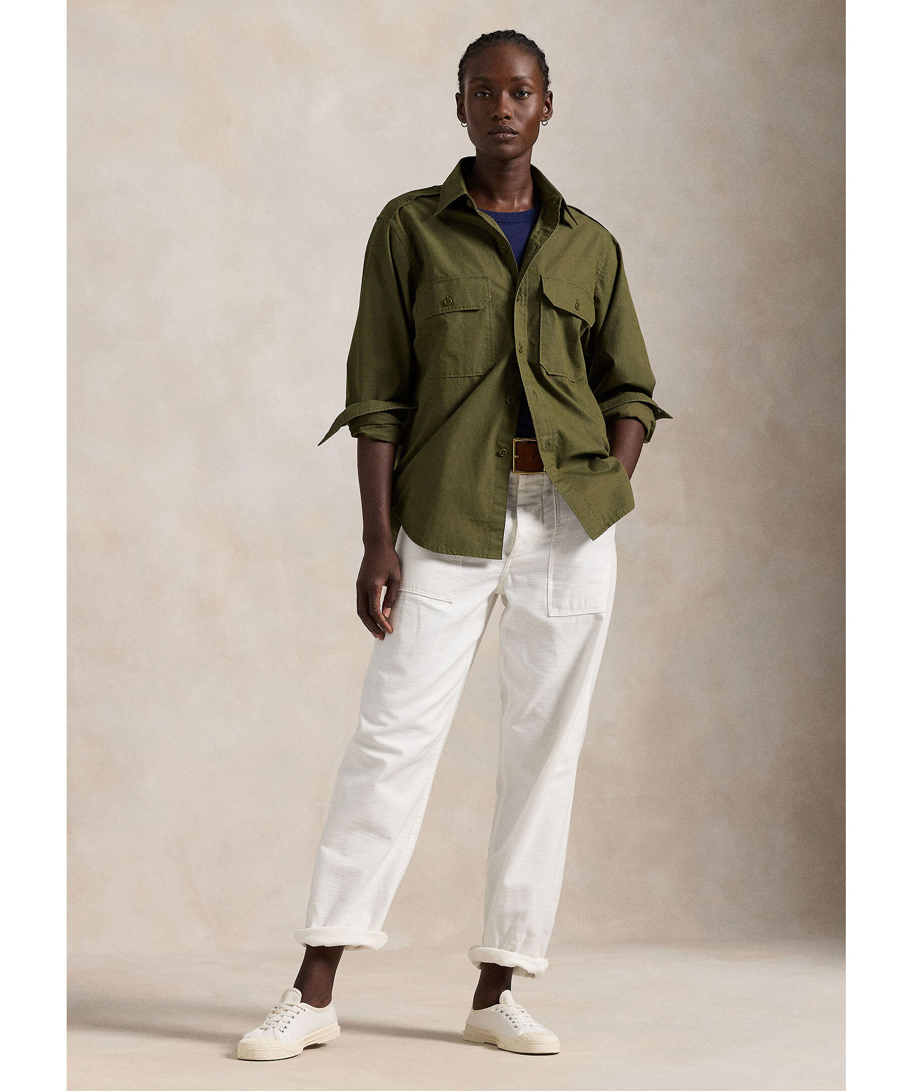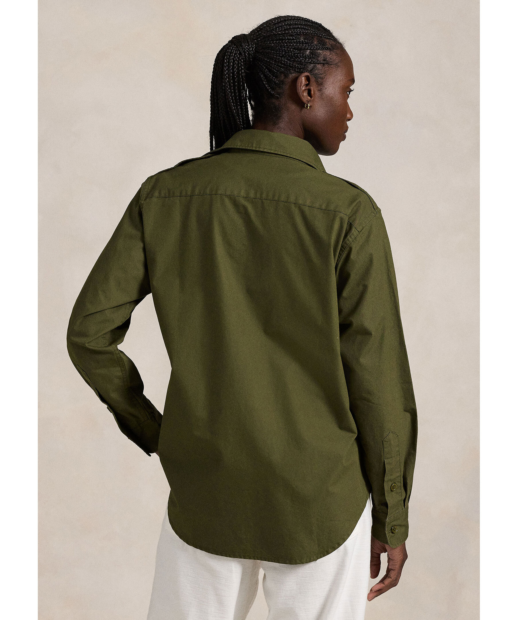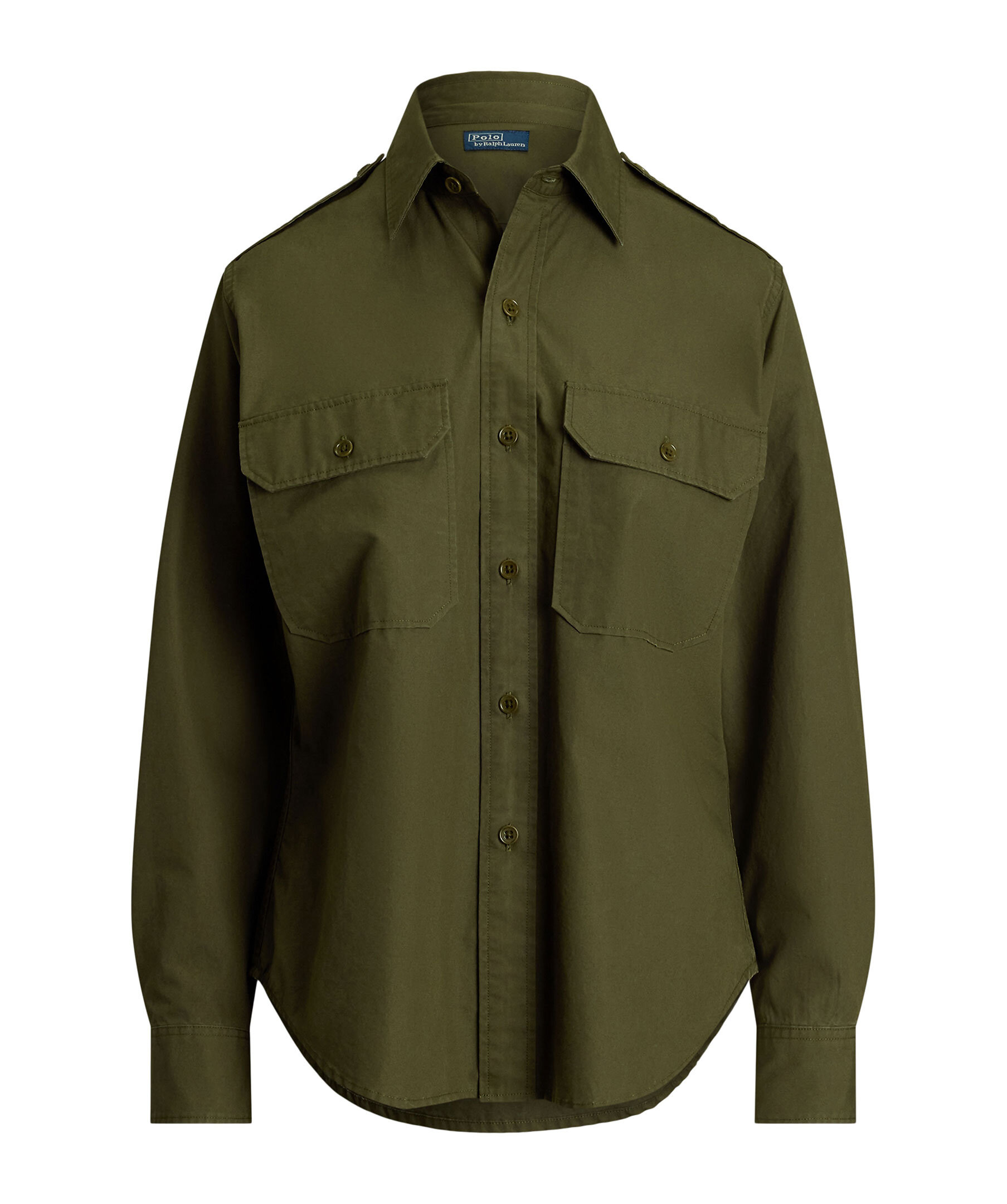 Mörkgrön skjorta från Polo Ralph Lauren. Skjortan stängs med knappar framtill, har två bröstfickor med lock som stängs med knapp. Rundat avslut, tillverkad av 100% bomull.