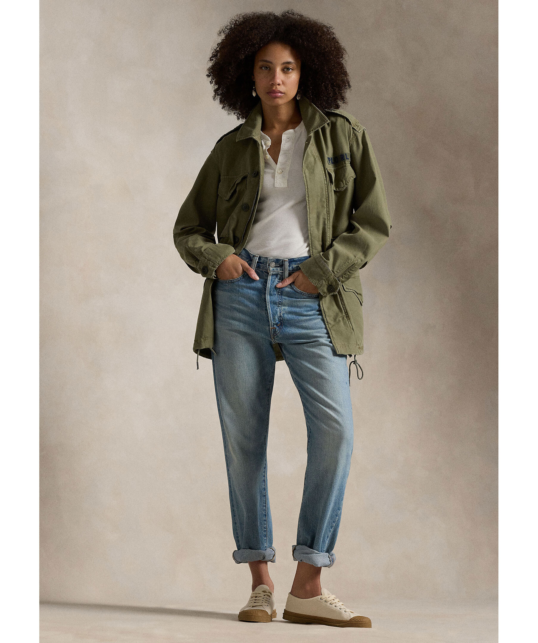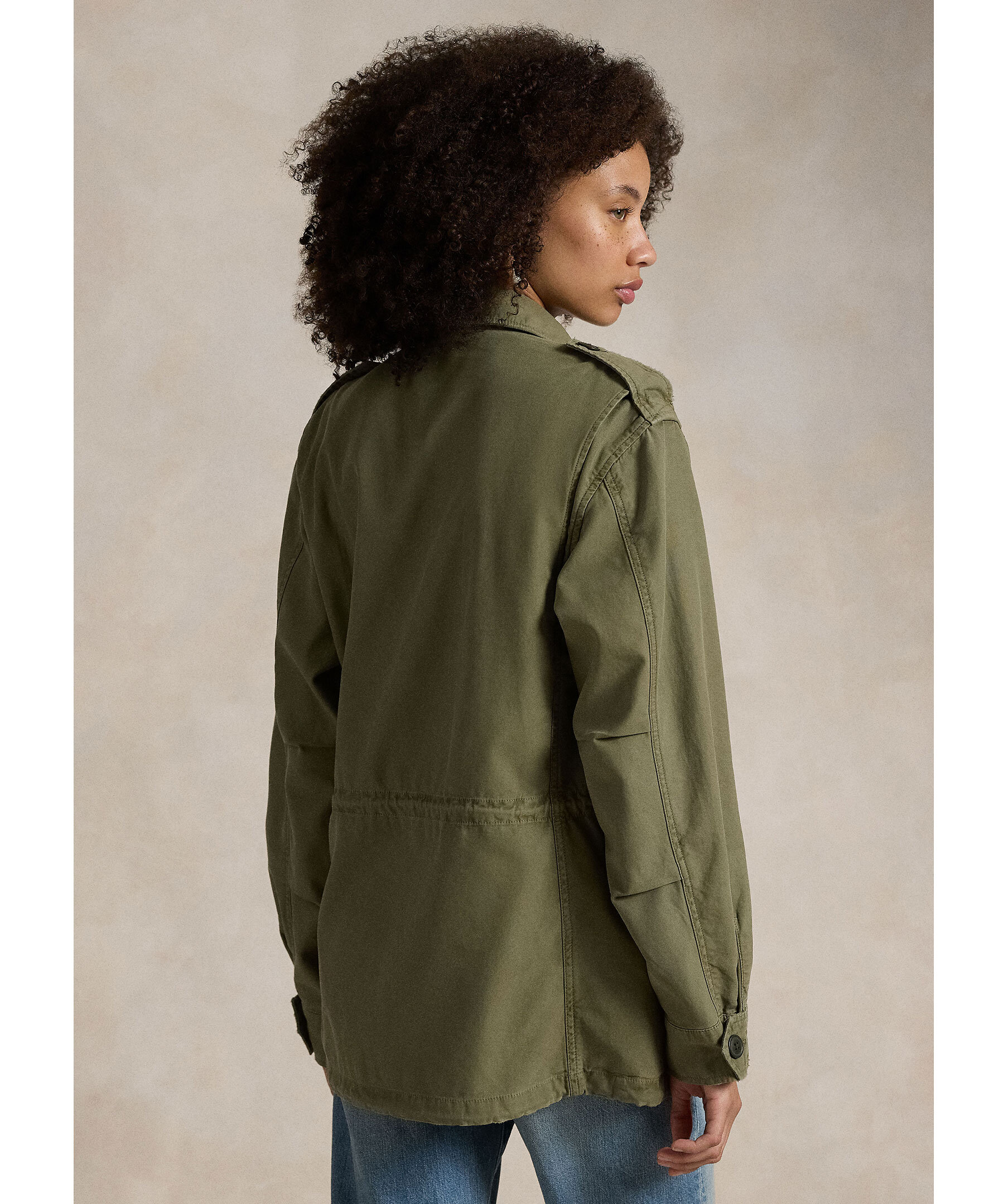 Olivgrön, militärinspirerad jacka från Polo Ralph Lauren. Jackan stängs med dold dragkedja och dolda knappar och har fyra fickor med lock och knapp. Logotyp på bröstet. Tillverkad i bomull.