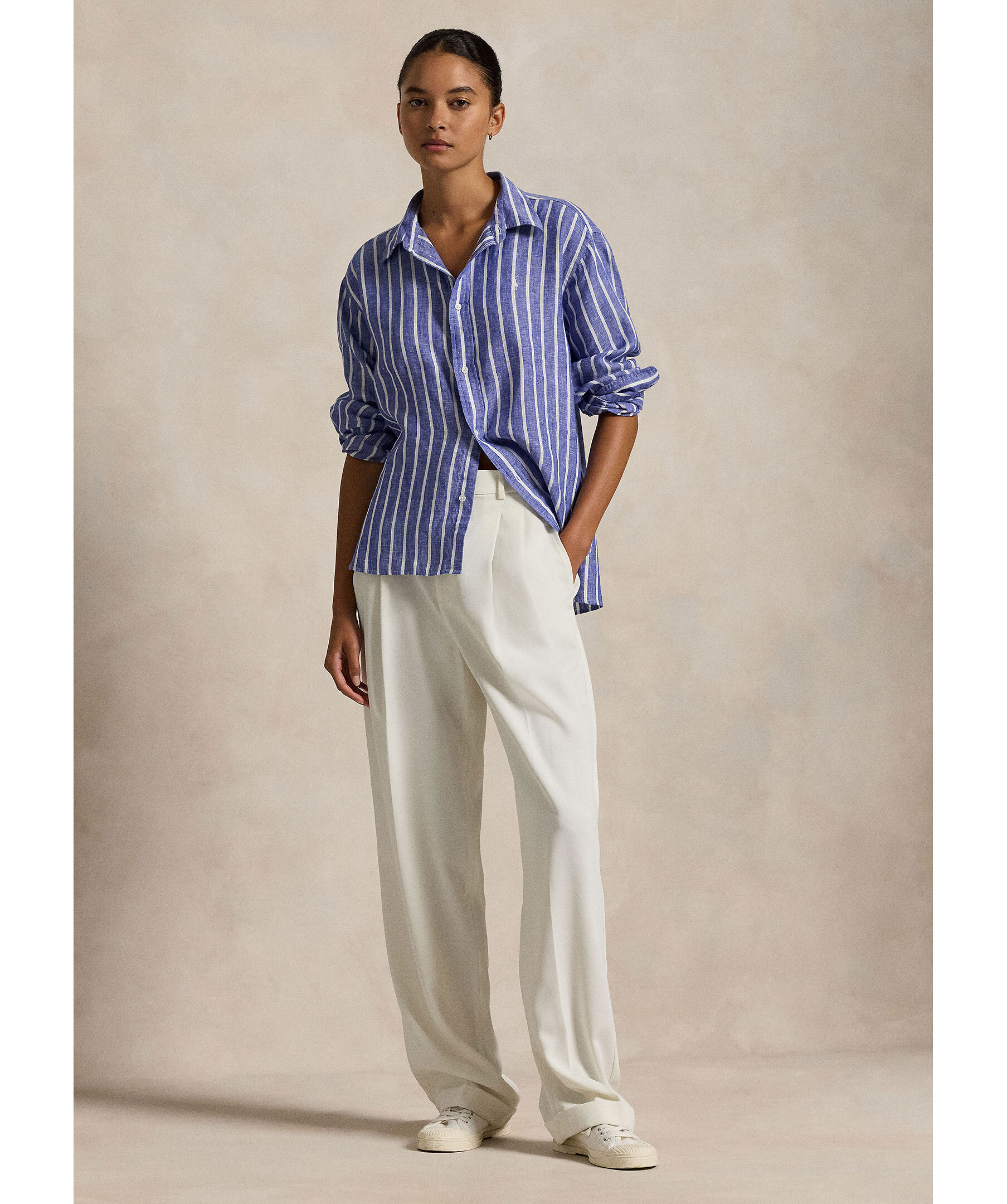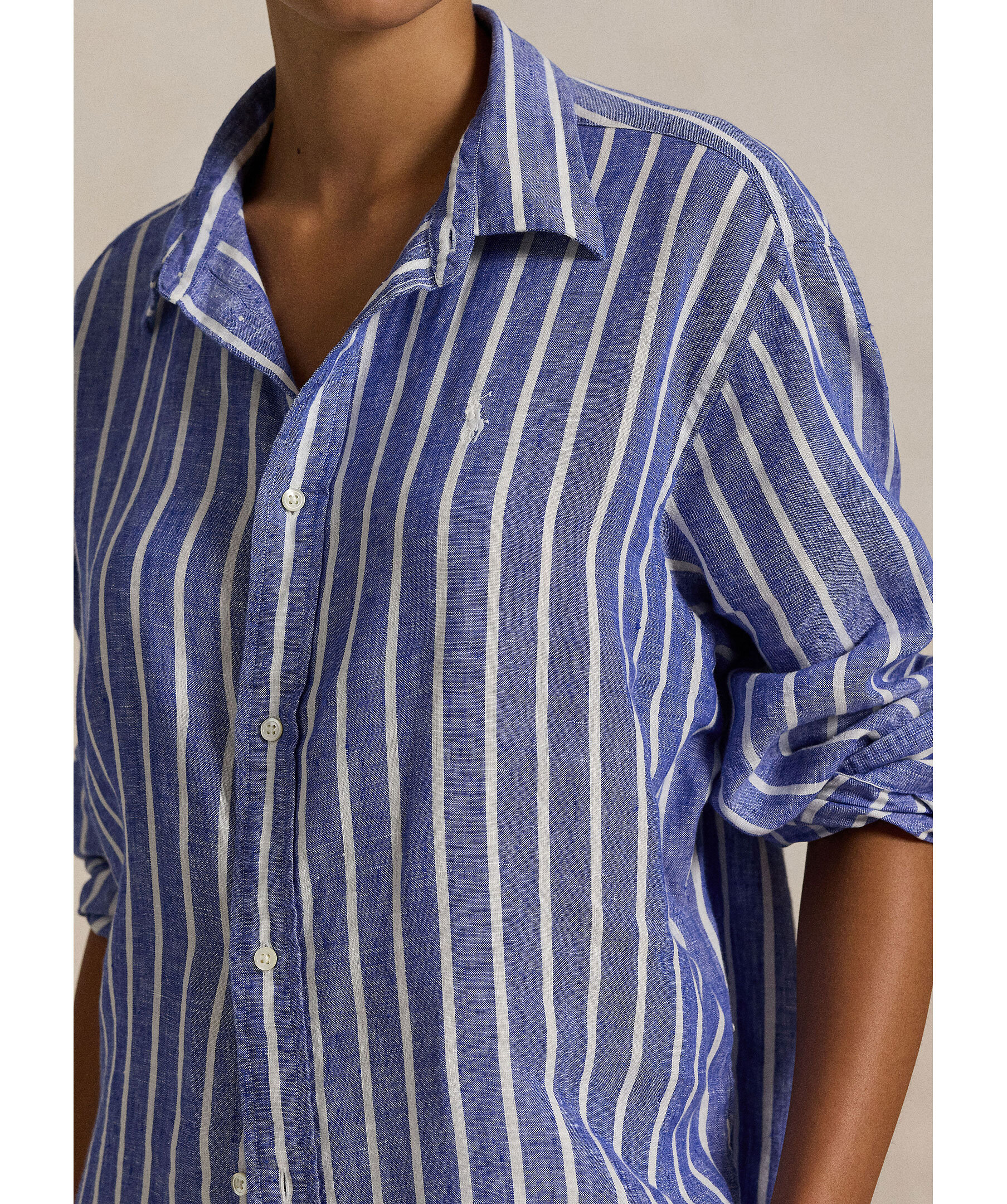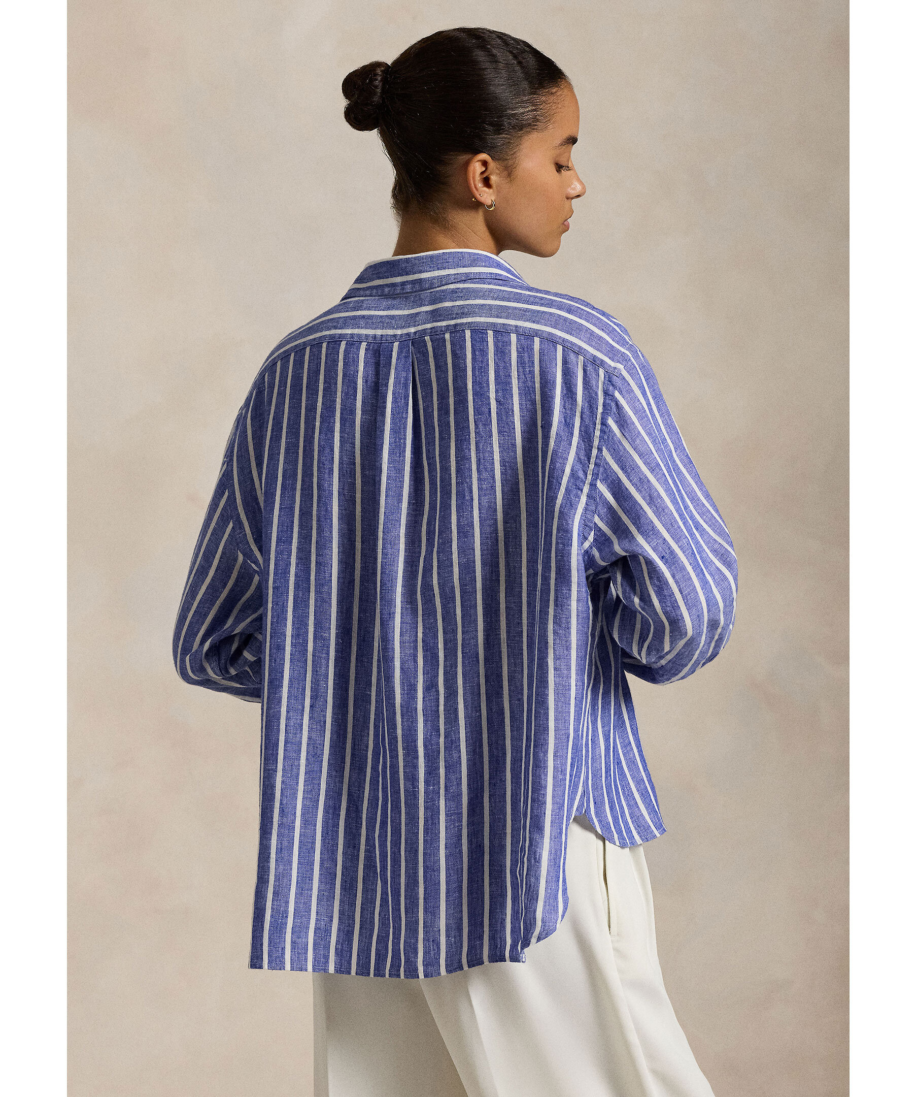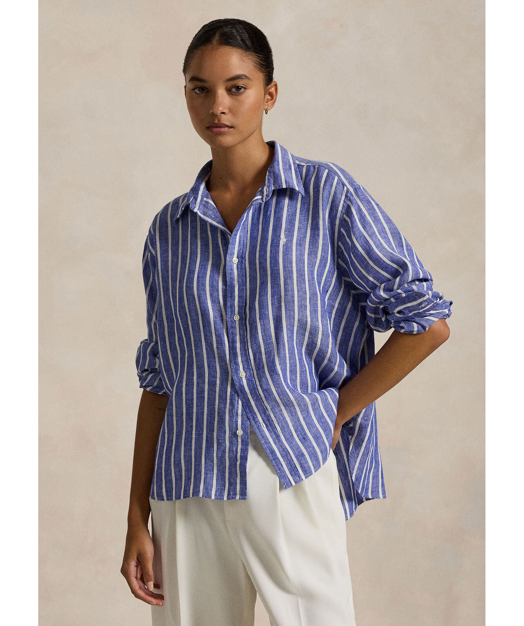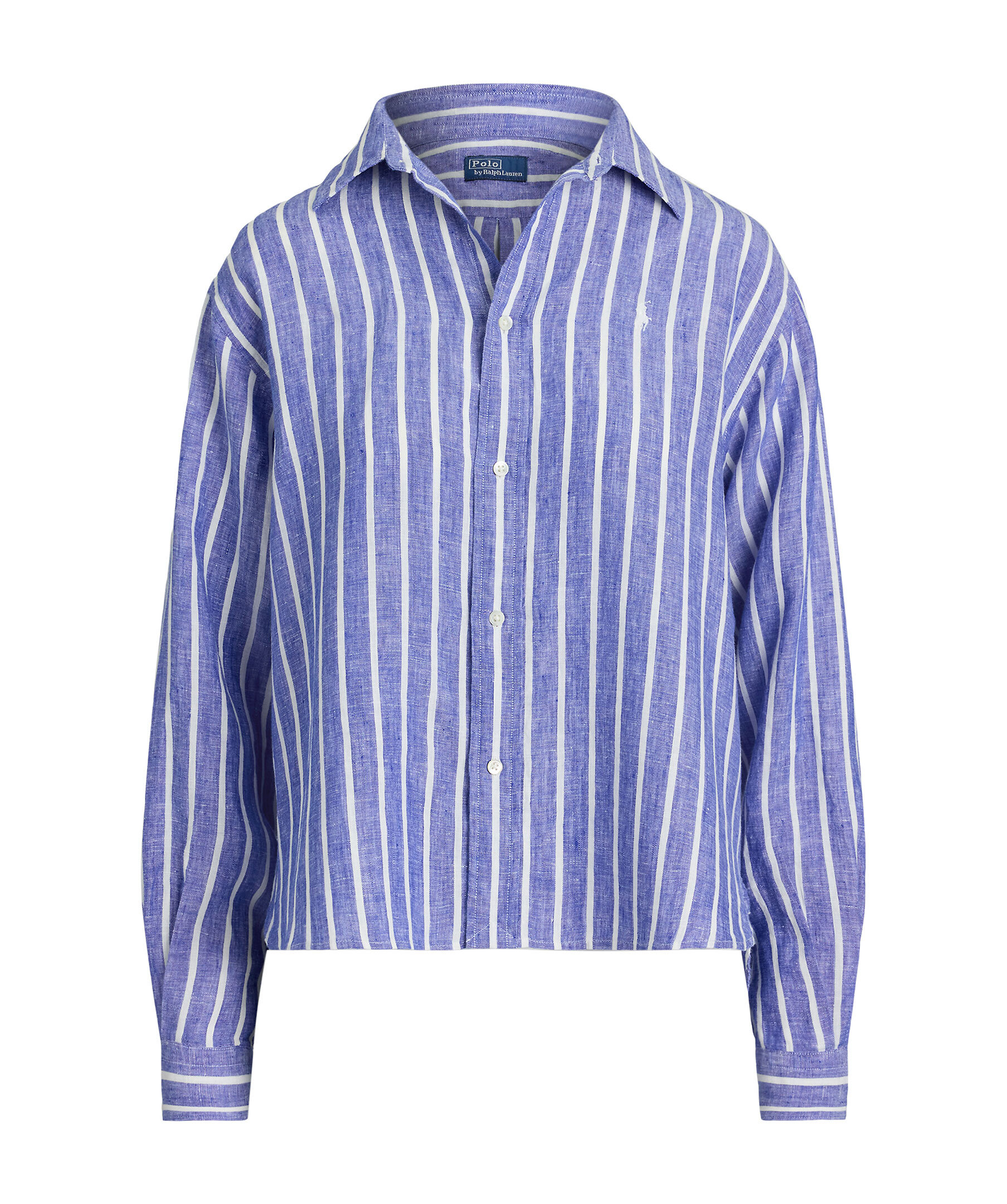Blå och vitrandig linneskjorta från Polo Ralph Lauren. Skjortan har en avslappnad passform, knäpps med knappar framtill och har en liten broderad logotyp på bröstet. Tillverkad av linne.