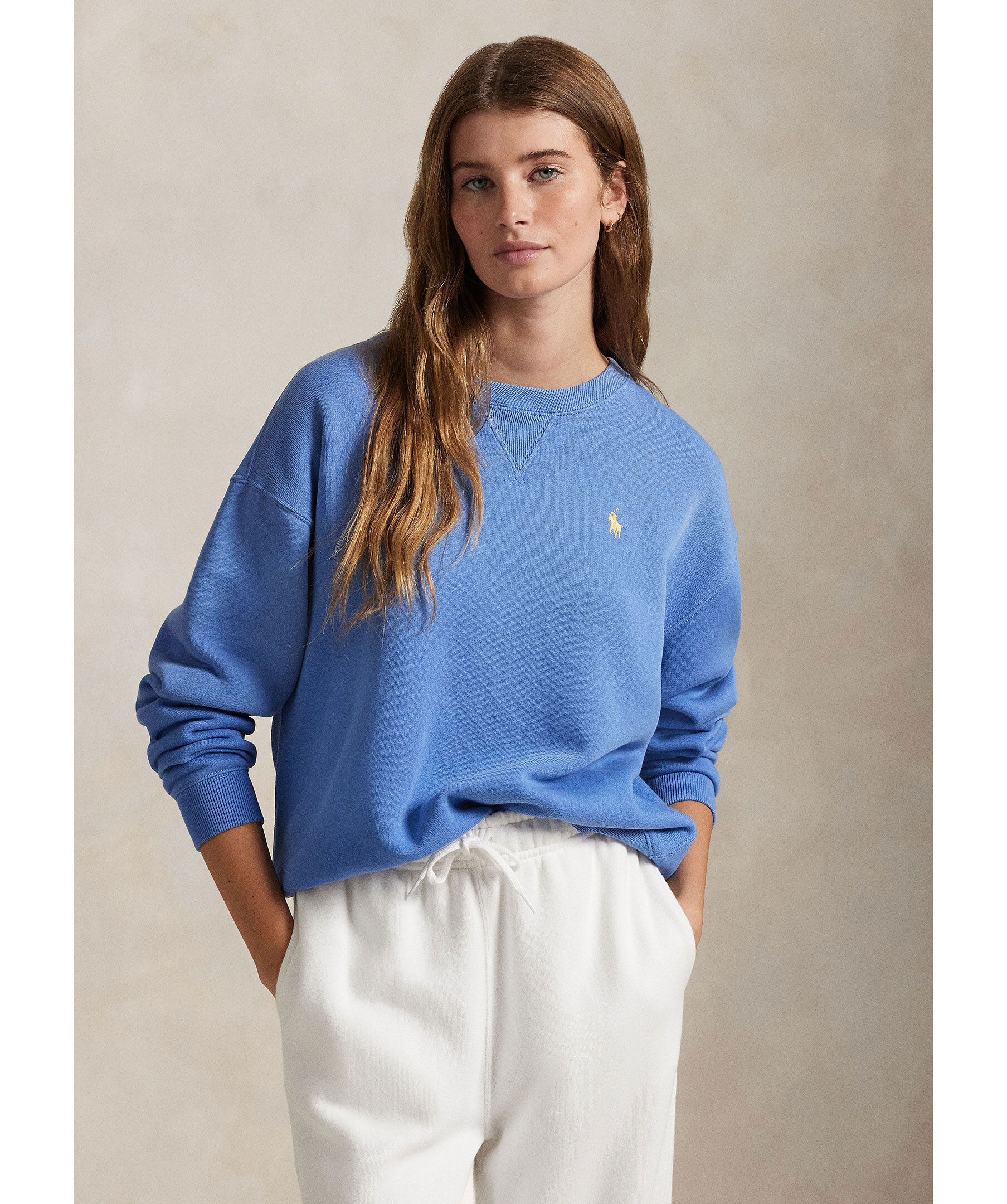 Blå tröja från Polo Ralph Lauren i en avslappnad passform. Rundad halsringning, långa ärmar och ribbstickad mudd vid ärm -och plaggslut. Broderad logotyp på bröstet. Tillverkad i en bomullsblandning.
