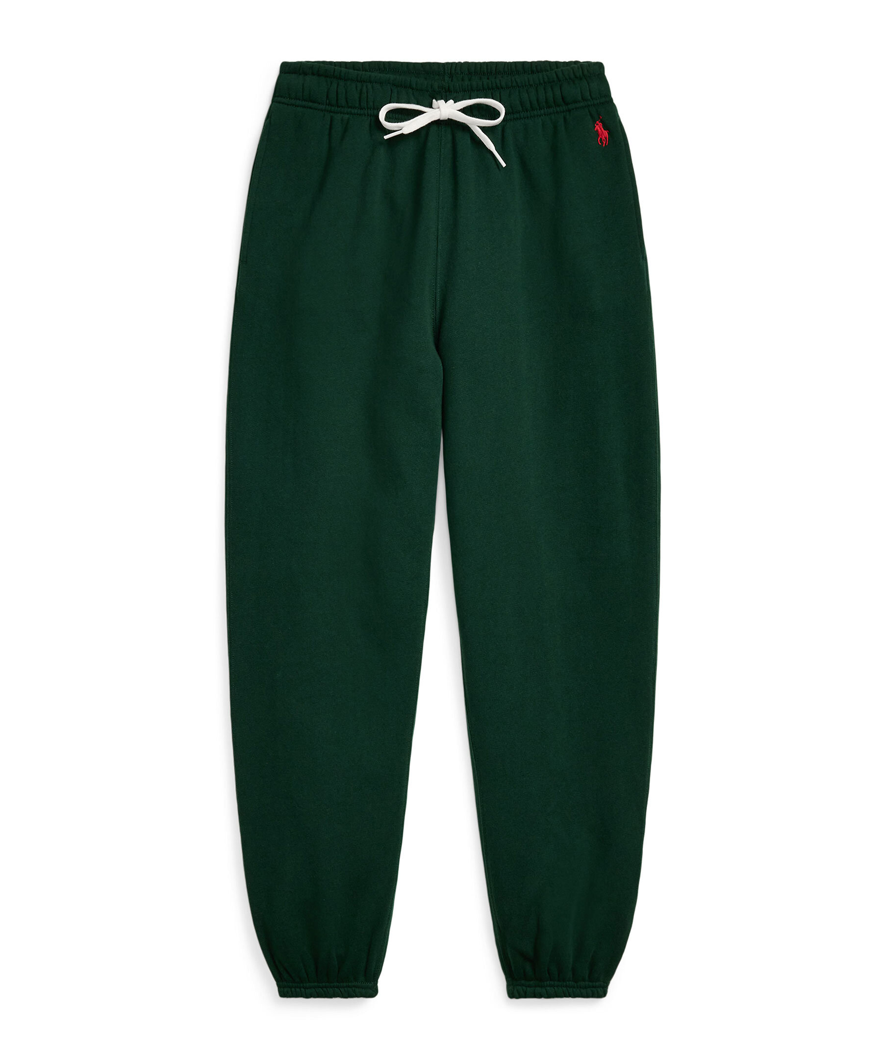 Mörkgröna mjukisbyxor från Polo Ralph Lauren. Byxorna har en elastisk midja med dragsko för justerbar passform och ribbade muddar vid anklarna. Fickor på sidorna och en broderad logotyp pryder ena benet.