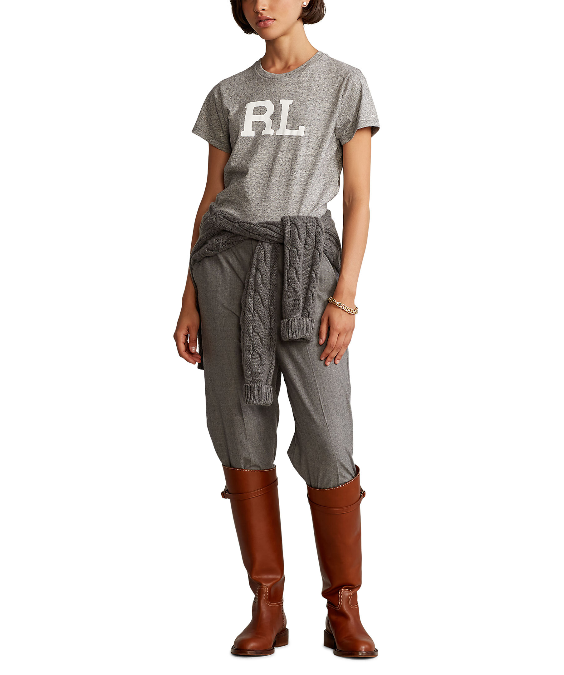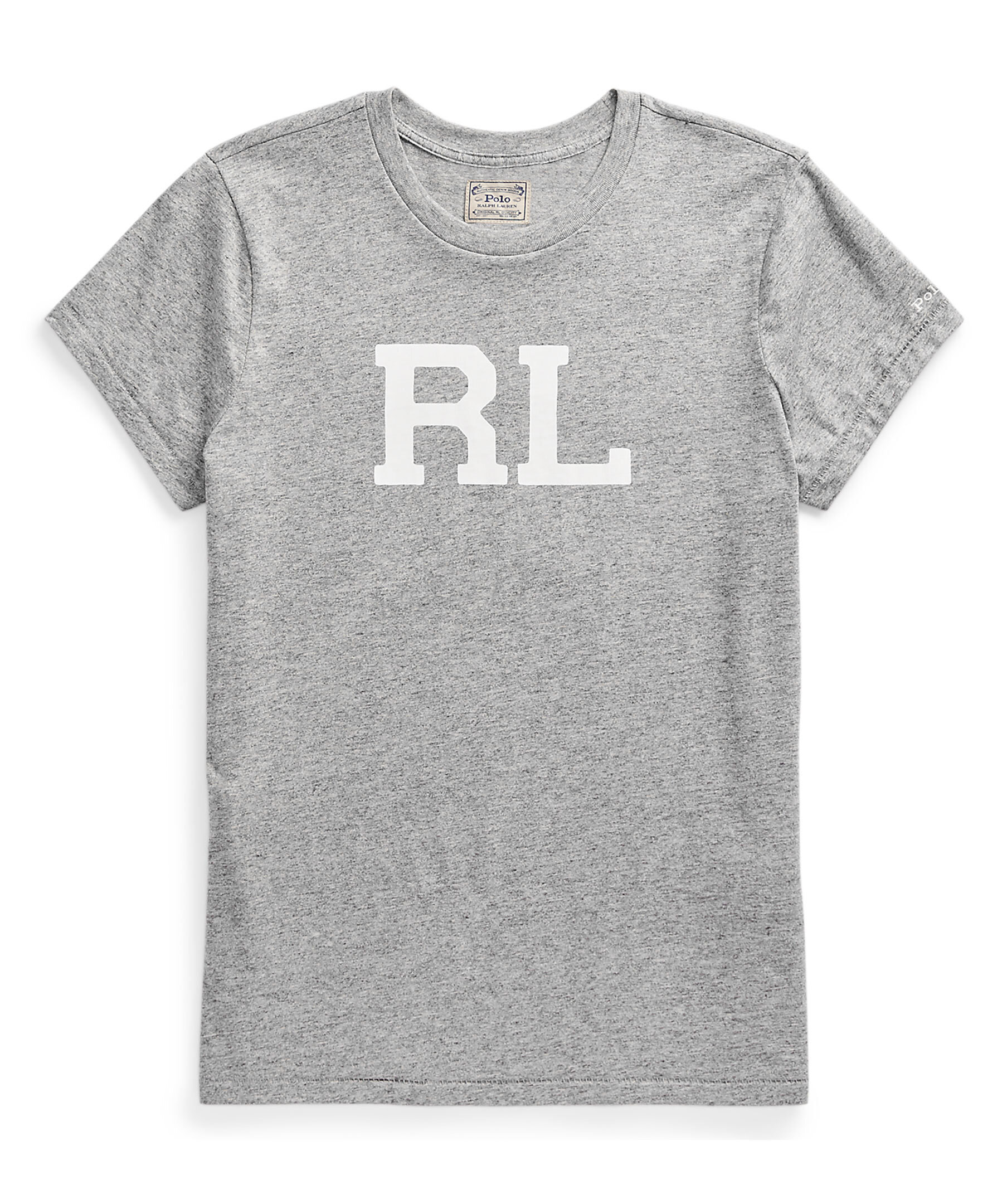 Gråmelerad kortärmad t-shirt från Polo Ralph Lauren. Toppen är gjord i ett mjuk bomullstyg och har en stort vitt 'RL' tryckt på bröstet. Rak passform.
