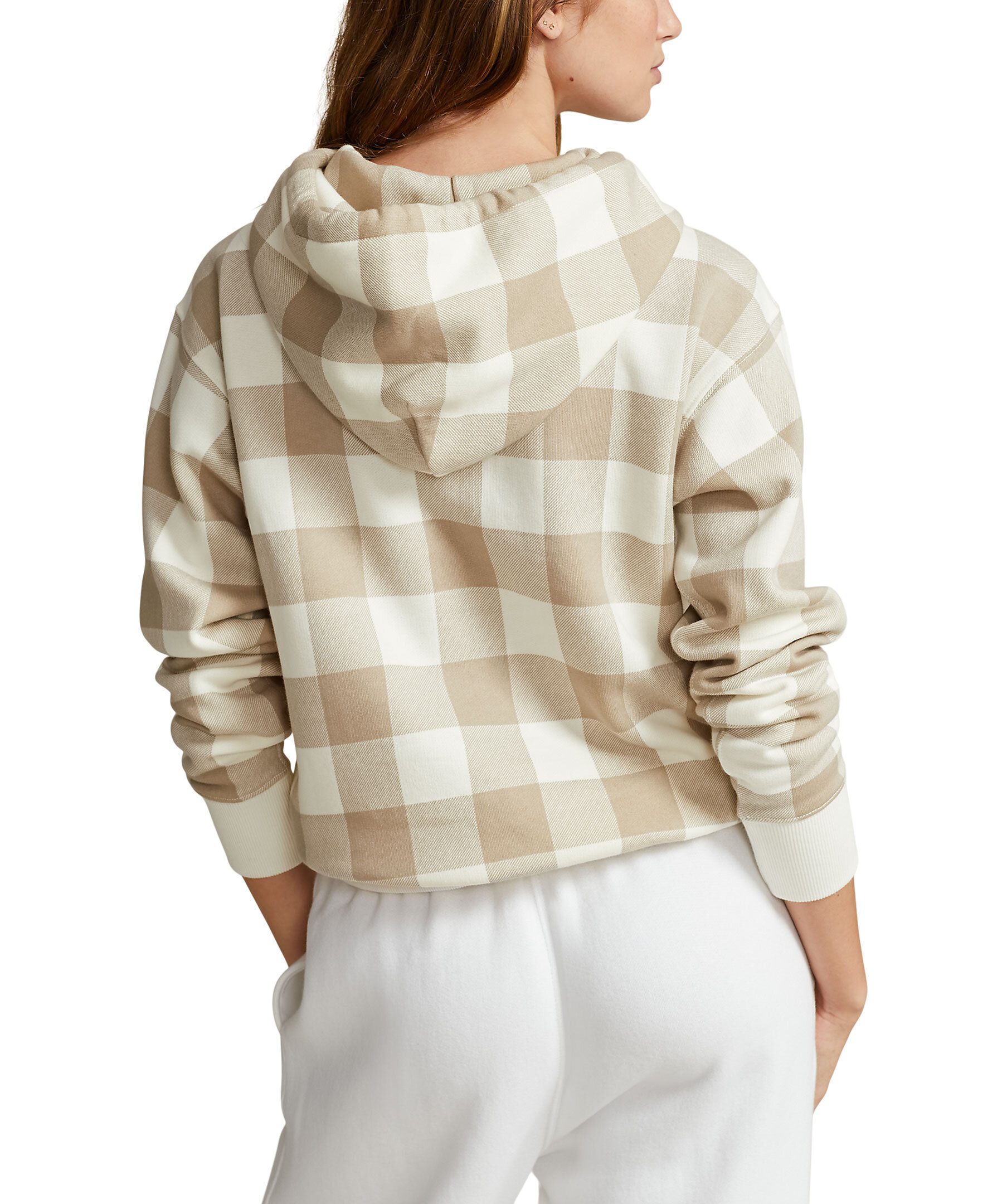 Beige, rutig hoodie från Polo Ralph Lauren. Avslappnad passform. Designad för att slå i höften. Huva med dragsko. Långa ärmar med ribbstickade muddar. Polo Bear, "Polo Bear by Ralph Lauren" och manuset "Ralph Lauren" signaturgummitryckt mitt fram. Ribbstickad fåll. Skal och huva foder: bomull, polyester. Muddar och nederkant: bomull.
