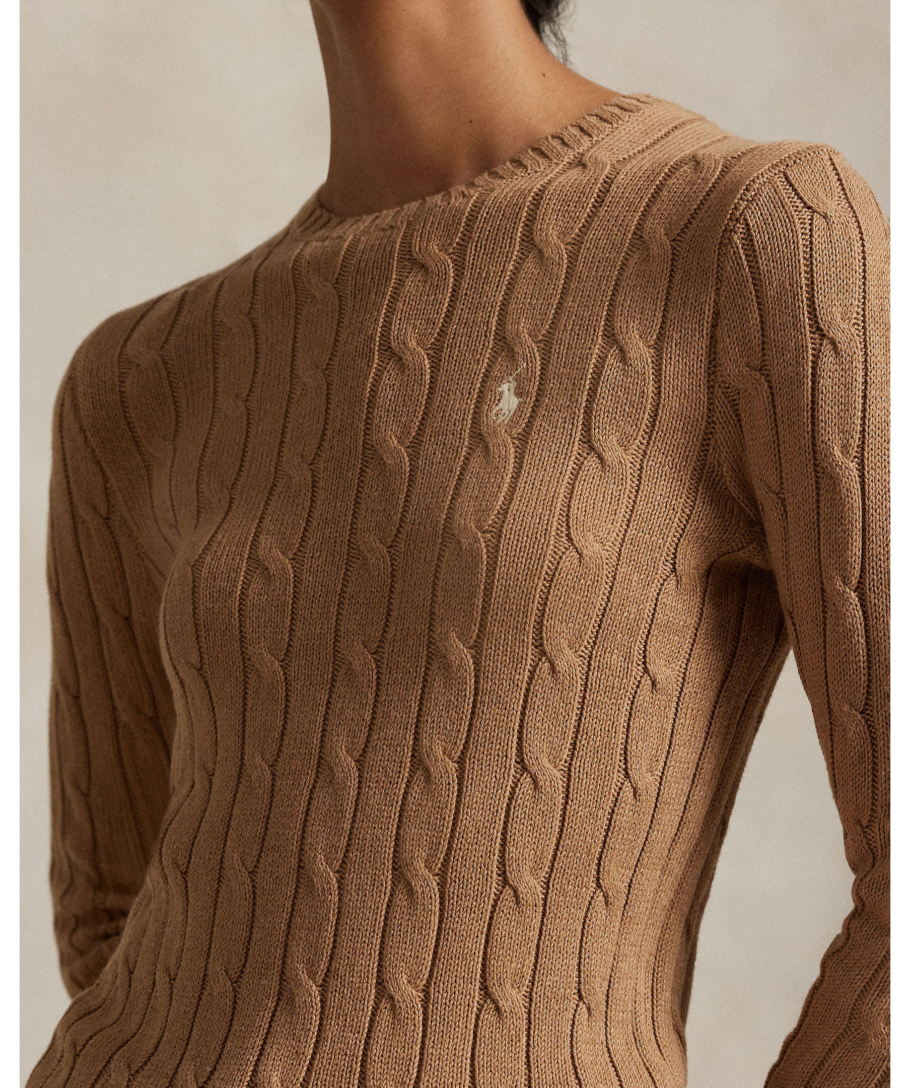 Beige, kabelstickad tröja från Polo Ralph Lauren. Slim fit passform och ribbstickade muddar. Broderad polo-häst på bröstet.