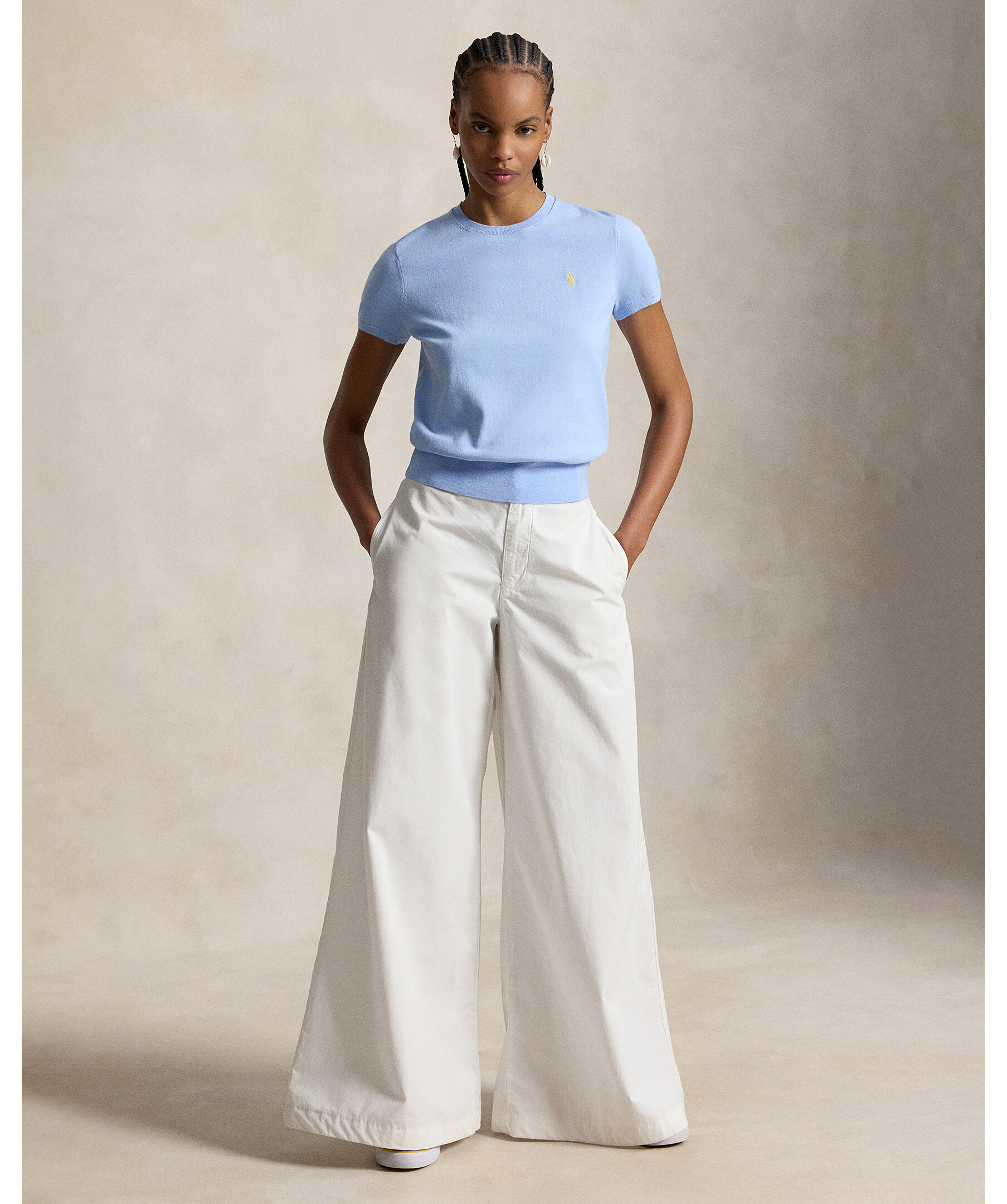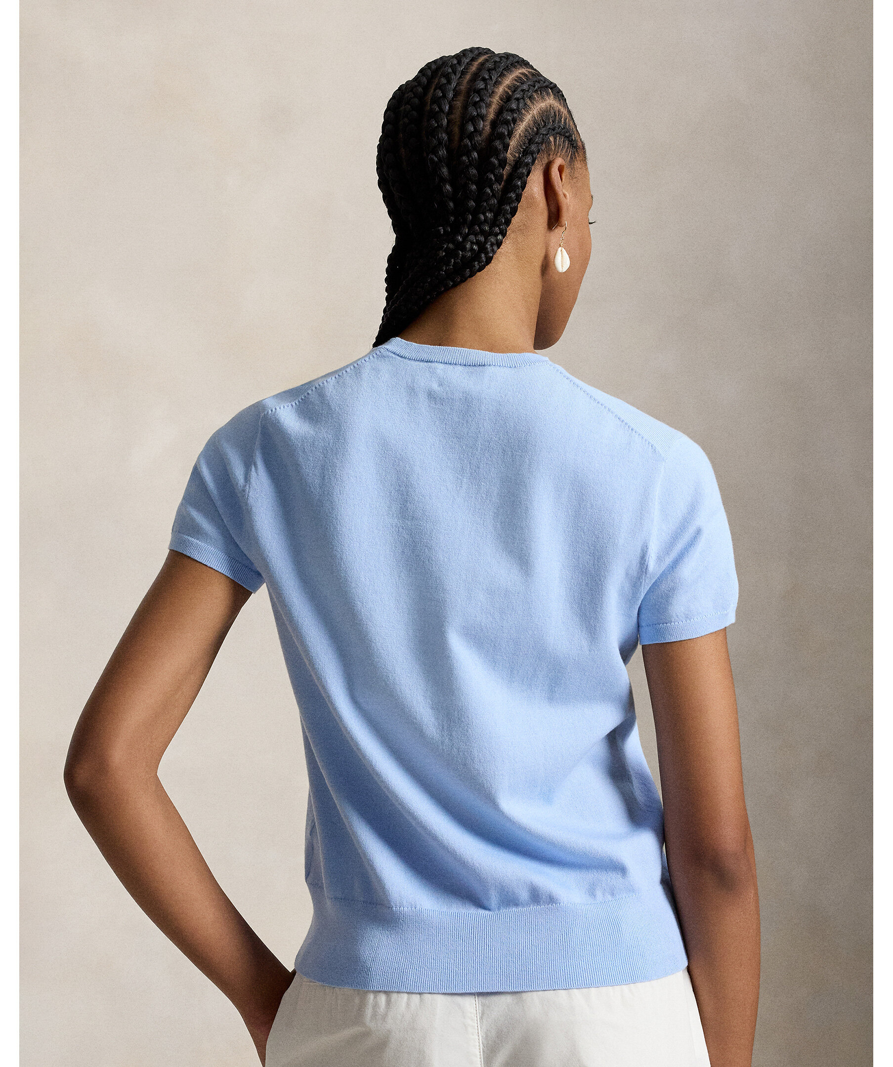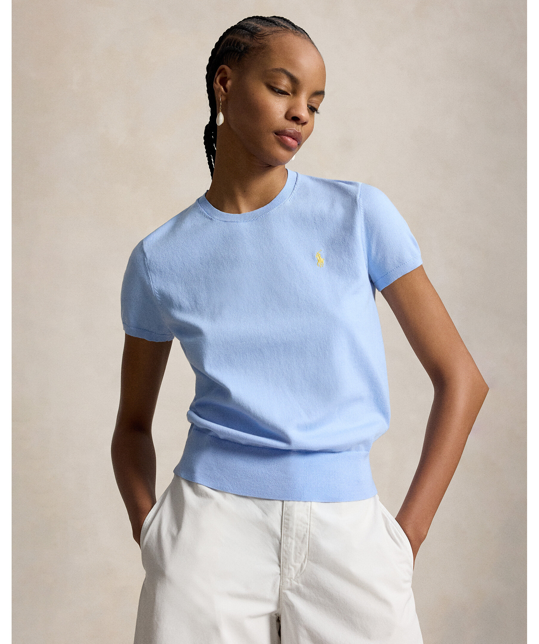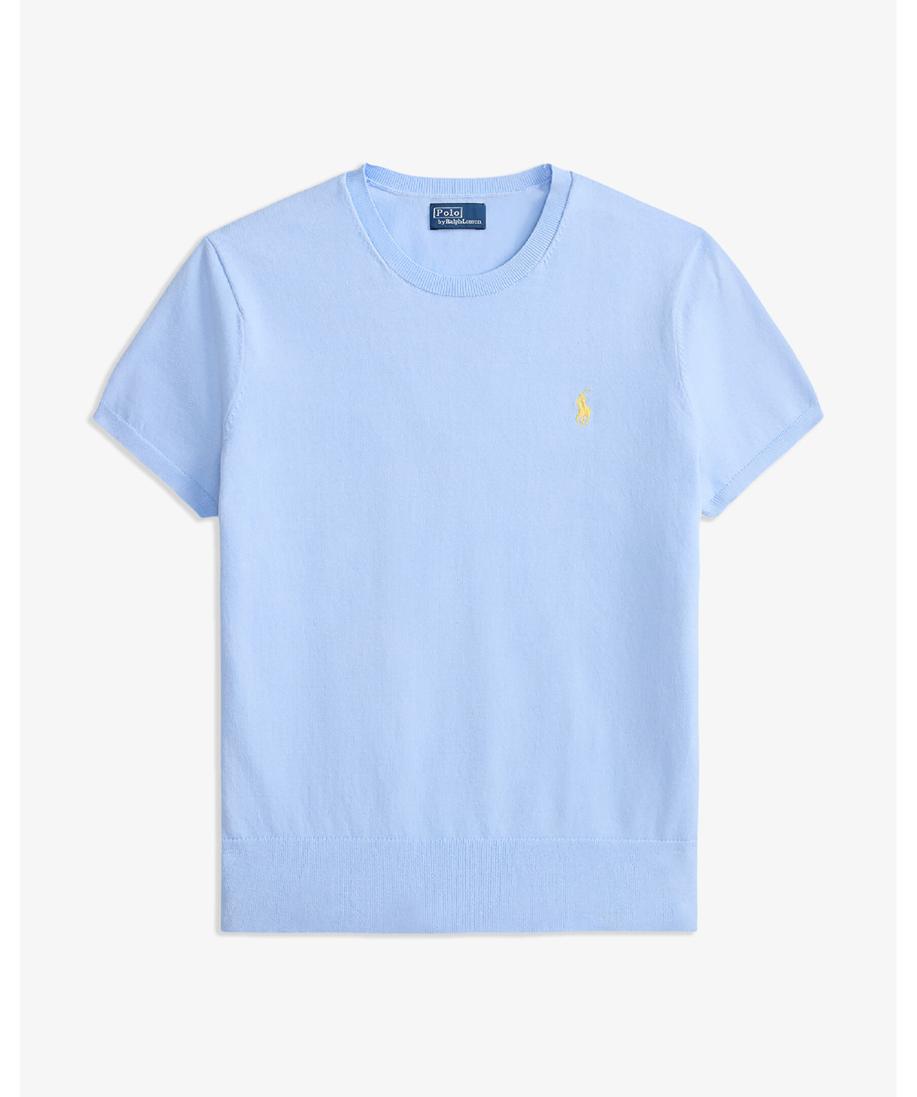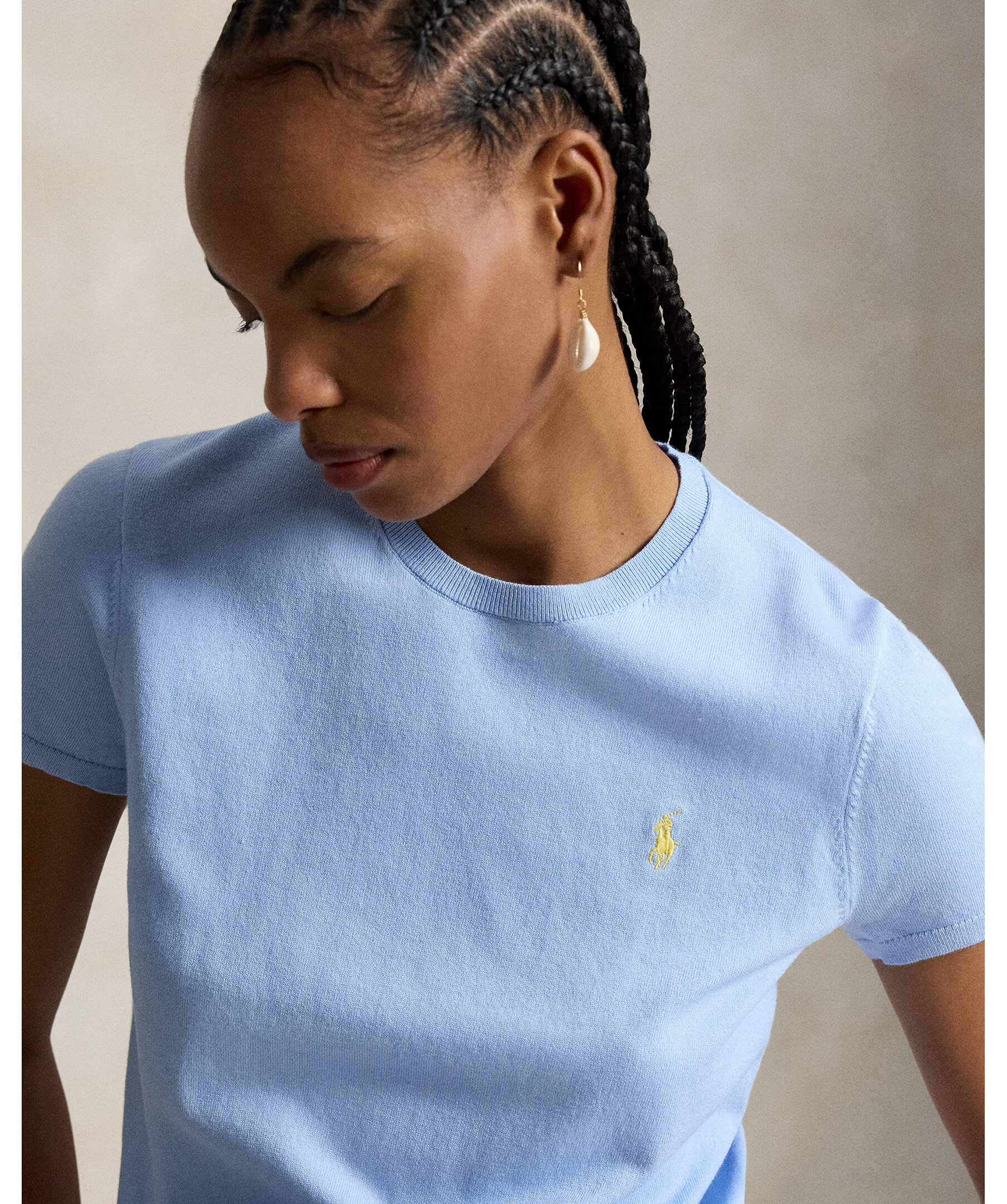 Blå kortärmad topp från Polo Ralph Lauren. Denna kortärmade tröja är tillverkad av en mjuk bomullsblandning, har en klassisk rund halsringning och är broderad med signaturponny på bröstet.