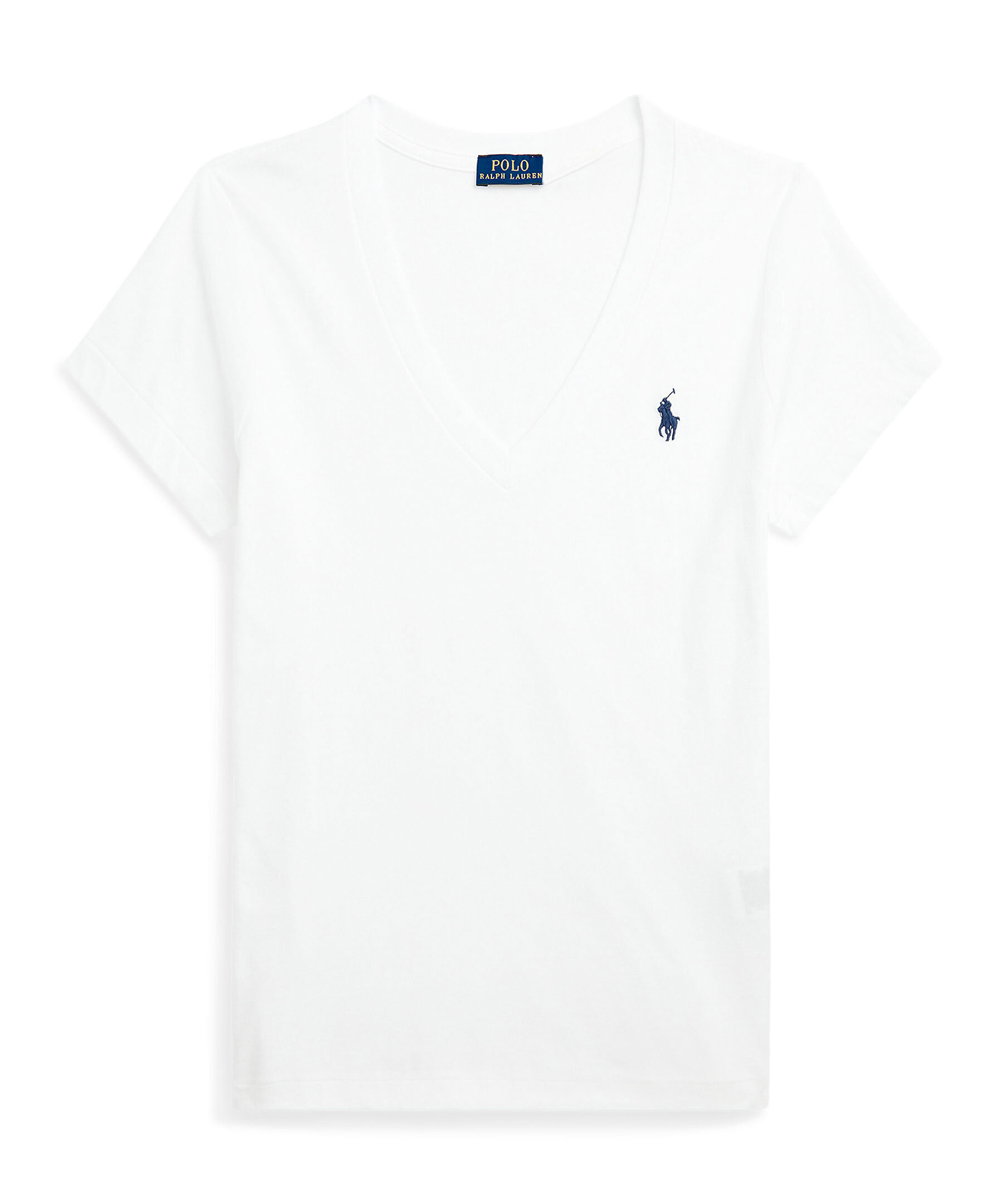 Vit t-shirt från Polo Ralph Lauren i mjuk bomullsjersey. Klassisk V-ringning, avslappnad passform samt broderad "Polo Ralph Lauren"-logotypen på vänstra bröstet.