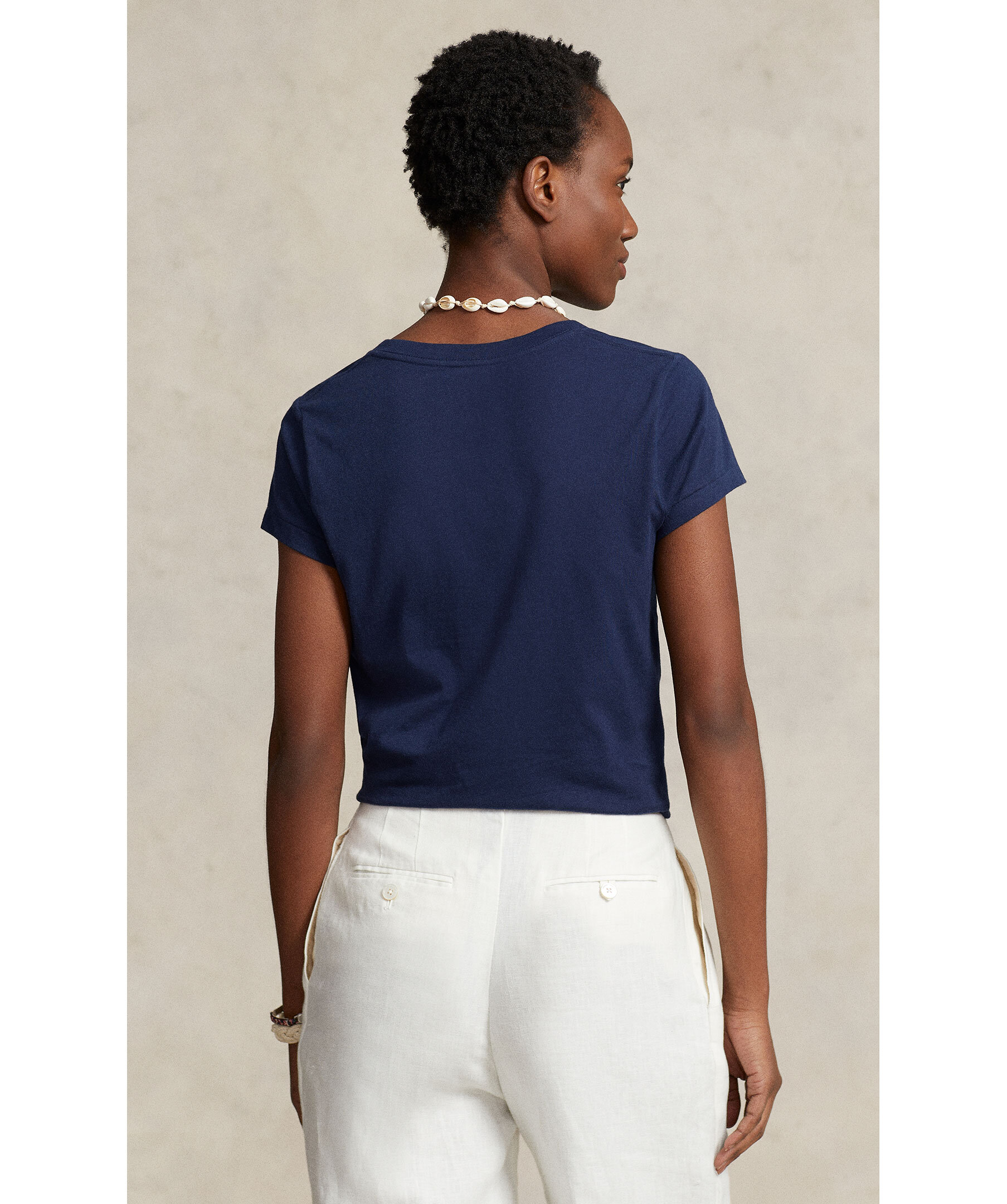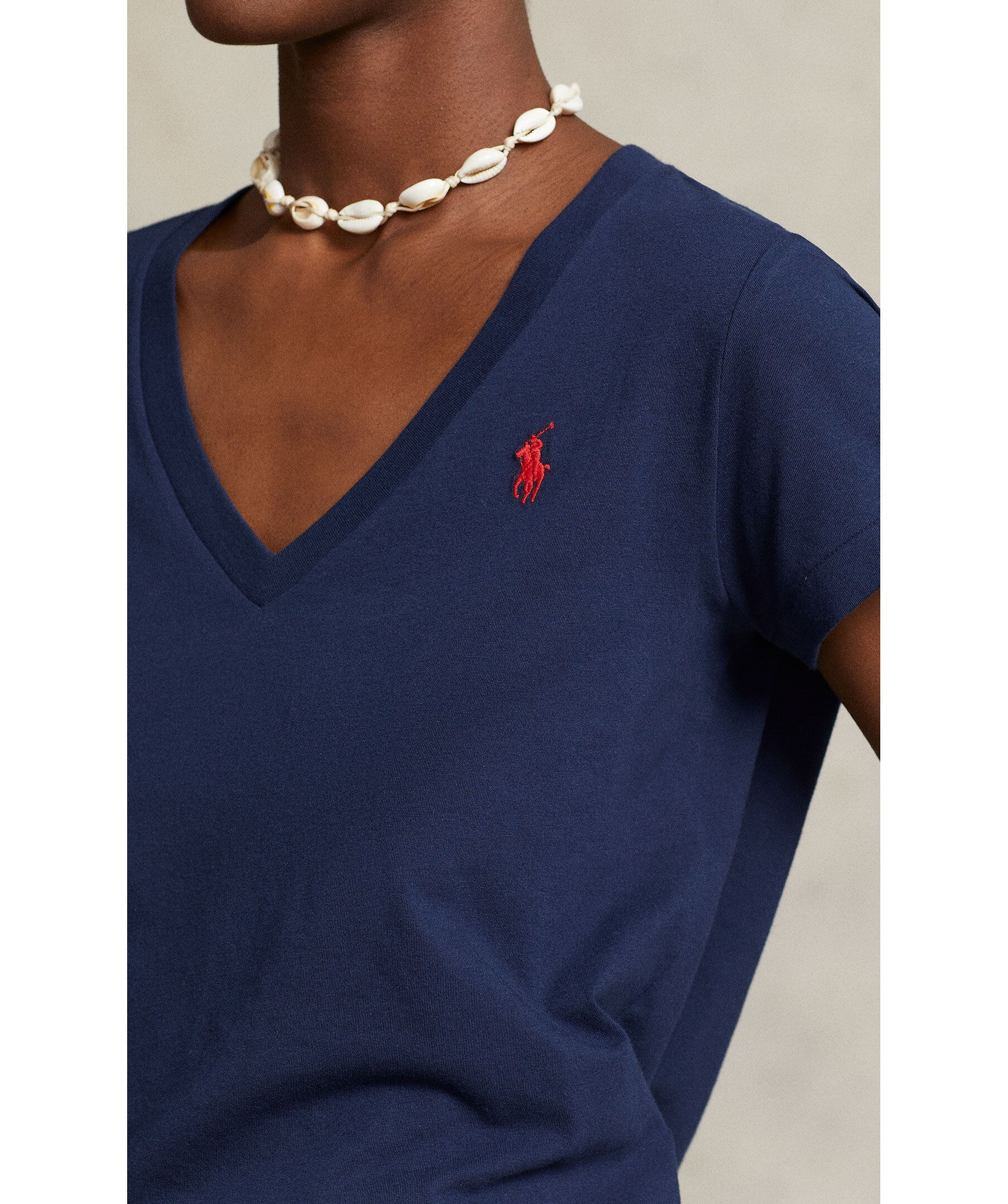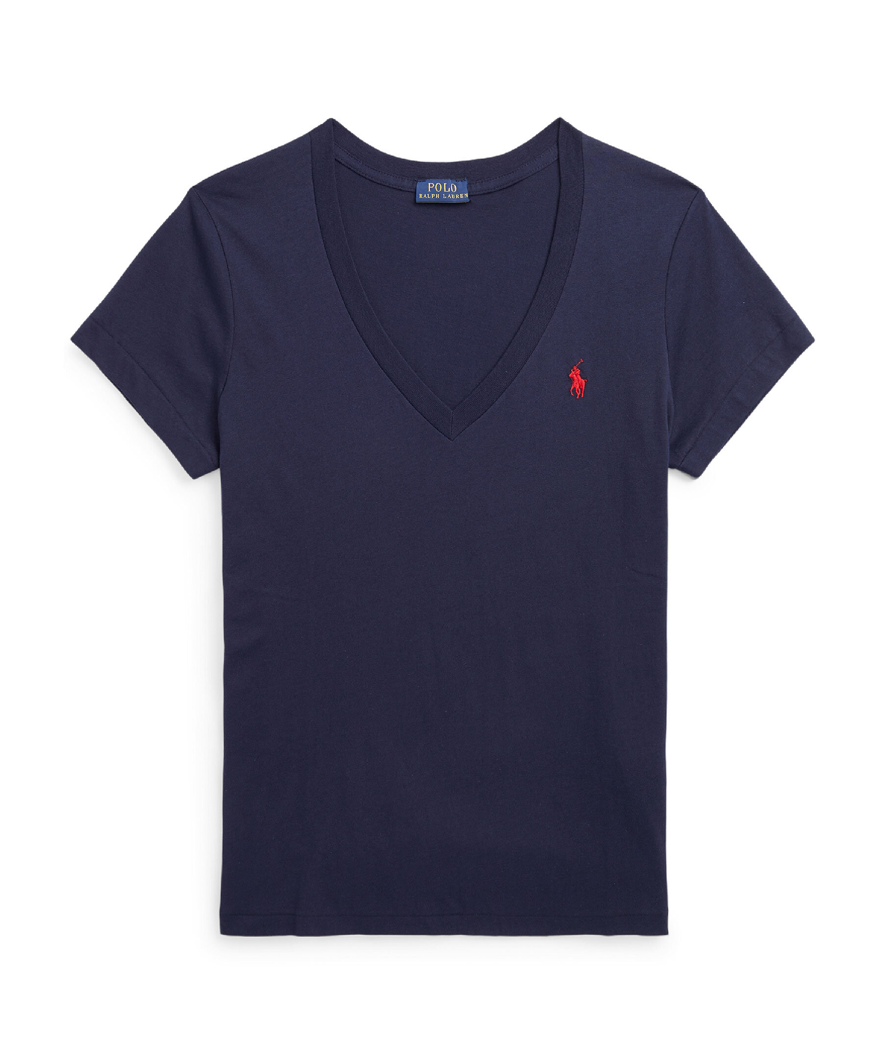 Mörkblå t-shirt från Polo Ralph Lauren i mjuk bomullsjersey. Klassisk V-ringning, avslappnad passform samt broderad "Polo Ralph Lauren"-logotypen på vänstra bröstet.