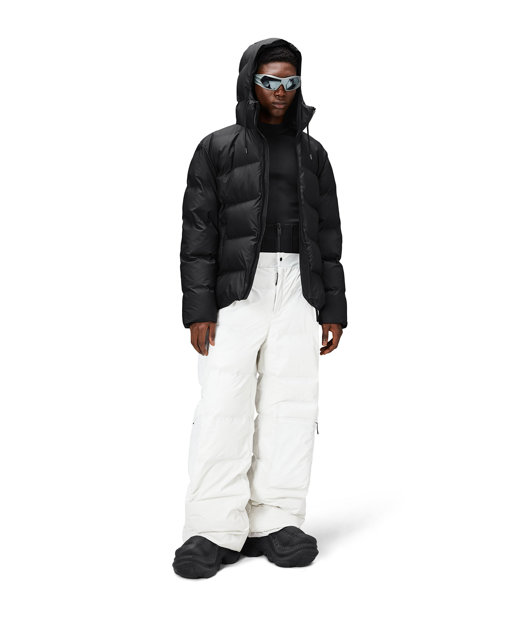 Svart Puffer jacka från Rains. En vattentät vinterjacka med en ren, lättburen puffer-estetik. Som en del av Alta Puffer-serien kännetecknas plagget av en raffinerad silhuett, breda signaturkammare och avskalade detaljer. Den här lyxiga puffern i vattentätt signaturtyg som andas bygger på fjäderlös kammarteknologi som håller dig varm och bekväm i de kallaste vädren. Jackan har gummerat tvåvägsblixtlås, ultraljudsgjutna sömmar, rymliga fleecefodrade sidfickor, dolda stormmanschetter och inre bröstficka. Silhuetten har fodrad huva med dragsko.