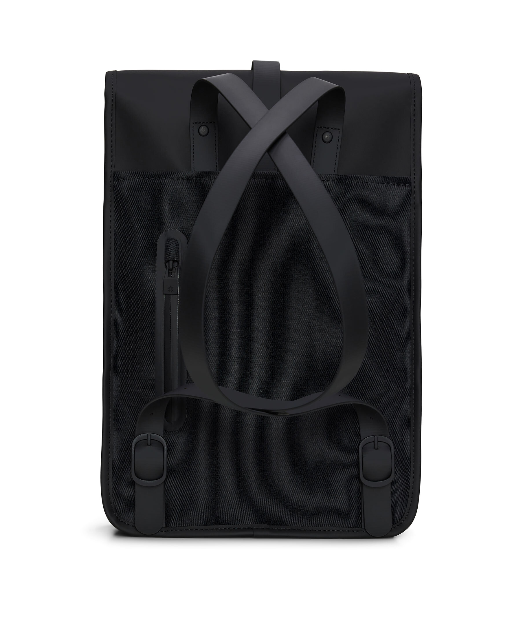 En svart, mindre ryggsäck från Rains. Silhouette kännetecknas av sin fyrkantiga form och flik med magnetsnäpplås. Väskan har en invändig laptopficka, ett rymligt huvudfack och en dold telefonficka på bakpanelen. Laptopfickan passar en 13 tums bärbar dator med fodral. Tillverkad i Rains vattentäta signaturtyg i PU, som har designats för bärkraft, hållbarhet och en mjuk känsla. Mått: H40 x D10 x B29 cm. Volym: 11L.