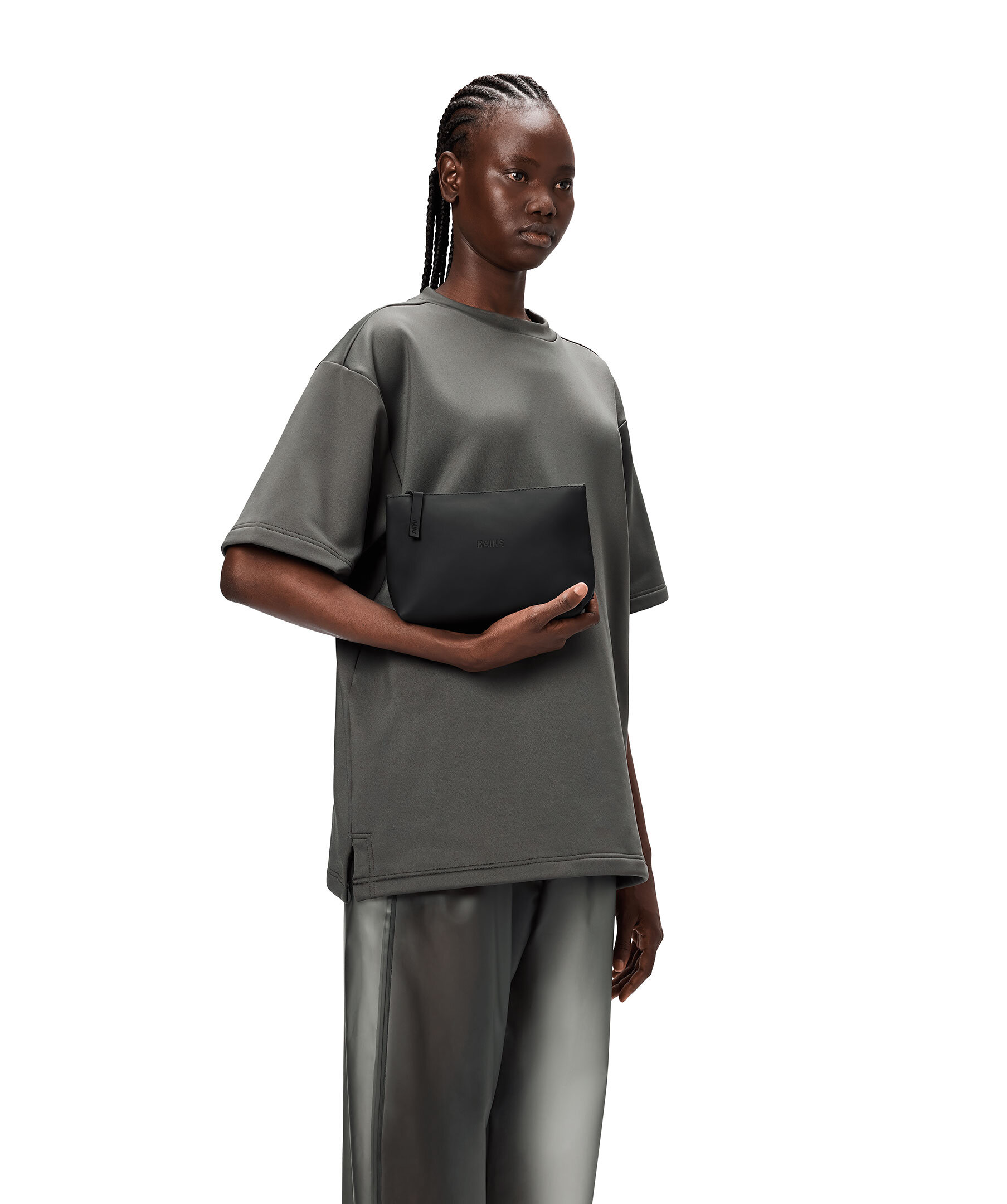 Svart necessär från Rains. Necessären har mjuka hörn nedtill samt en tydlig söm upptill. Stängs med dragkedja och har en blixtlåsrem i TPU. Väskan har även två mindre fack på insidan för att du lättare ska kunna sortera dina tillbehörigheter. Rymmer 2 L. Tillverkad av Rains signatur vattentäta PU-tyg. Mått: H 13,5 x B 20,5 x D 6,5 cm och rymmer 1,8L.