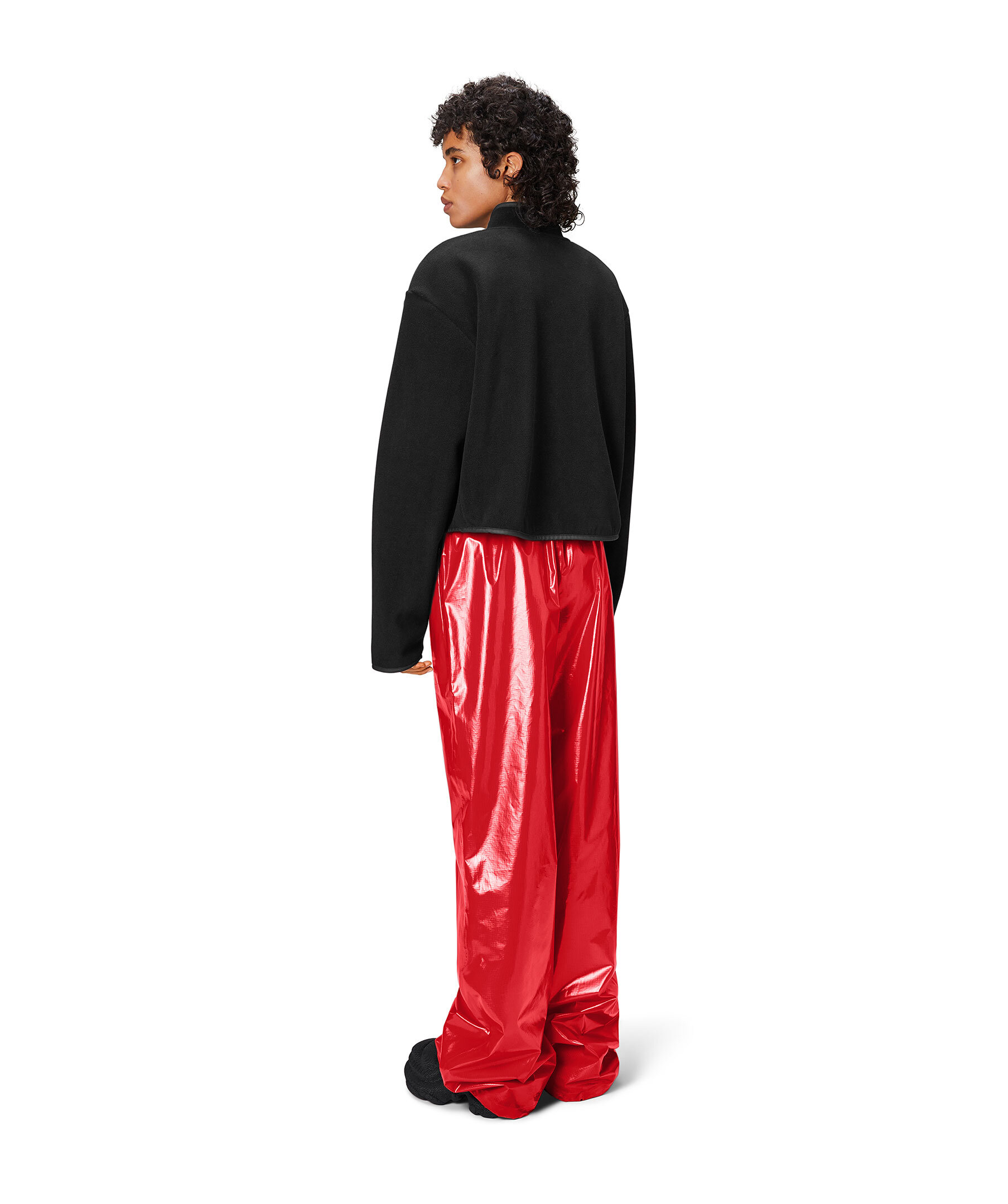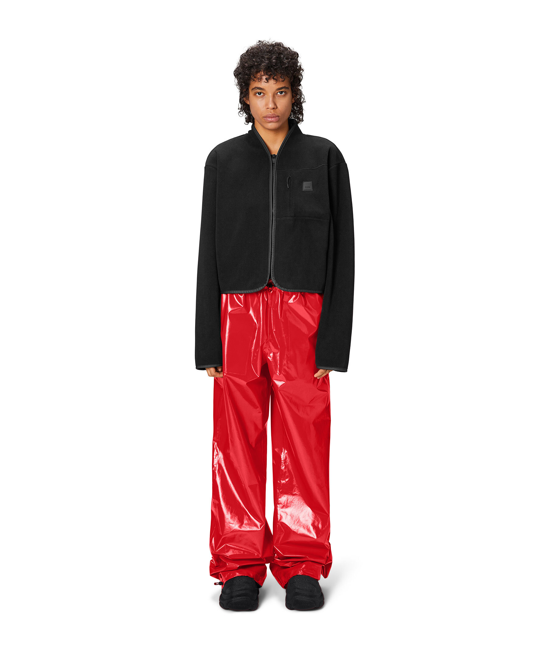 Svart fleecejacka i kort modell från Rains. Designad med trendiga beskurna proportioner och är gjord av ventilerad bondad fleece och med PU-bindning runt halsen, stängningen, fållen och ärmsluten, vilket påminner om Rains DNA. Den karaktäristiska bomber-inspirerade kragen ser också lite elegantare ut än de flesta andra. Durban kort fleecejacka har PUR-bundna kanter och en bröstficka med dragkedja. Designen är tillverkad av andningsbar stapelfiberfleece.