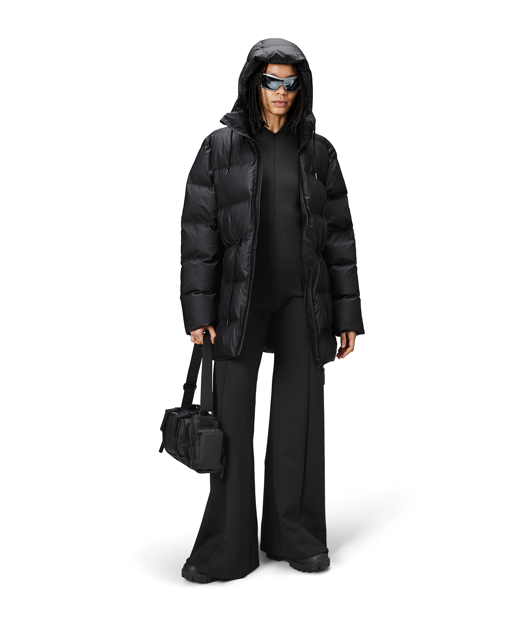 Svart puffer parka jacka från Rains. En lite längre, vattentät vinterjacka med en ren, lättburen puffer-estetik. Som en del av Alta Puffer-serien kännetecknas plagget av en raffinerad silhuett, breda signaturkammare och avskalade detaljer. Den här lyxiga puffern i vattentätt signaturtyg som andas bygger på fjäderlös kammarteknologi som håller dig varm och bekväm i de kallaste vädren. Jackan har gummerat tvåvägsblixtlås, ultraljudsgjutna sömmar, rymliga fleecefodrade sidfickor, dolda stormmanschetter och inre bröstficka. Silhuetten fulländas av en fodrad dragskohuva och dragskomidja.