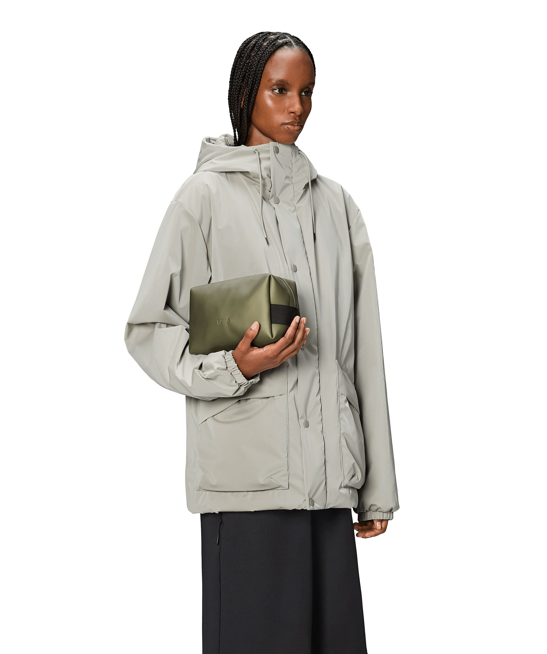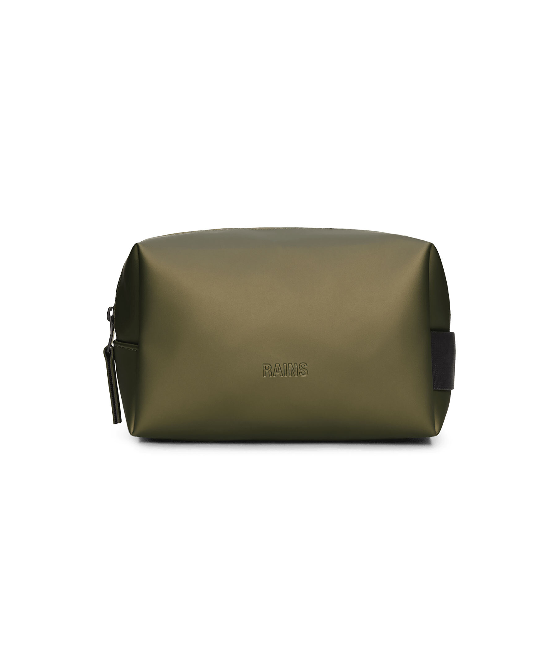 Mörkgrön, vattentät neccessär från Rains. Neccessären har ett enda fack som stängs med dragkedja och har ett vävt bärhandtag. Subtil logotyp på utsidan. Tillverkad i Rains vattentäta signaturtyg i PU. Mått: H13 x D11 x B21 cm och rymmer 3L.