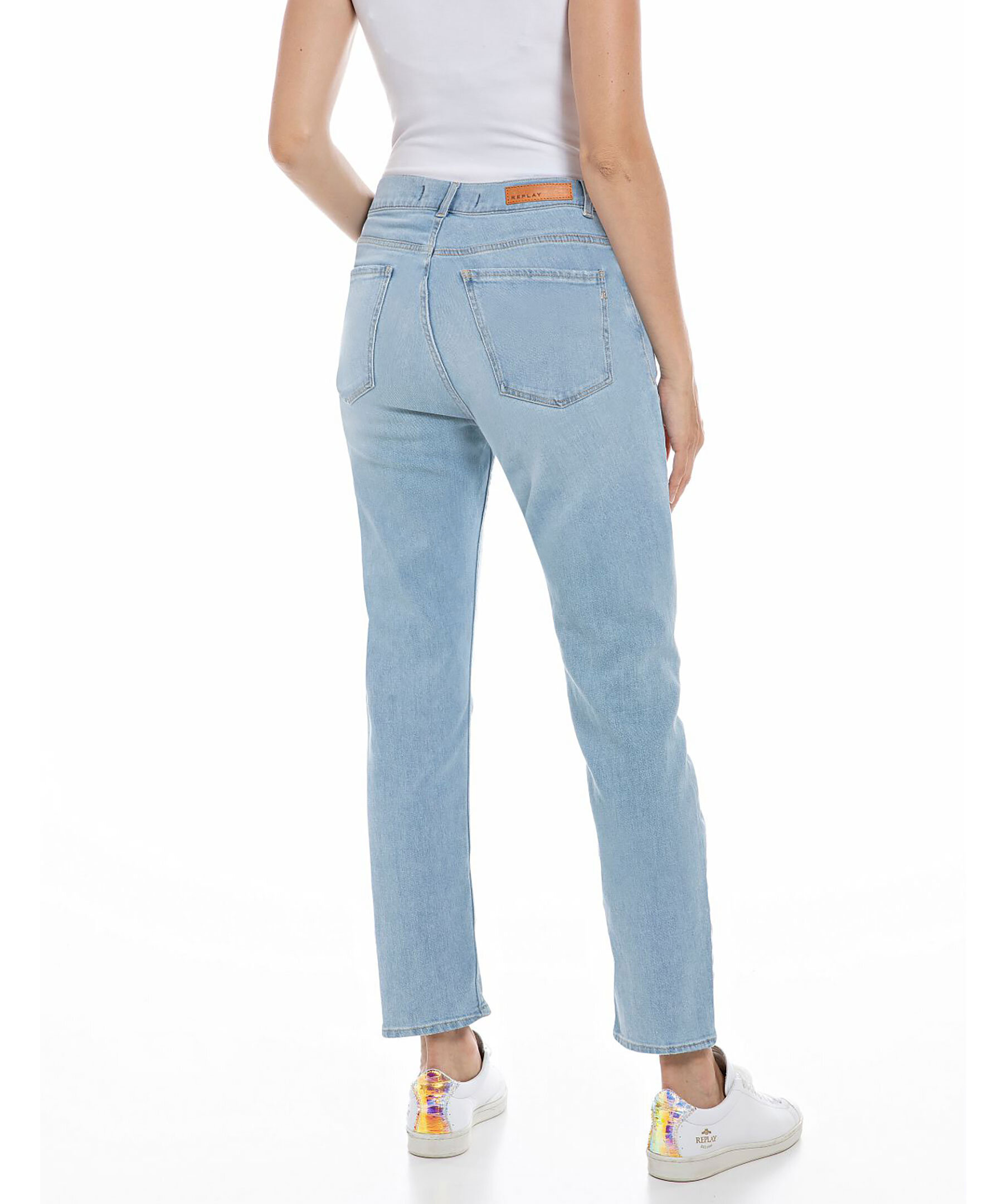 Jeans i en ljusblåtvätt från Replay. Jeansen har en rak passform och hög midja. Femficksmodell, läderlapp med logotyp baktill. Innerbenslängden är 77cm i storlek 28'30. Modellen är 175cm lång och har på sig storlek 27"30.