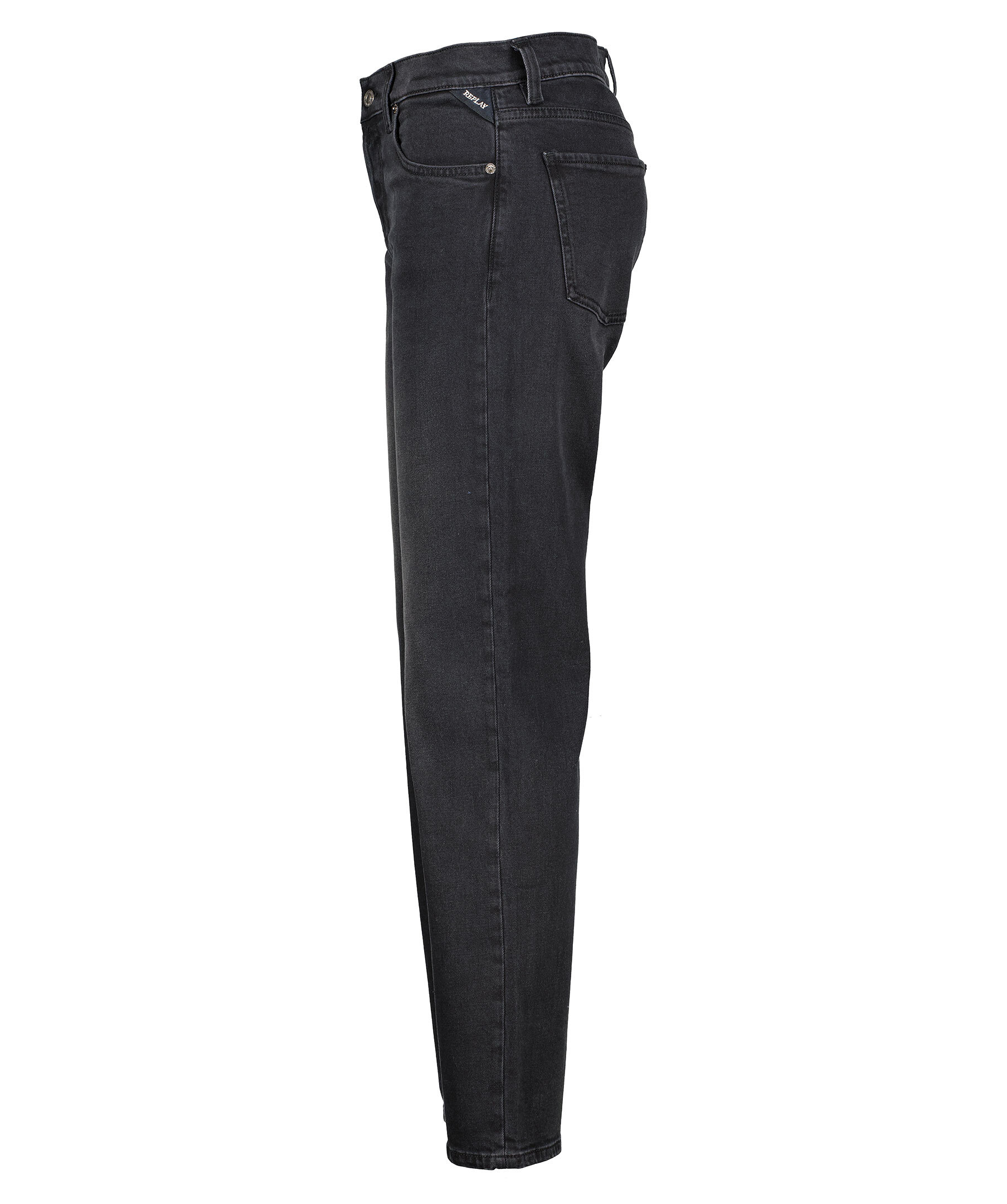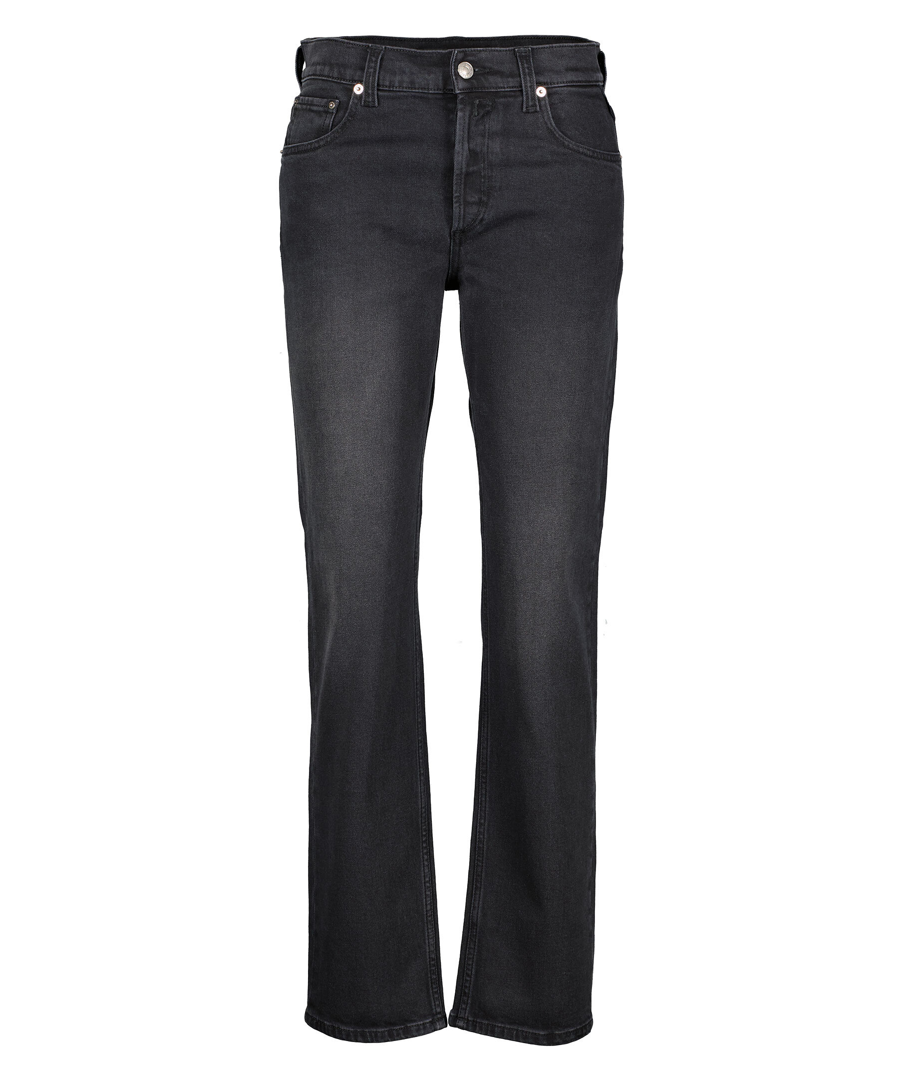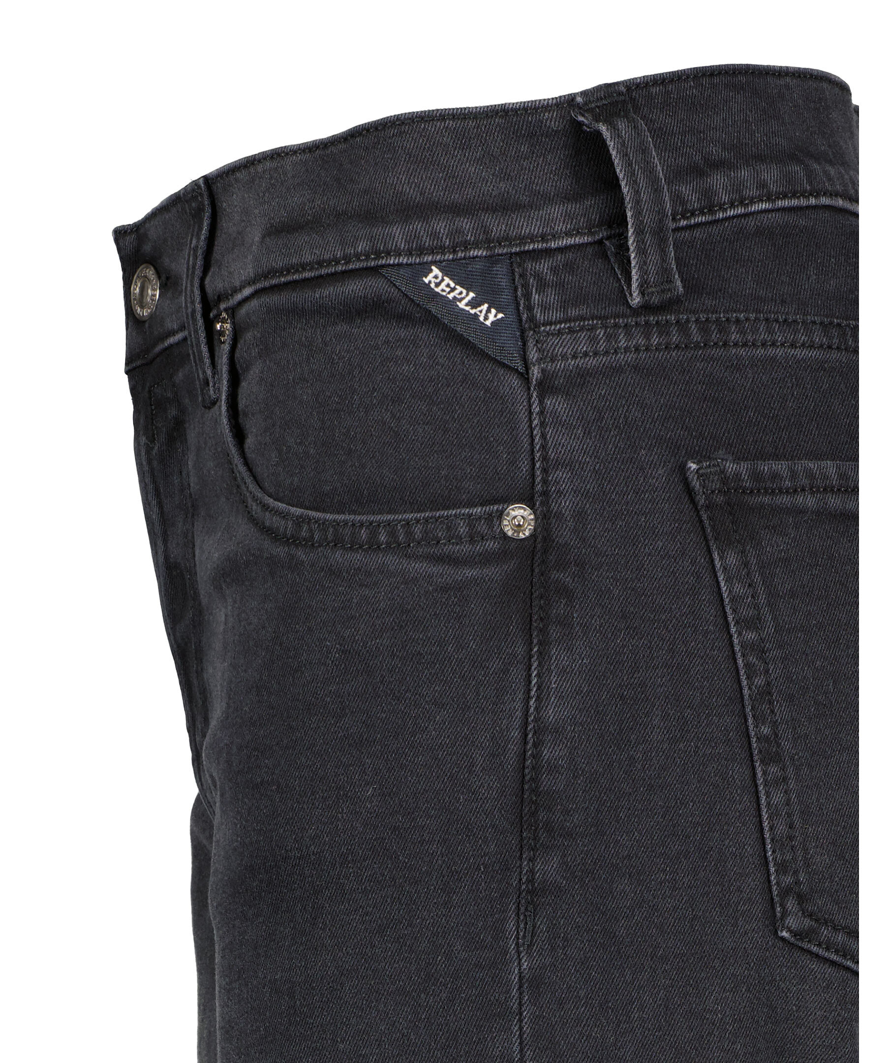 Svarta högmidjade jeans från Replay. Rak passform med raka ben. Med vintage passform är plagget tillverkat av 11 oz svart överfärgad svart komfortbomullsdenim med en mörk tvätton. De fem fickorna kännetecknas av enzymbehandlingen. Knäppning med knappar. Replay logotyp på ena bakfickan och ena framfickan.