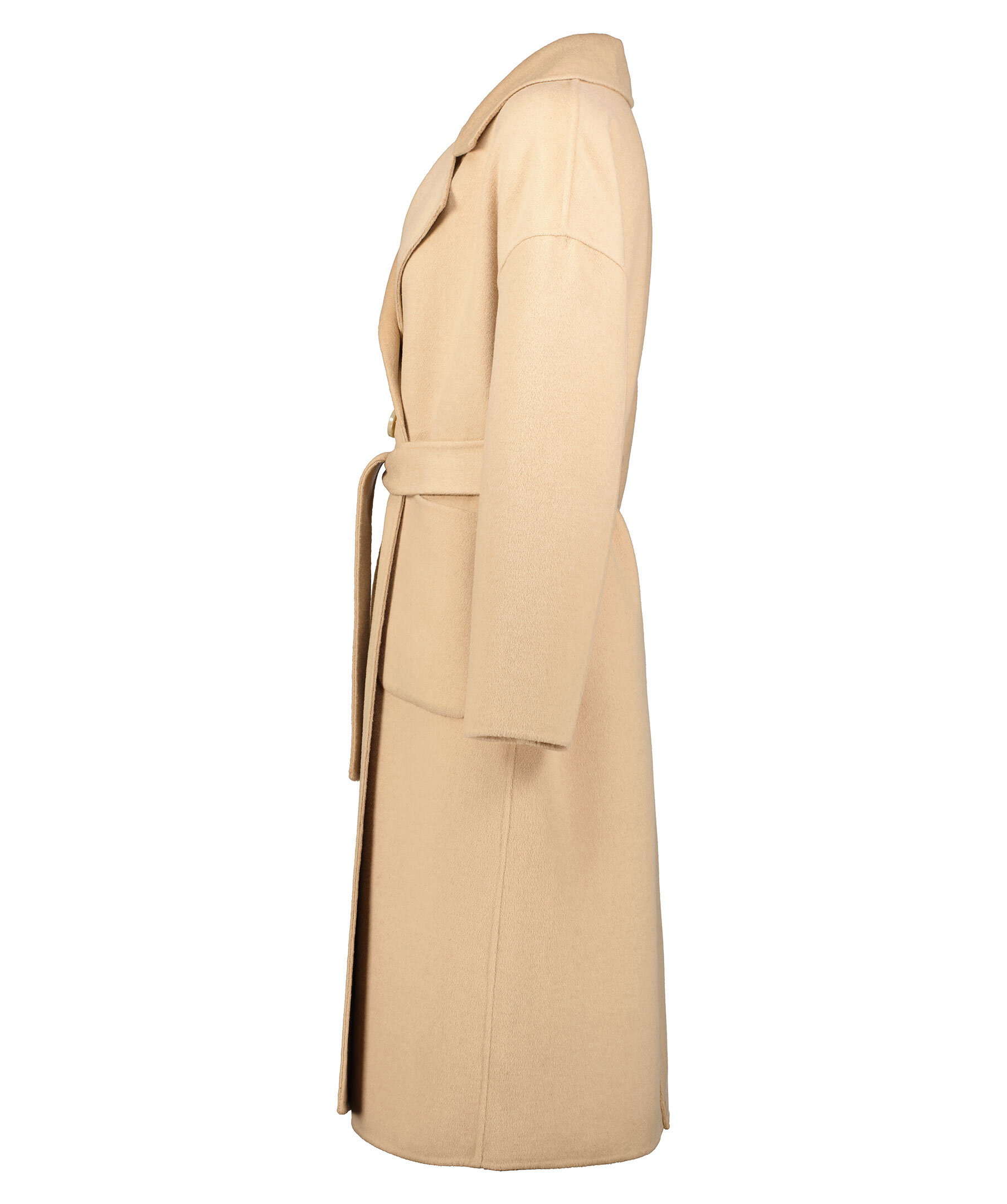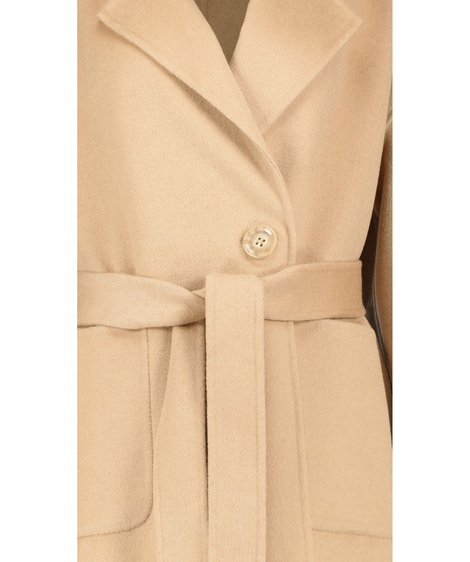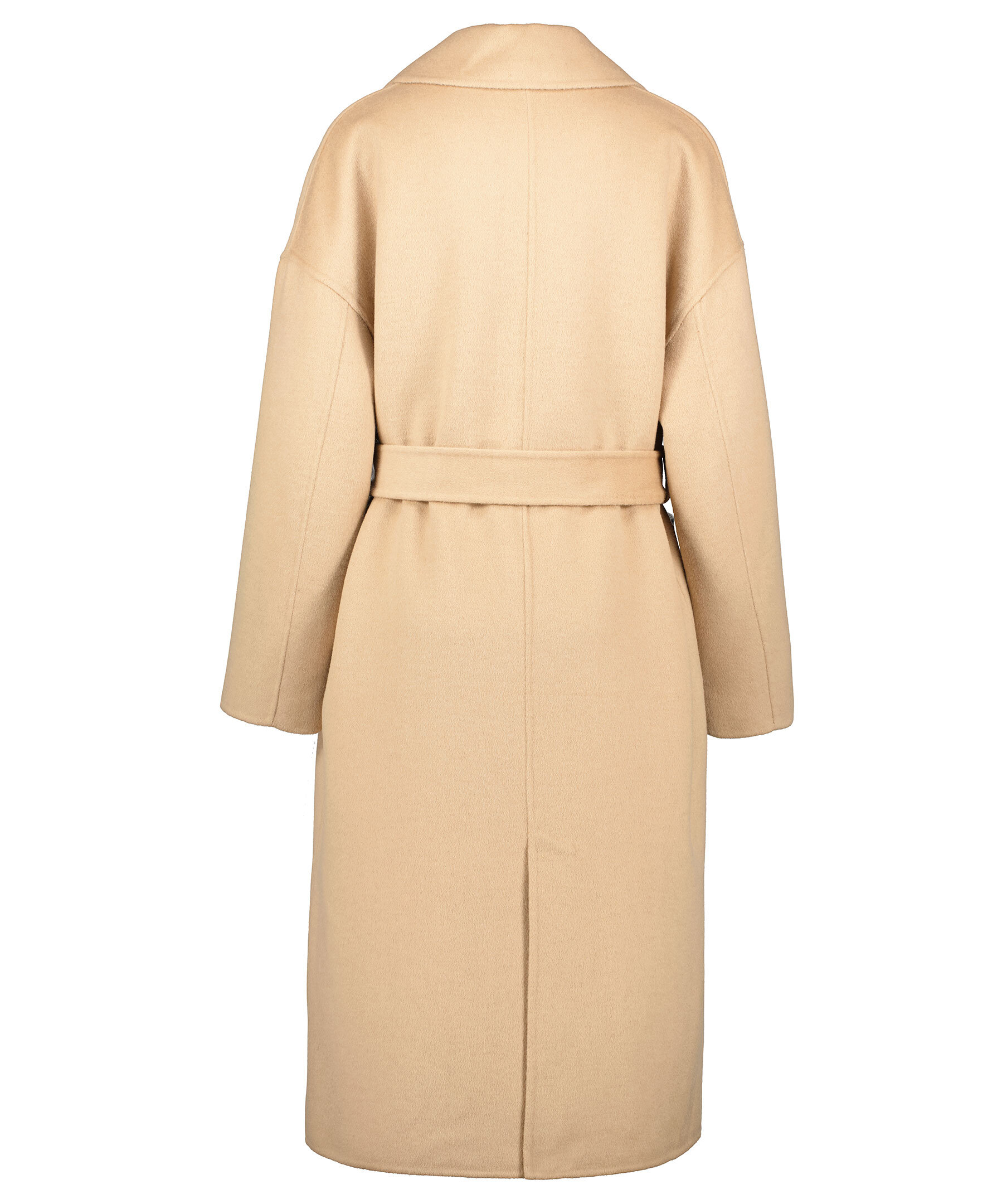 Beige dubbelknäppt kappa från Rockandblue. Avtagbart bälte. Två fickor framtill. Sprund baktill. Tillverkad i ullblandning.