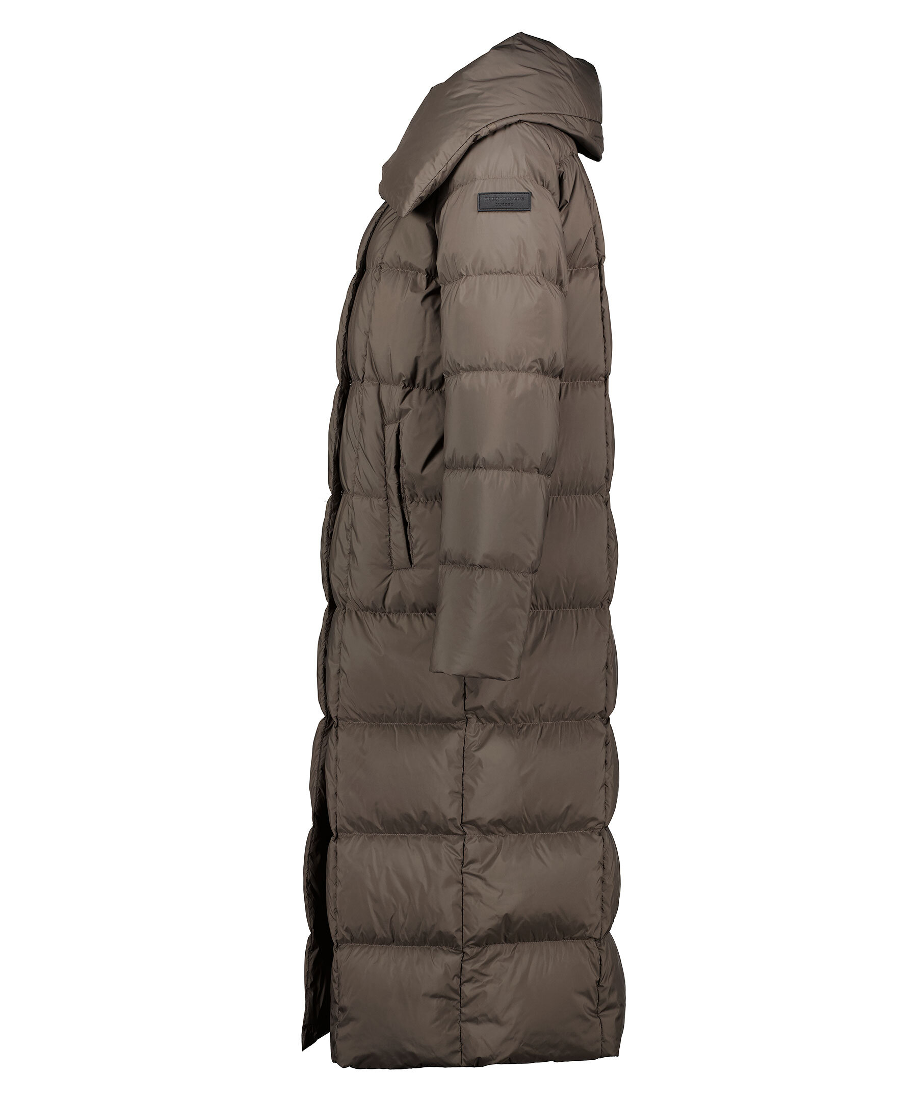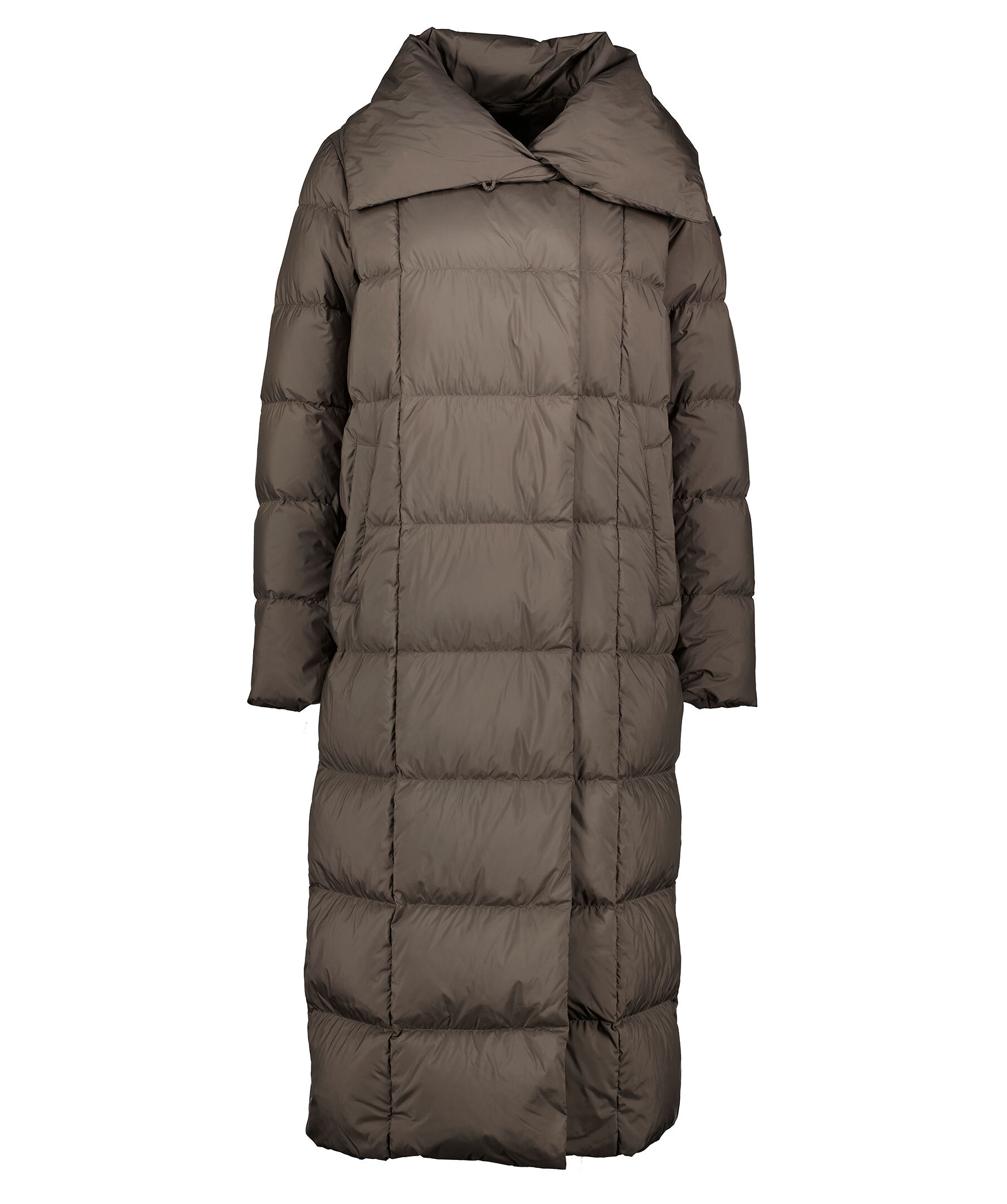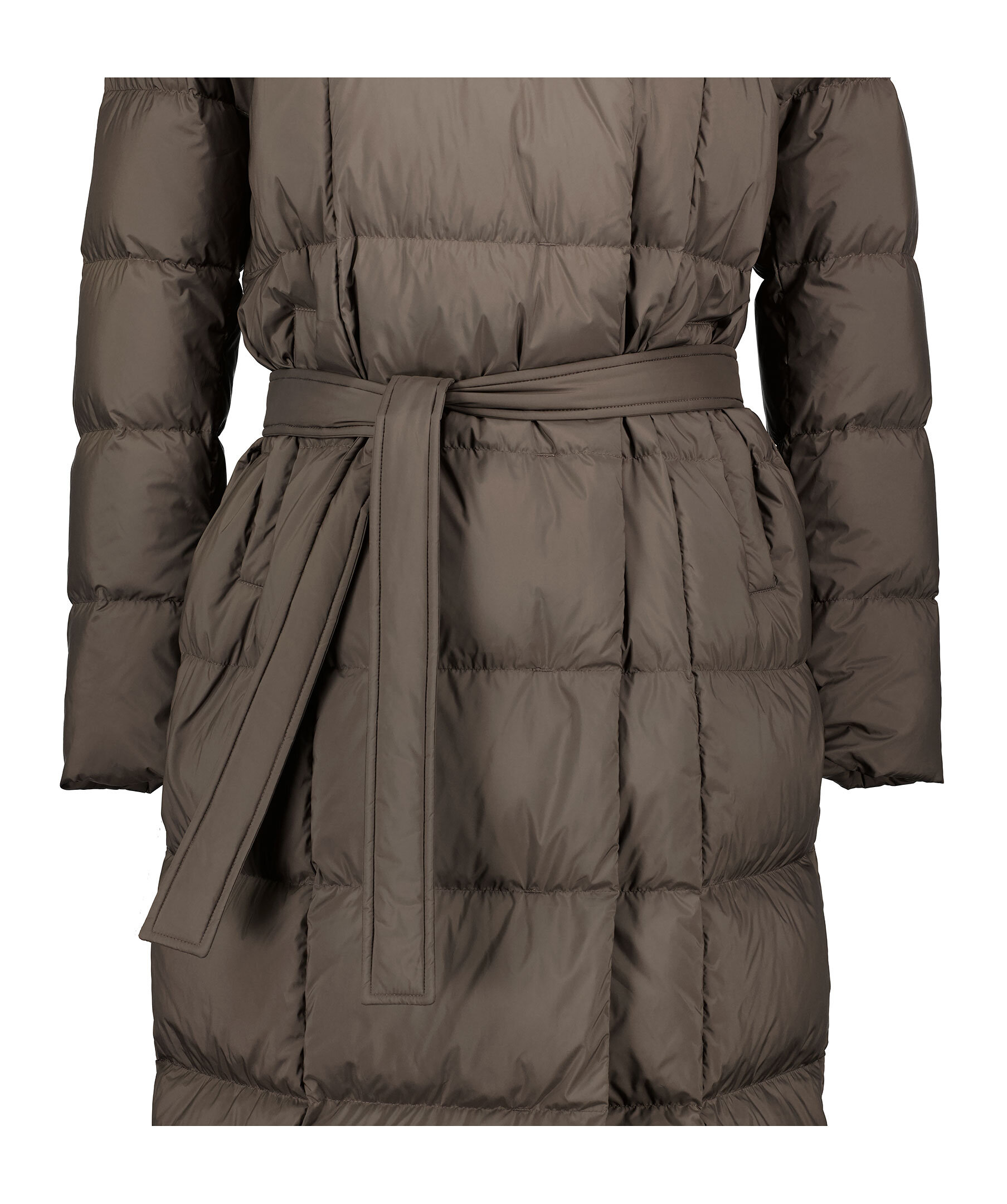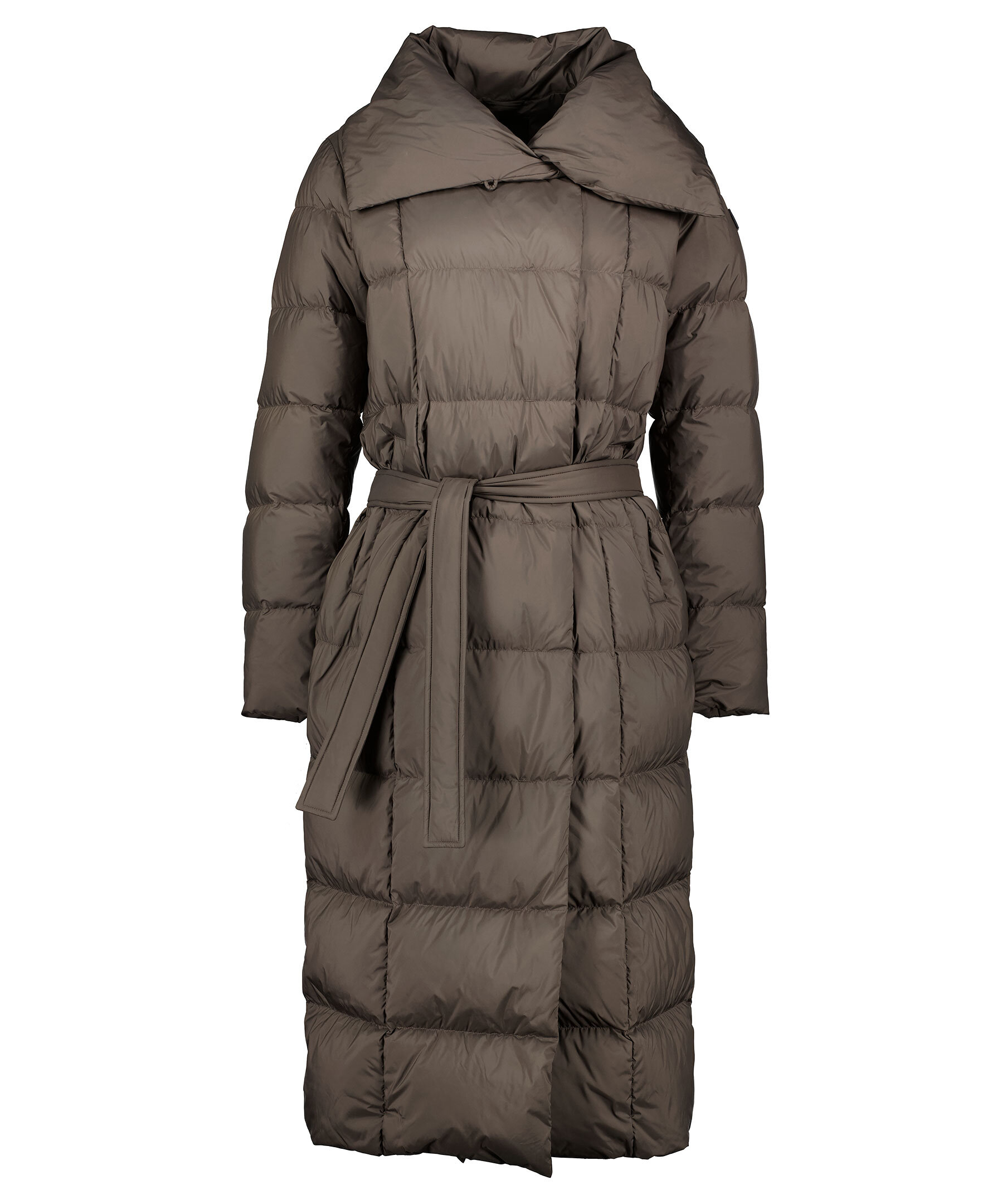 Brun quiltad dunkappa från Rockandblue. Stängs framtill med tryckknappar och bälte. Stor krage. Två fickor framtill som stängs med tryckknappar. Innerficka som stängs med dragkedja. Patch i läder med embossad logotyp på vänster ärm.
