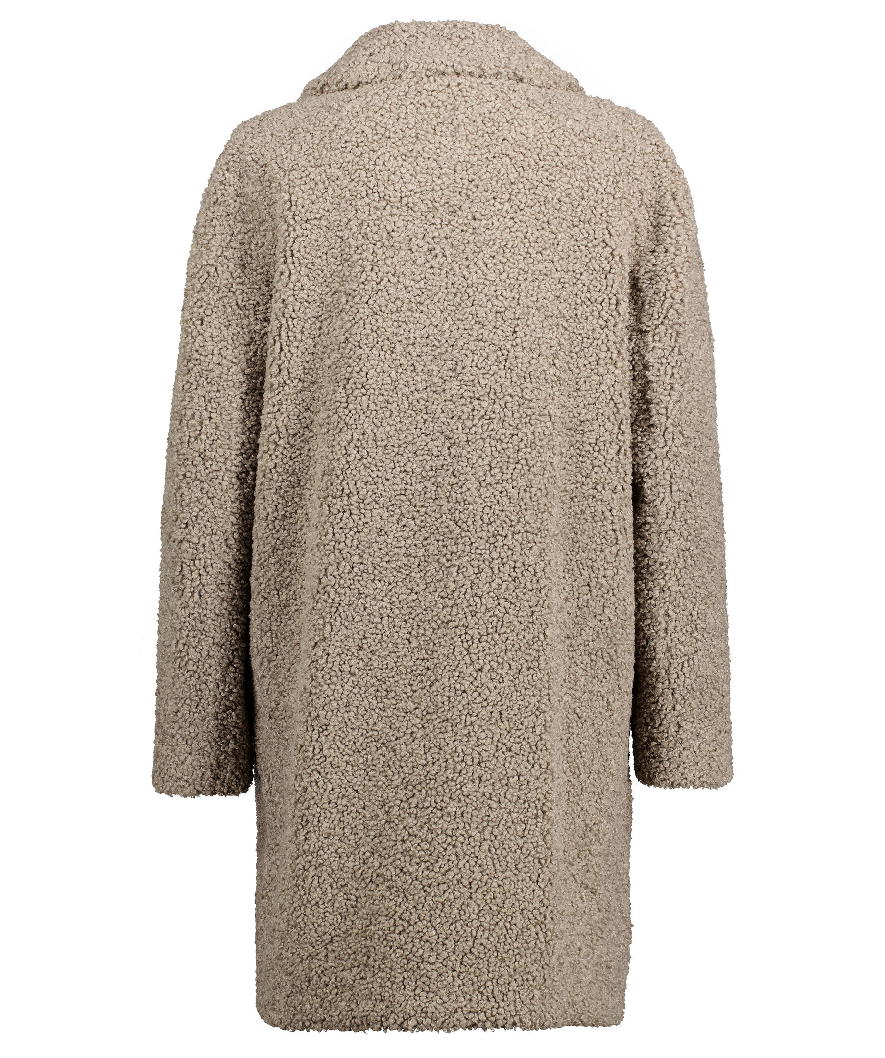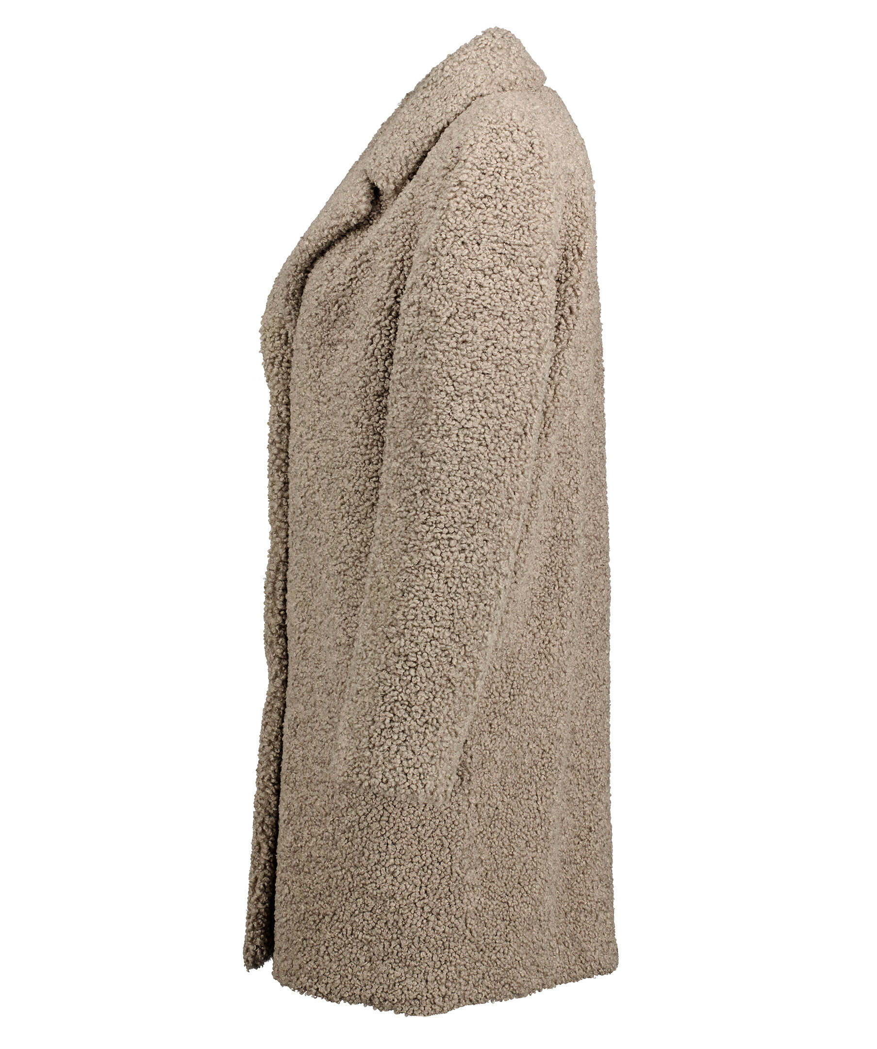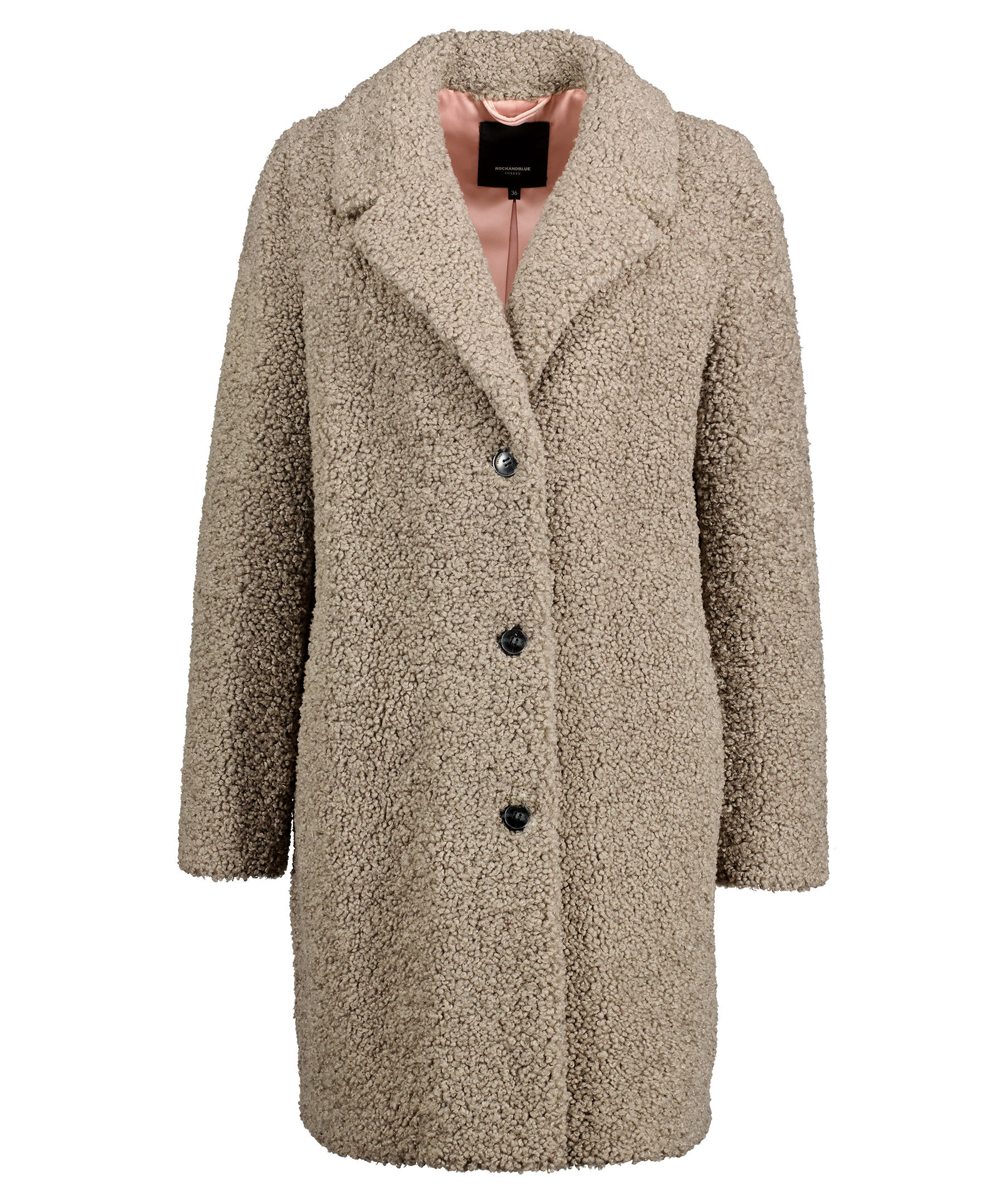 Taupefärgad kappa gjord i konstpäls från RockandBlue. Jackan har två dolda, öppna fickor, en innerficka med dragkedja. Fin krage med slag. Stängs med stora, svarta knappar och har ljusrosa foder. Tillverkad i polyester.
