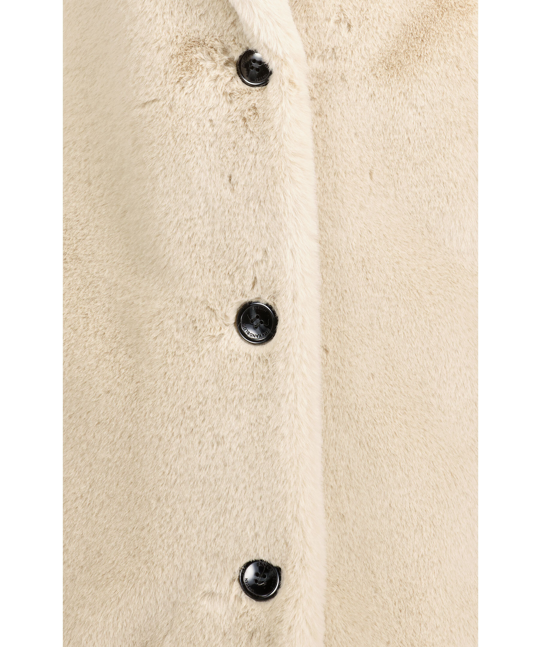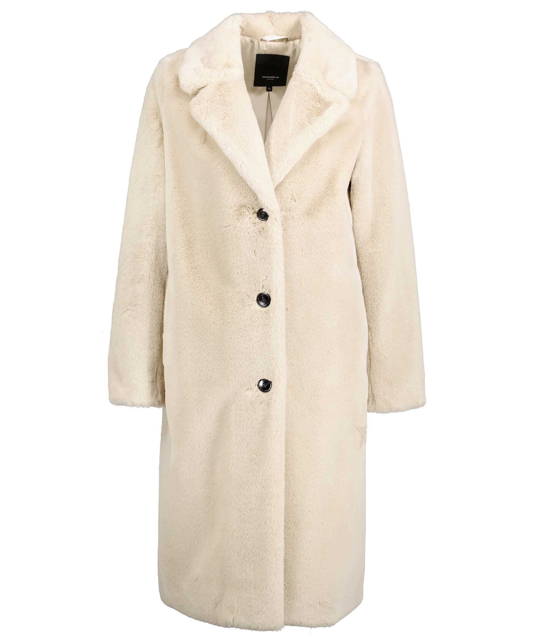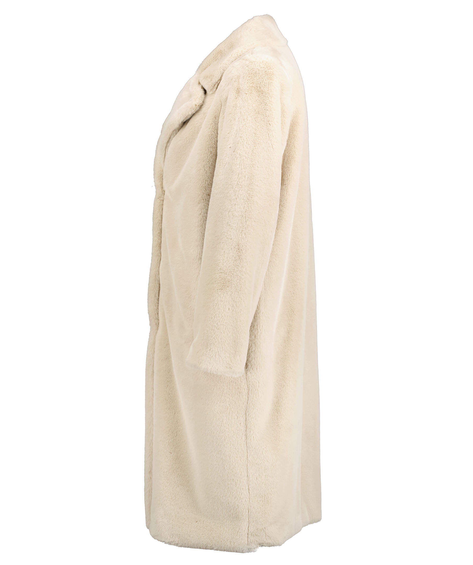 Benvit enkelknäppt kappa med slag tillverkad i konstpäls från. Stängs framtill med knappar. Två fickor framtill. Innerficka som stängs med dragkedja.