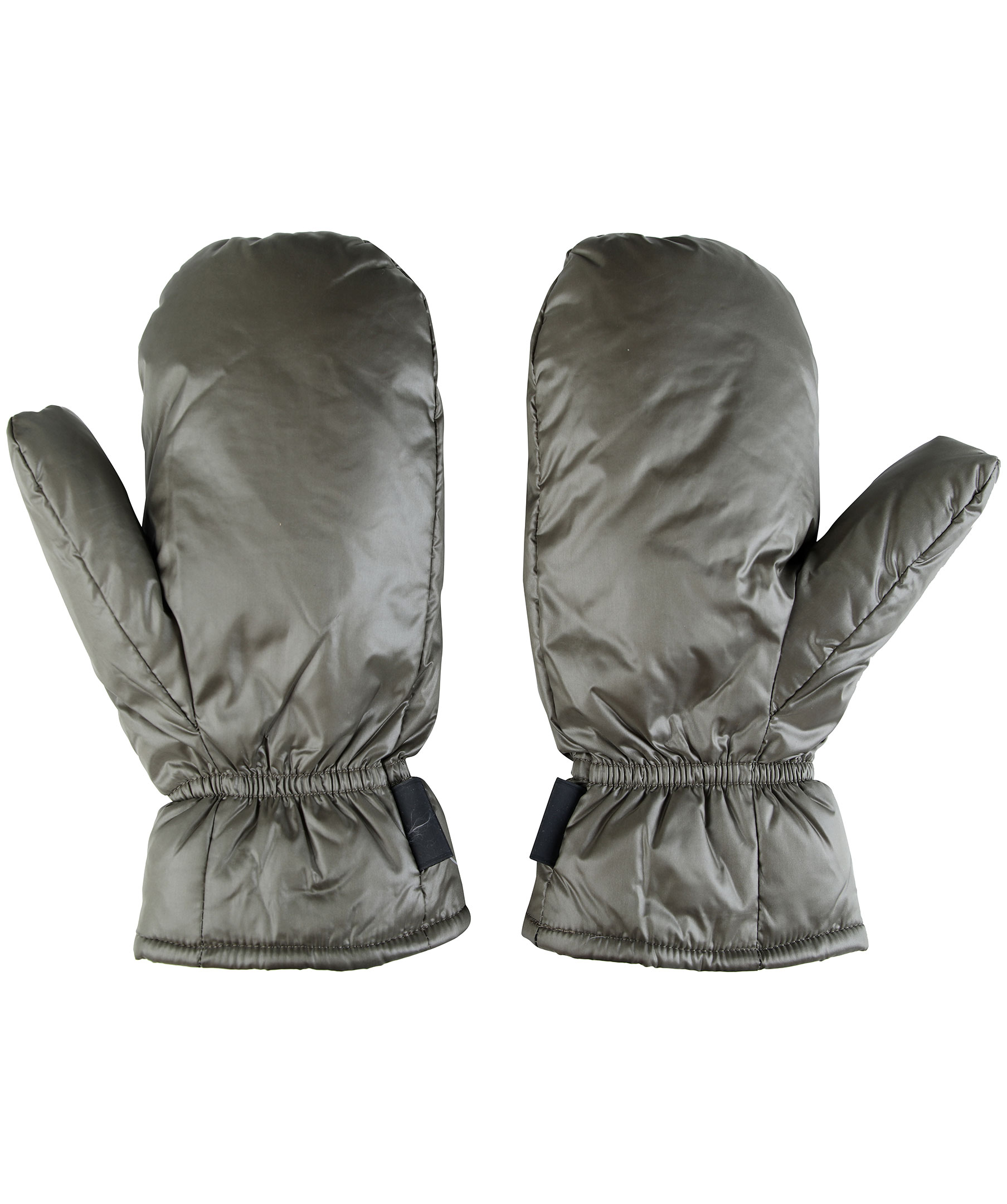 Olivgröna, vadderade tumvantar med dunfyllning från Rockandblue. Tillverkade i nylontyg med vattenavvisande BIONIC-FINISH®ECO. Mysigt fleecefoder för värme och mjuk känsla och elastisk söm vid handleden. Liten logotyp på utsidan av handleden på liten patch som sticker ut.