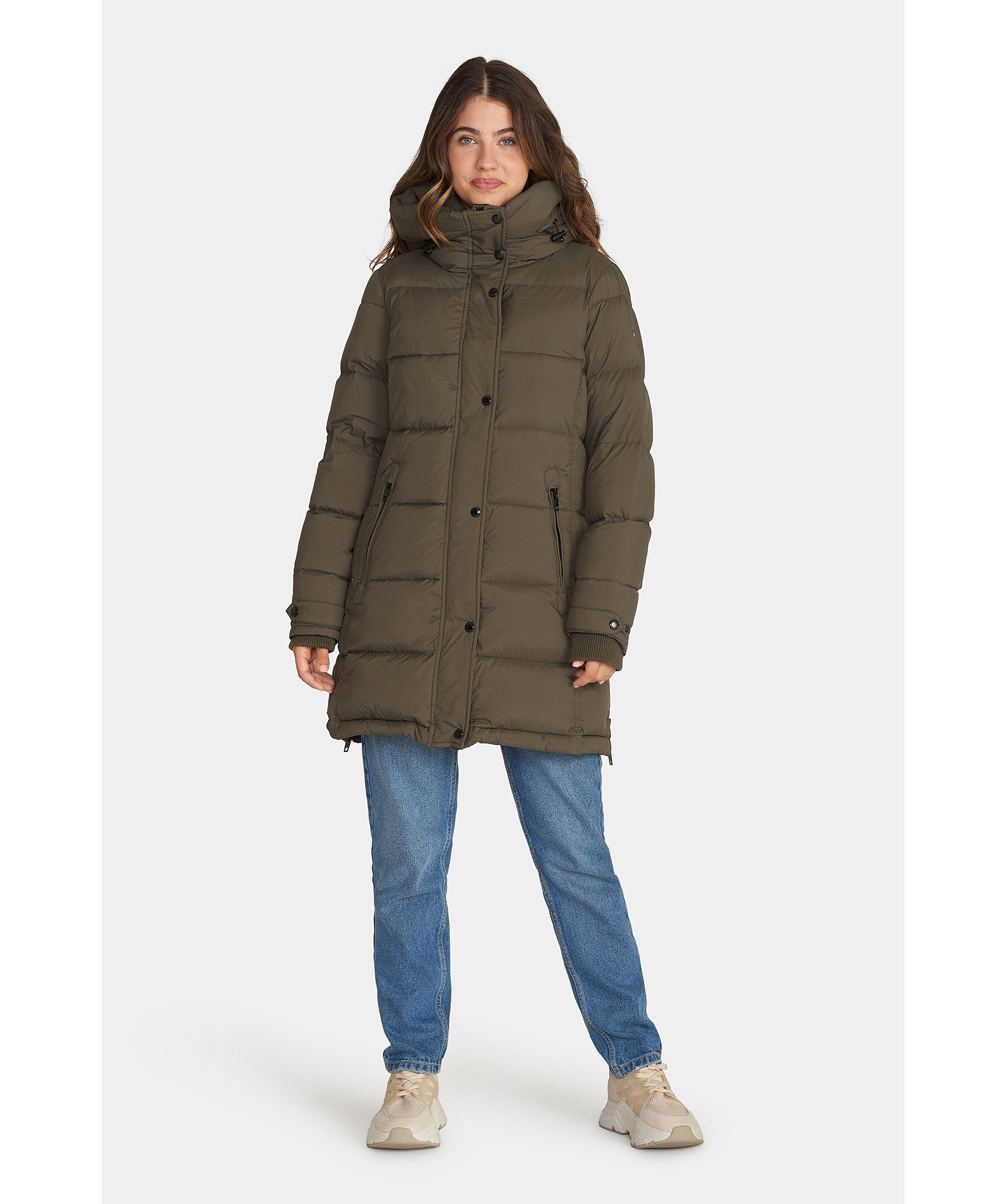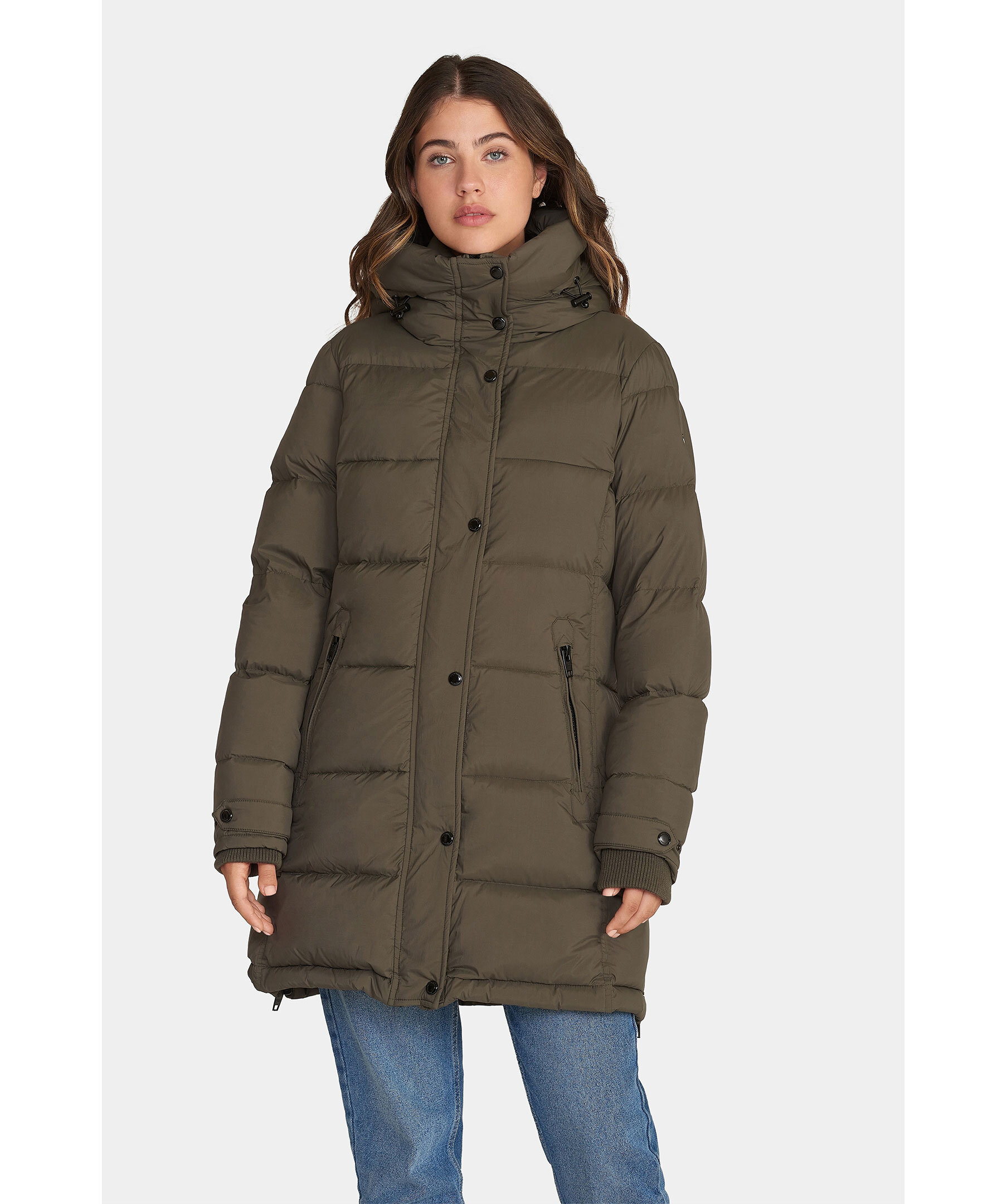 Skogsgrön quiltad dunjacka från Rockandblue. Stängs framtill med tvåvägsdragkedja och tryckknappar. Snedställda fickor som stängs med dragkedja. Justerbart ärmslut med rem och tryckknappar. Ribbstickad mudd vid ärmslut.