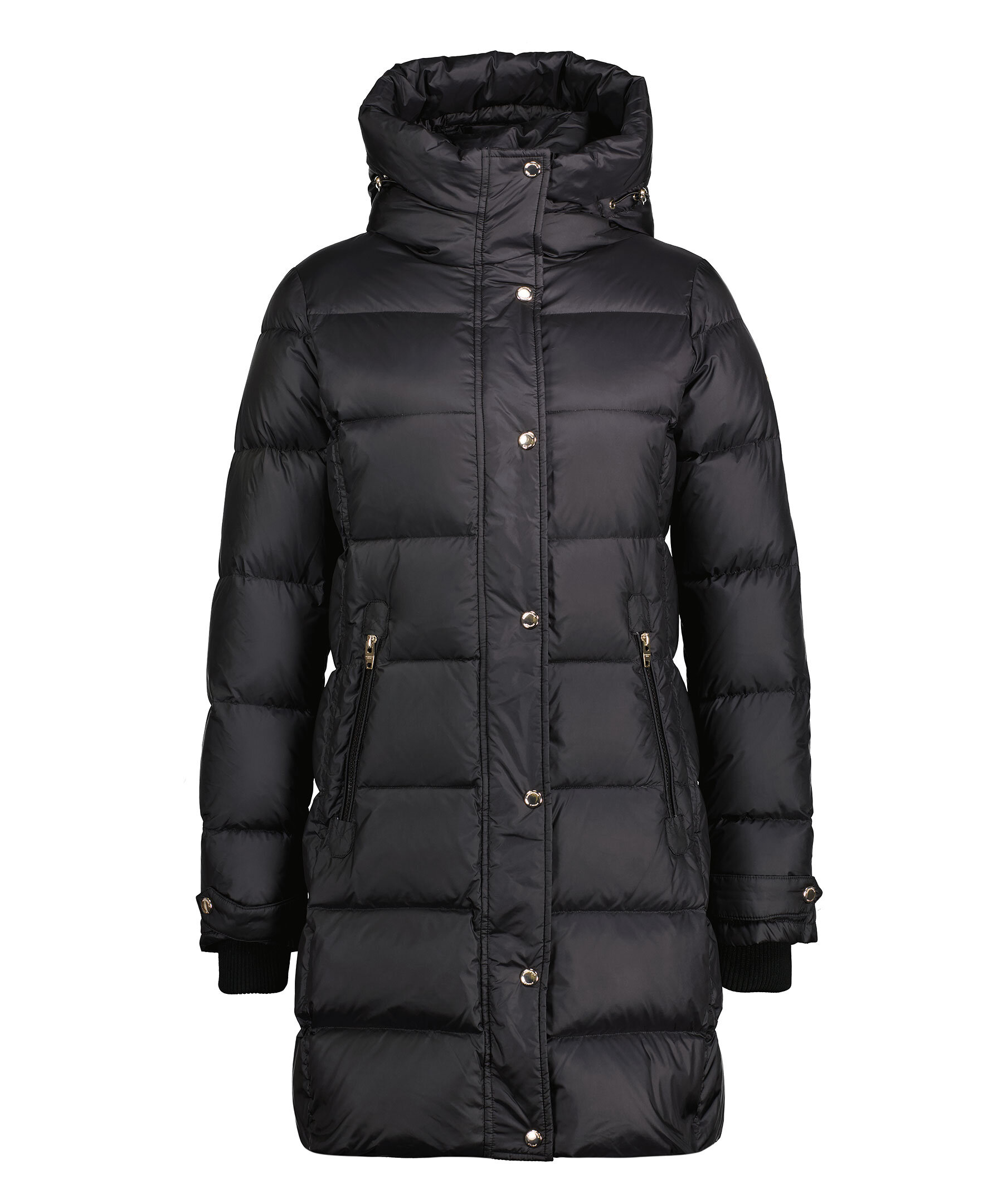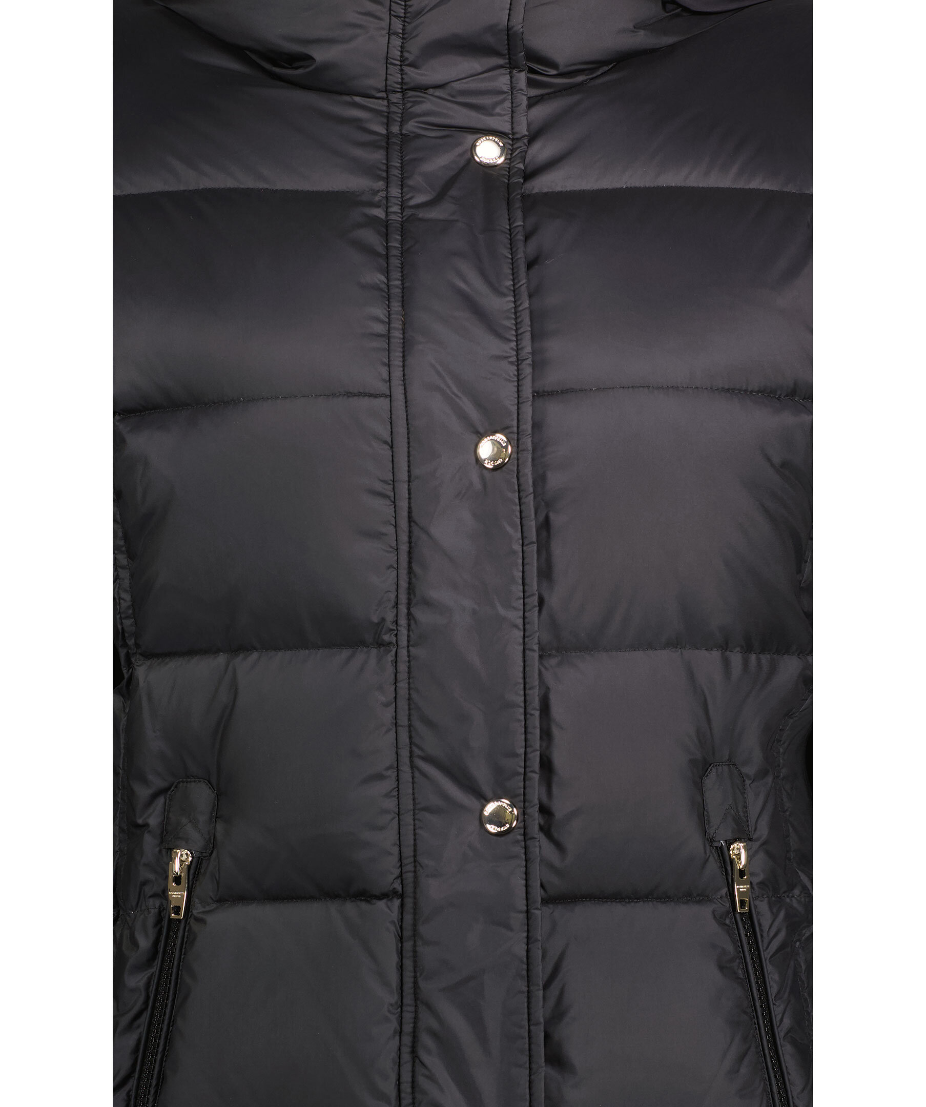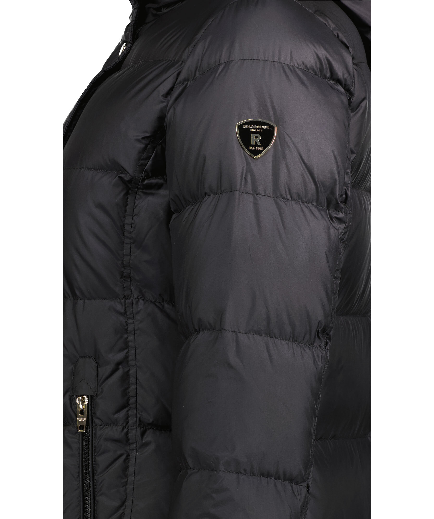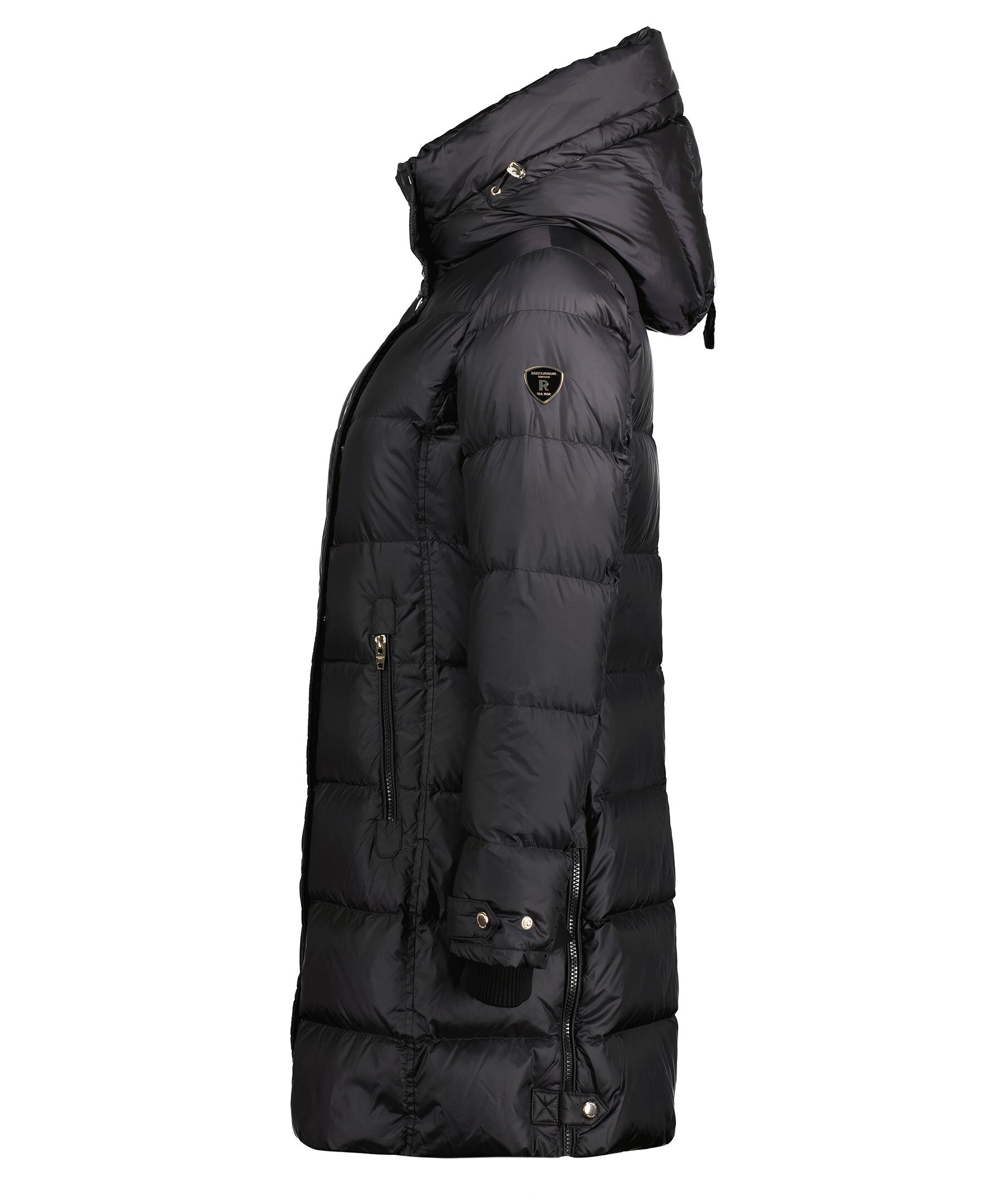 Svart quiltad dunkappa från Rockandblue. Stängs framtill med guldfärgade knappar och dragkedja. Bricka med logotyp på vänster. Två fickor framtill som stängs med dragkedja. Innerficka som stängs med dragkedja.
