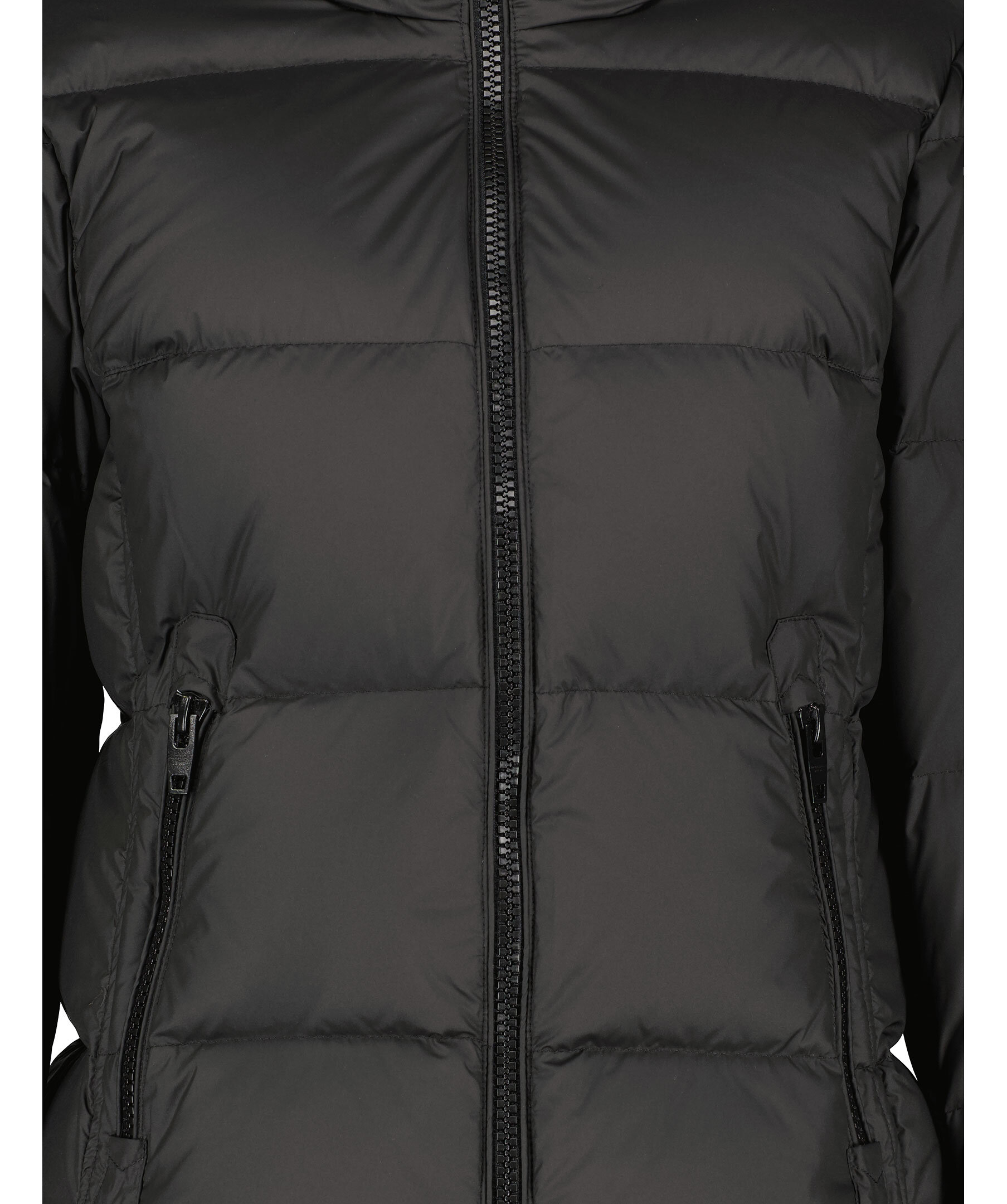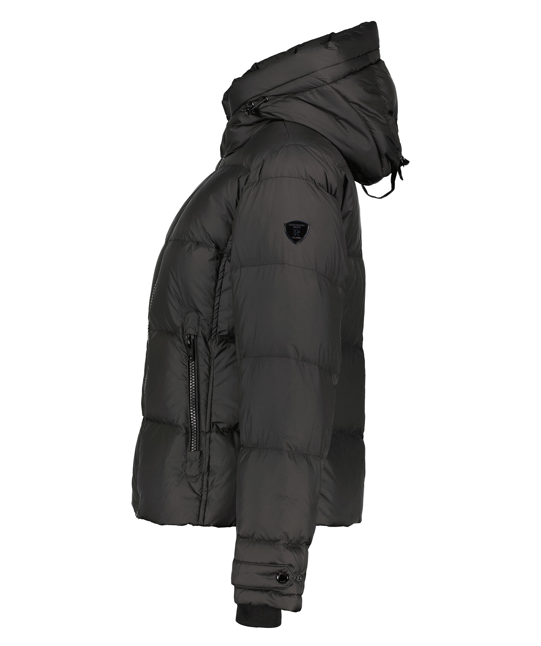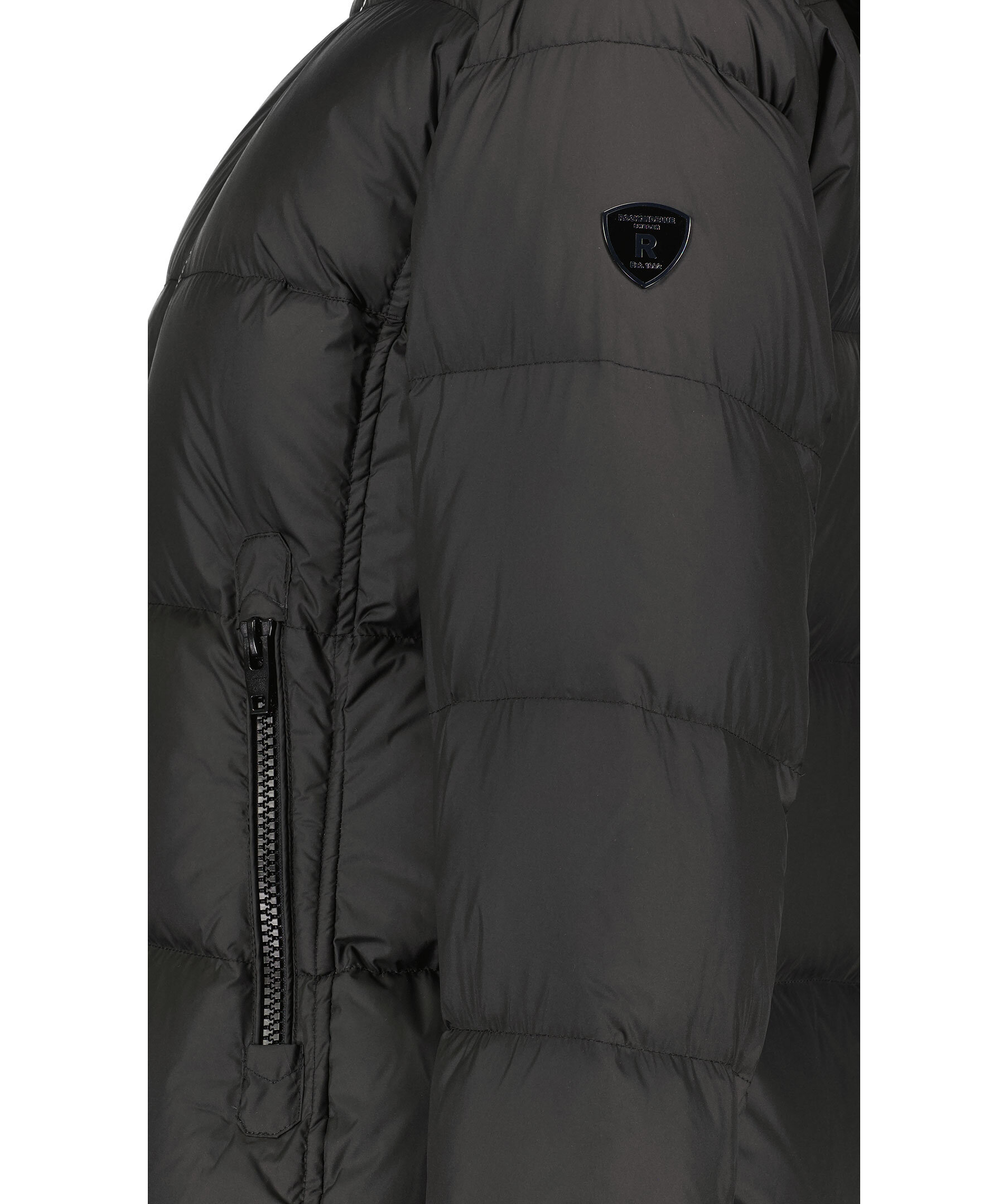 Svart quiltad dunjacka från Rockandblue. Stängs framtill med dragkedja. Två fickor framtill som stängs med dragkedja. Justerbart ärmslut med rem och tryckknapp. Ribbstickad mudd vid ärmslut. Luva med dragsko och justerbart spänne.