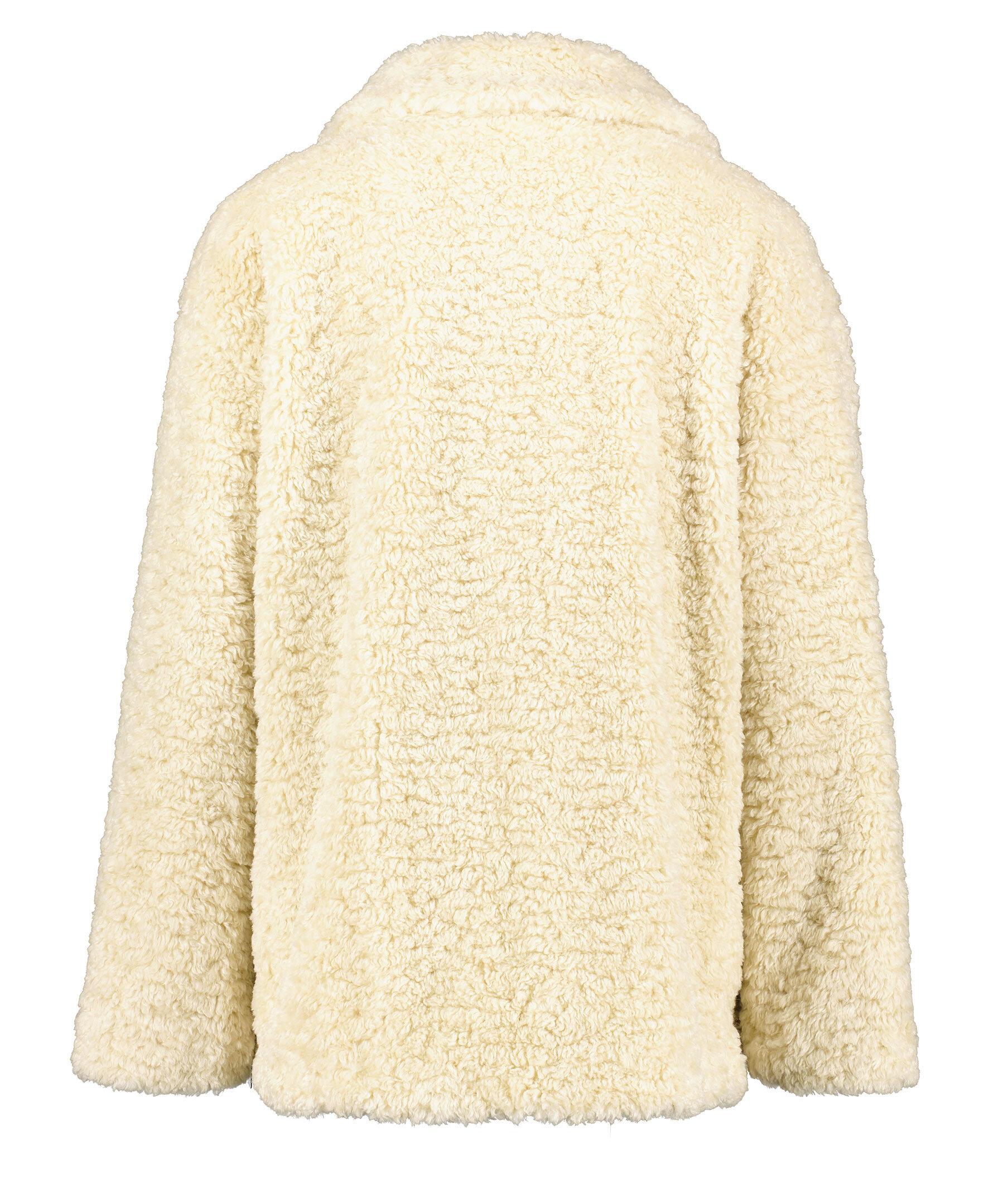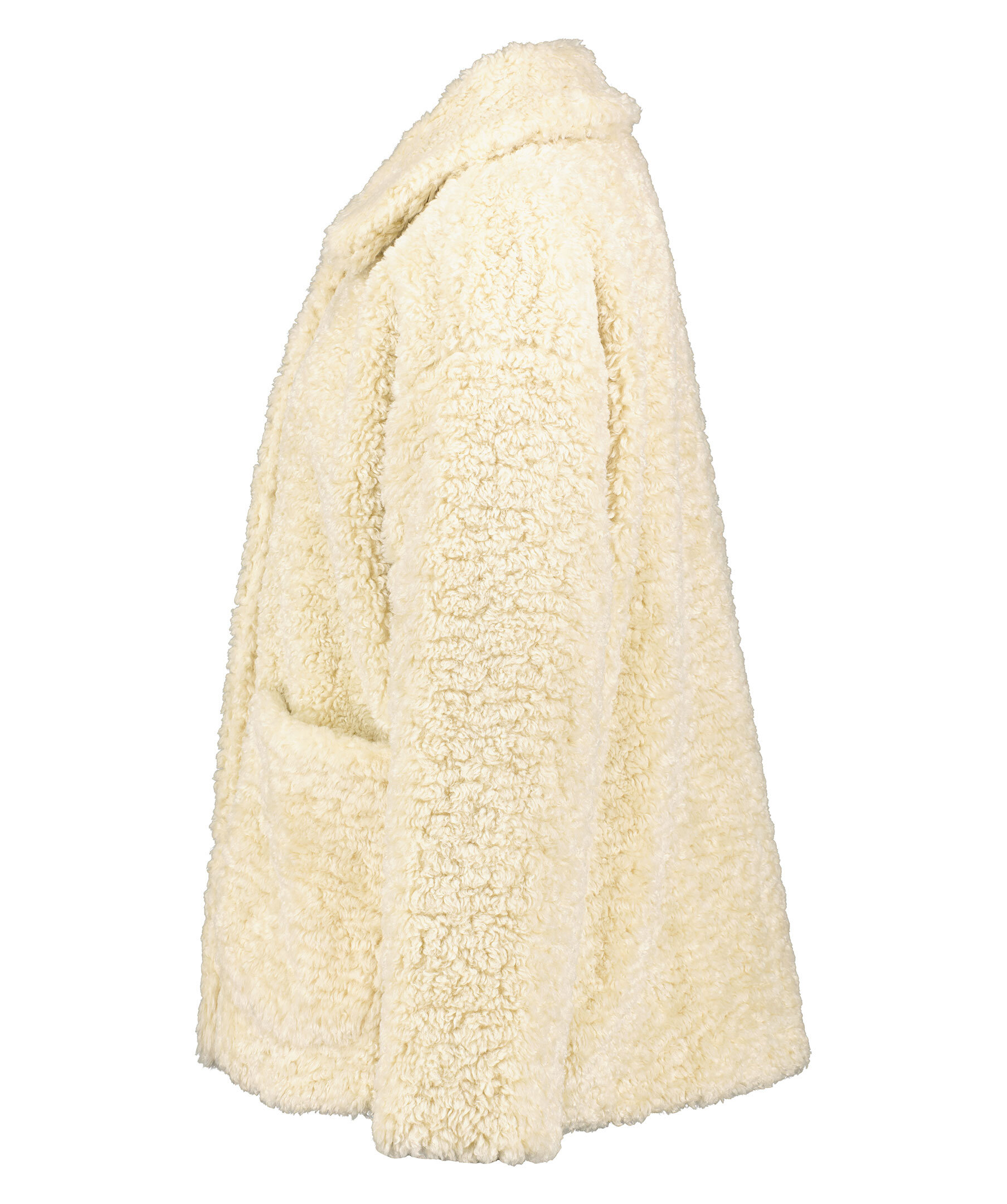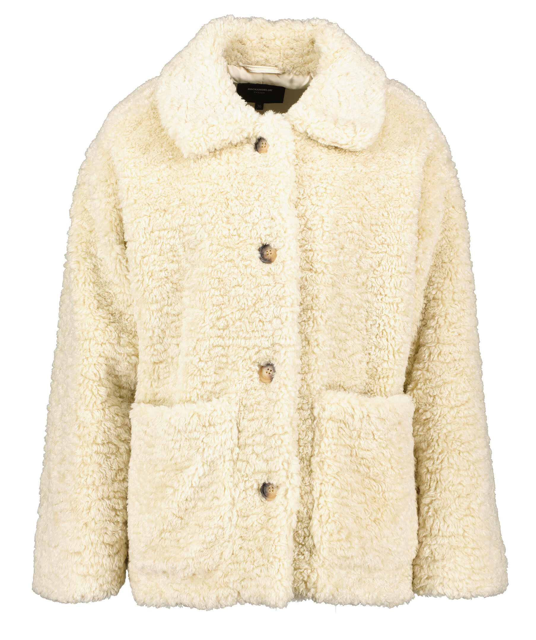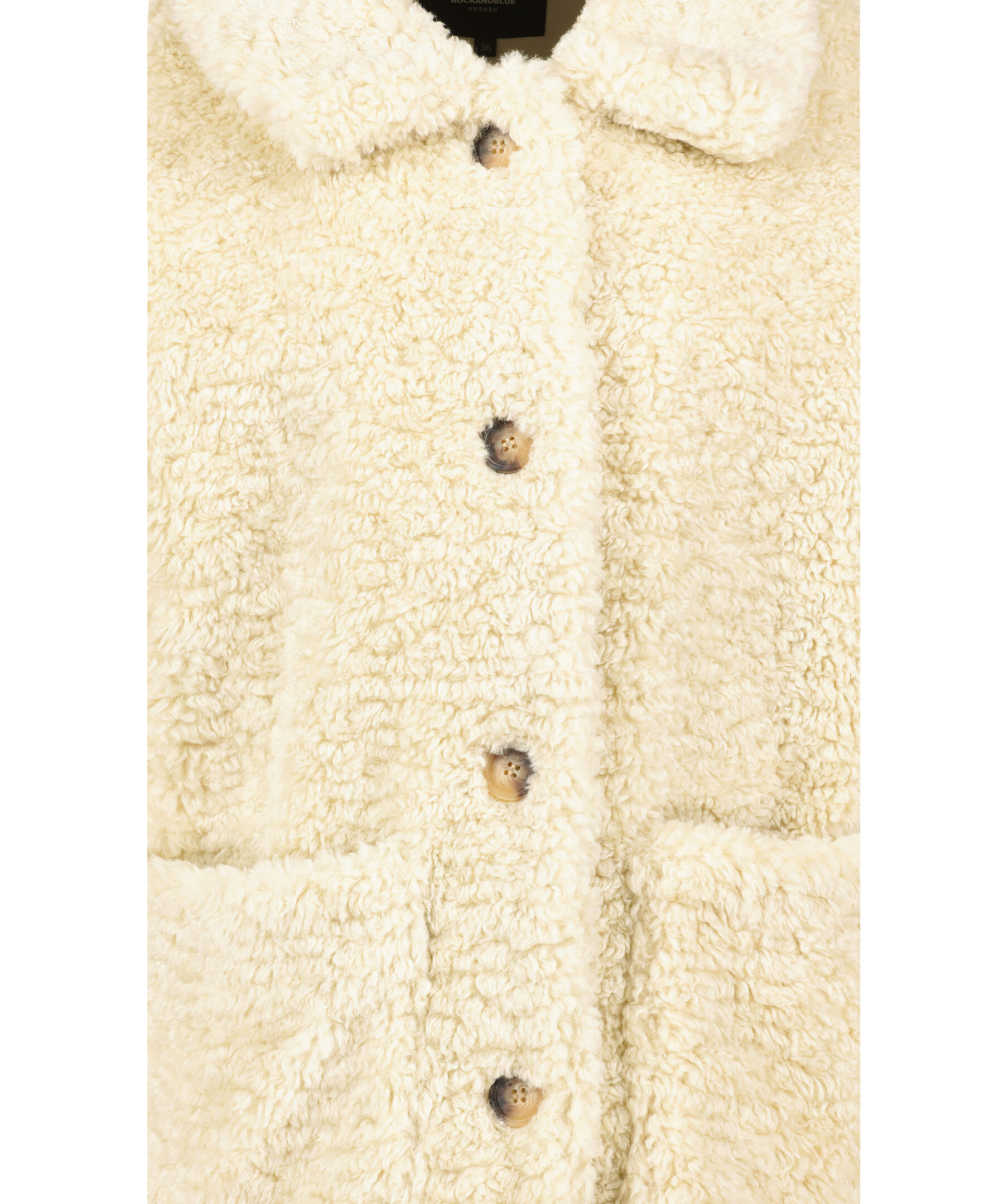 Ljusbeige jacka gjord i teddymaterial från RockandBlue. Jackan stängs framtill med knappar. Två fickor framtill. Innerficka som stängs med dragkedja. Tillverkad i polyester.