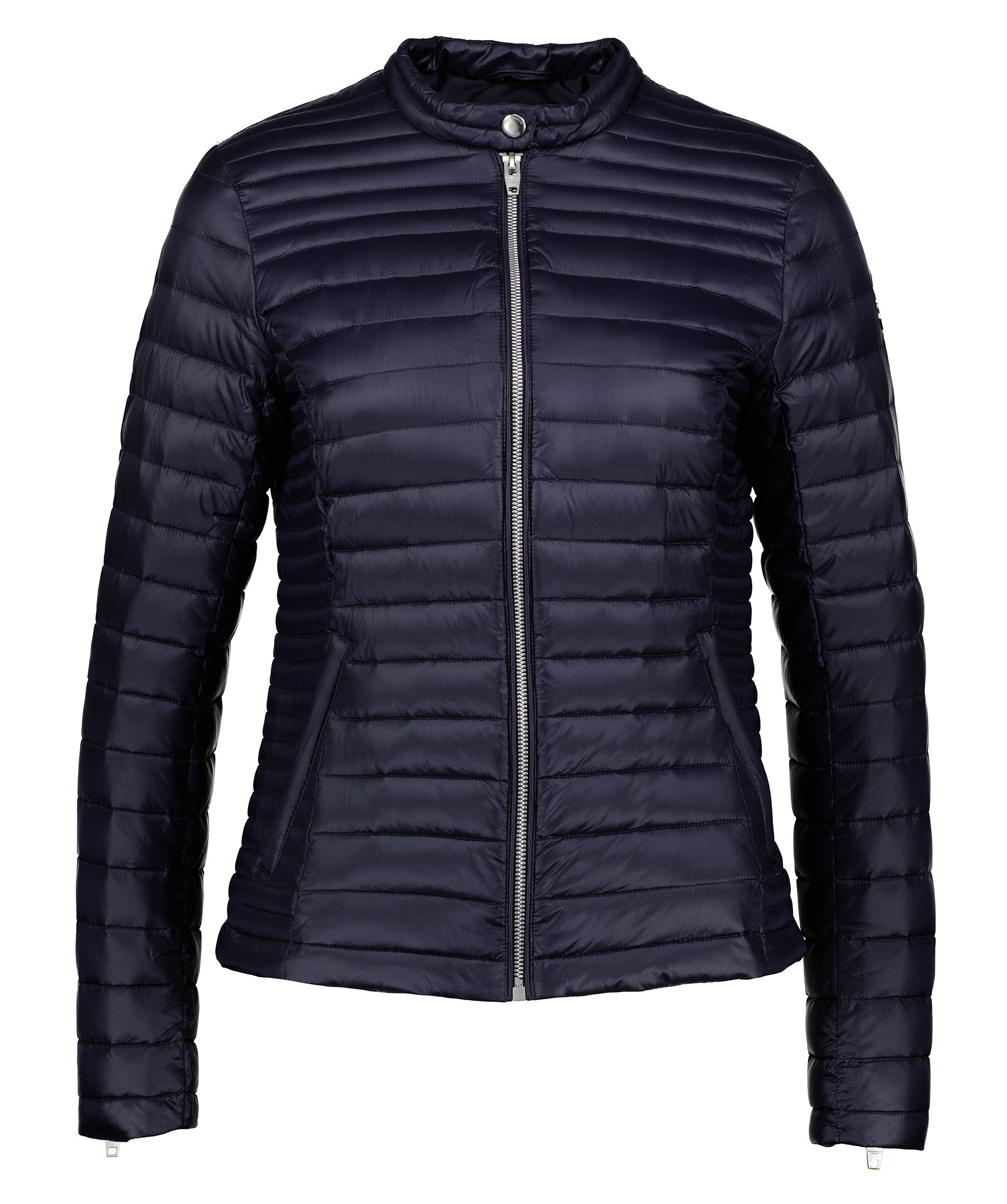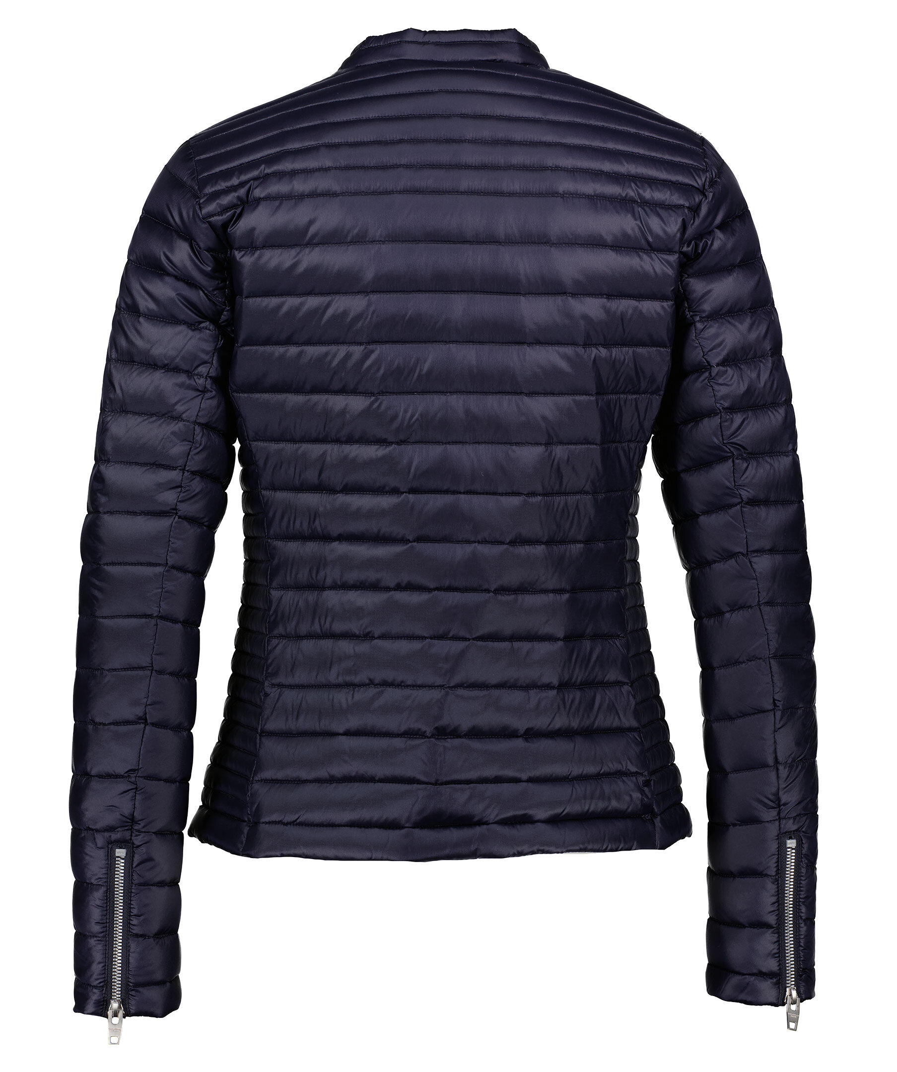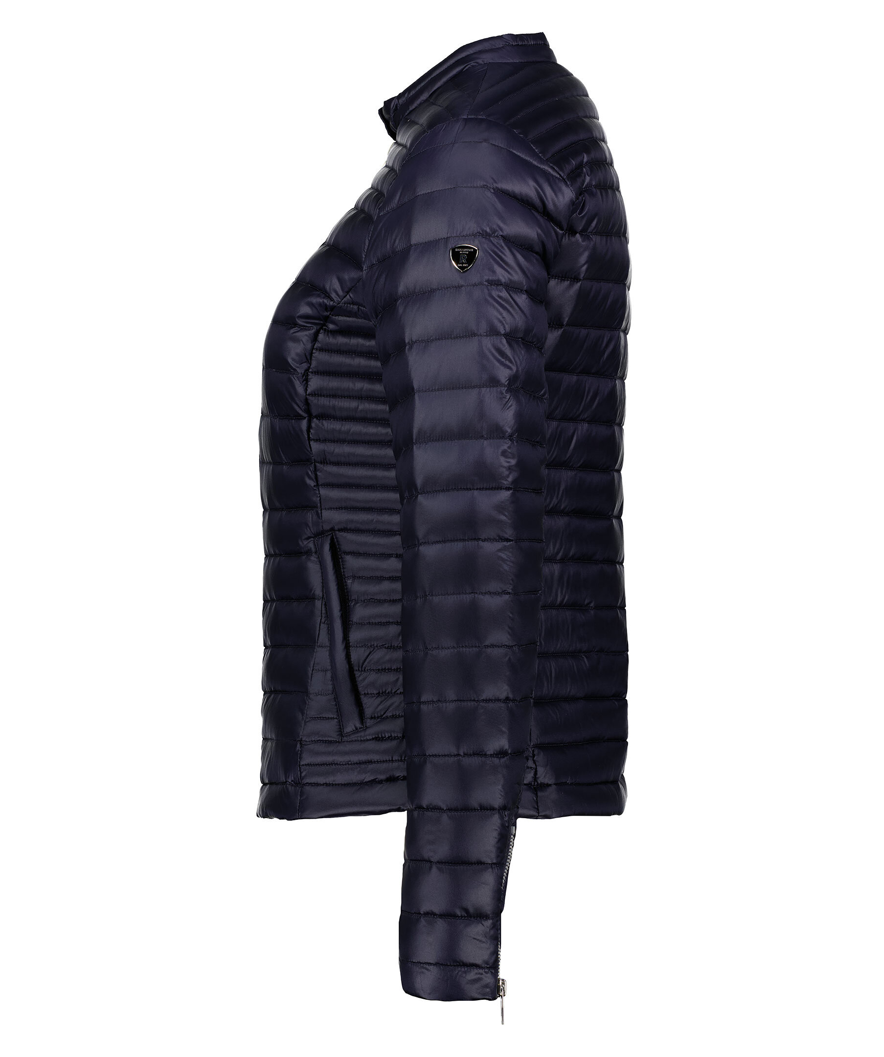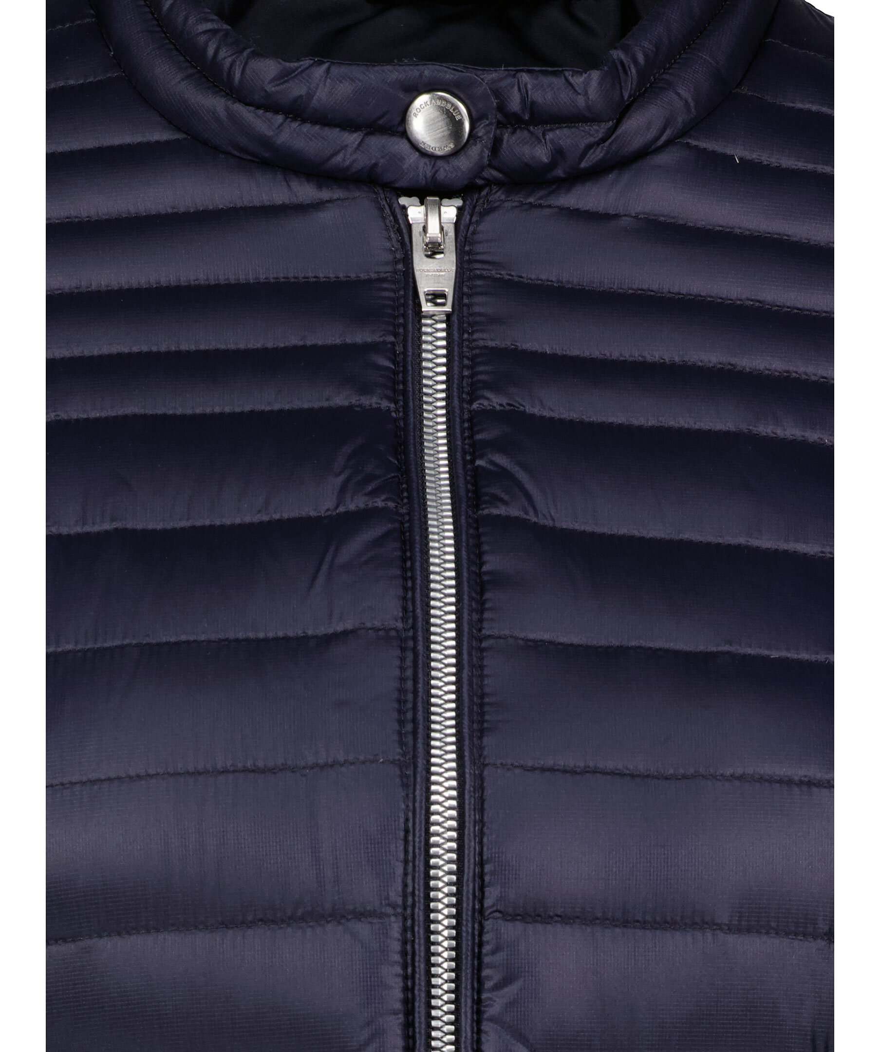 Marinblå lättviktsdunjacka från Rockandblue. Figursydd, panelquiltad, två framfickor och en innerficka. Dragkedja vid ärmslutet. Stängs med dragkedja och knapp vid kragen. Logotyp på vänster överärm. Vattenavvisande yttertyg.
