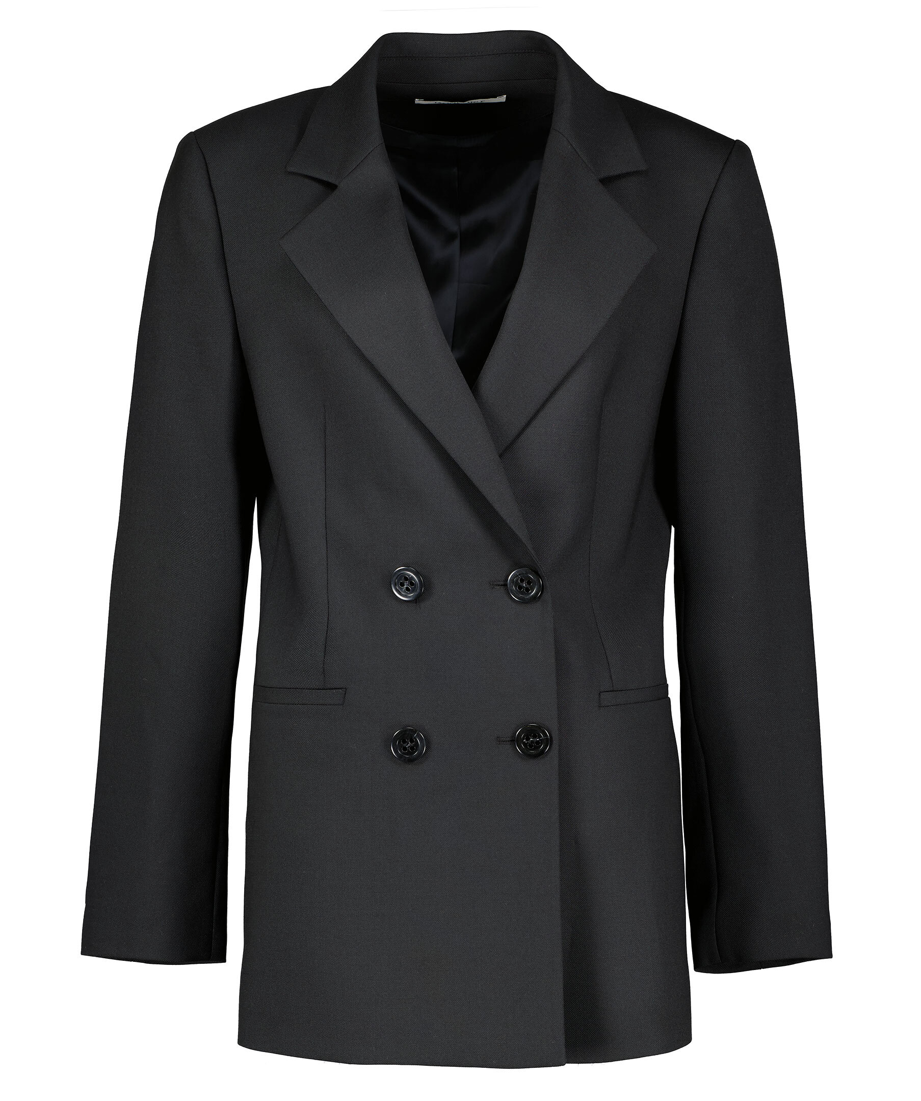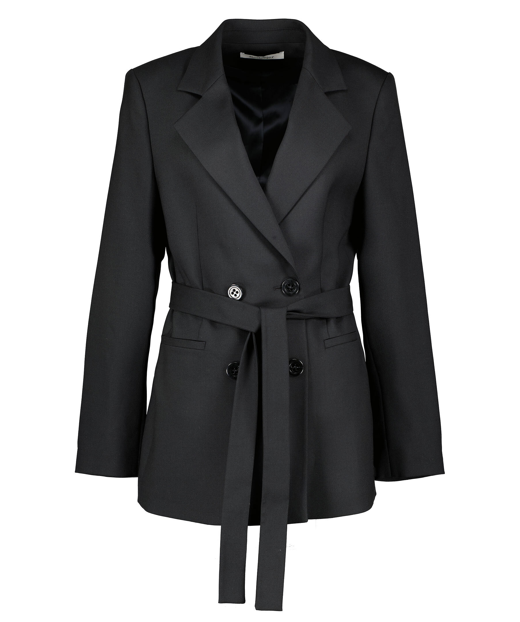 Svart Dubbelknäppt kavaj från Rodebjer. Avtagbart bälte. Sprund baktill. Två fickor framtill. Designad för avslappnad passform, gå ned en storlek för en mer figurnära passform.