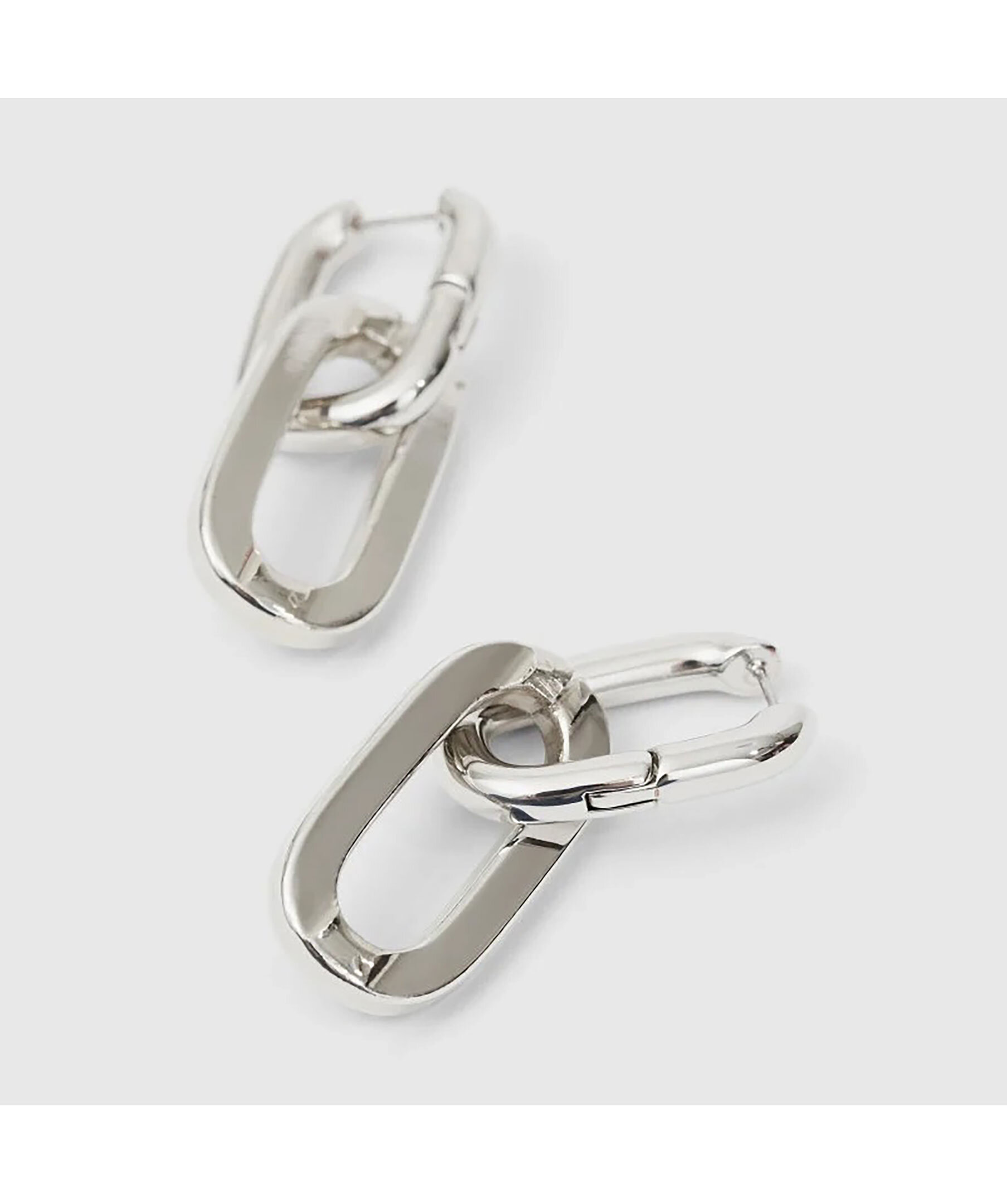 Silverfärgade örhängen från Rodebjer med två länkar som hänger sitter ihop. Stängning upptill. 5 cm långa och 1,8cm breda.