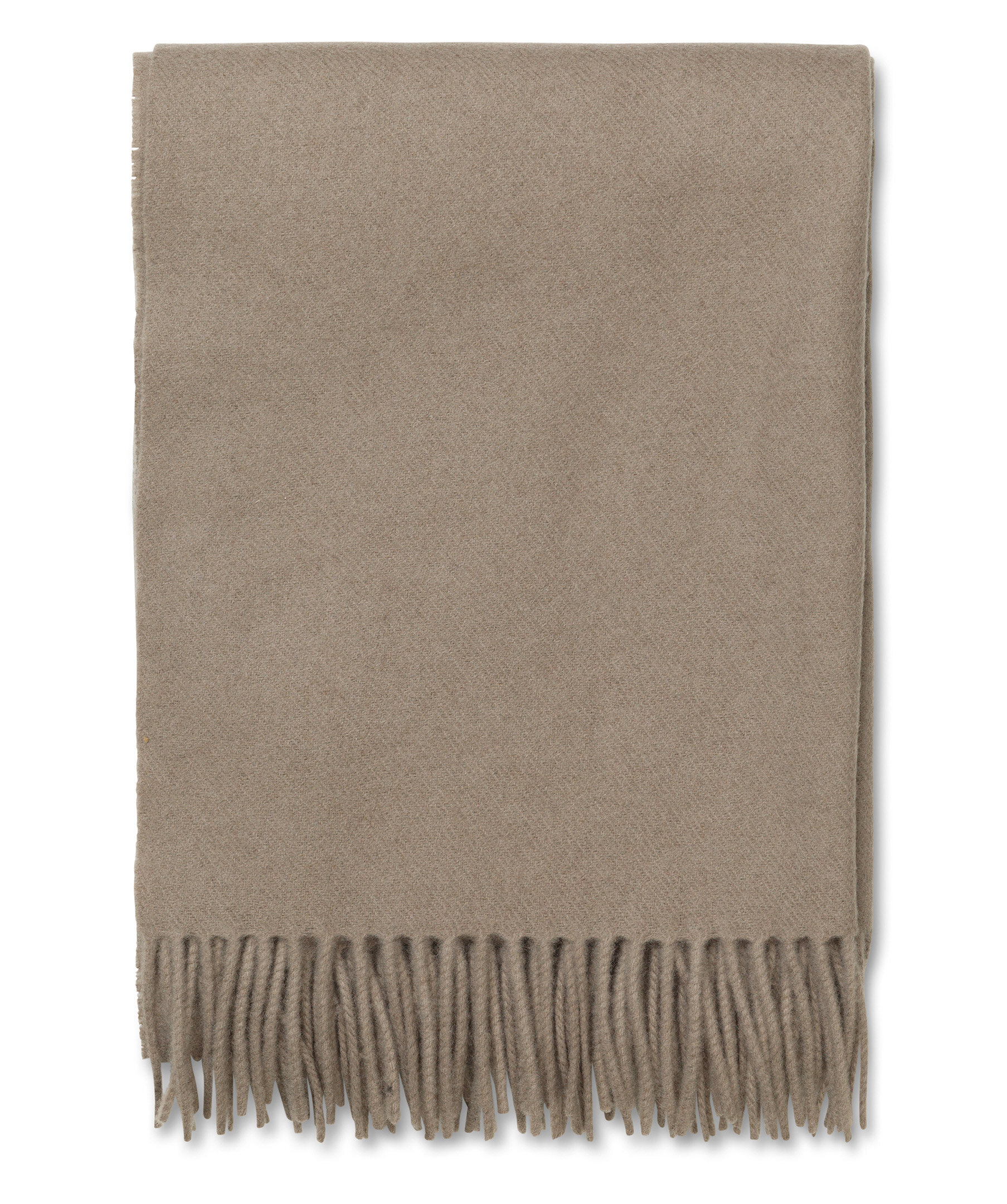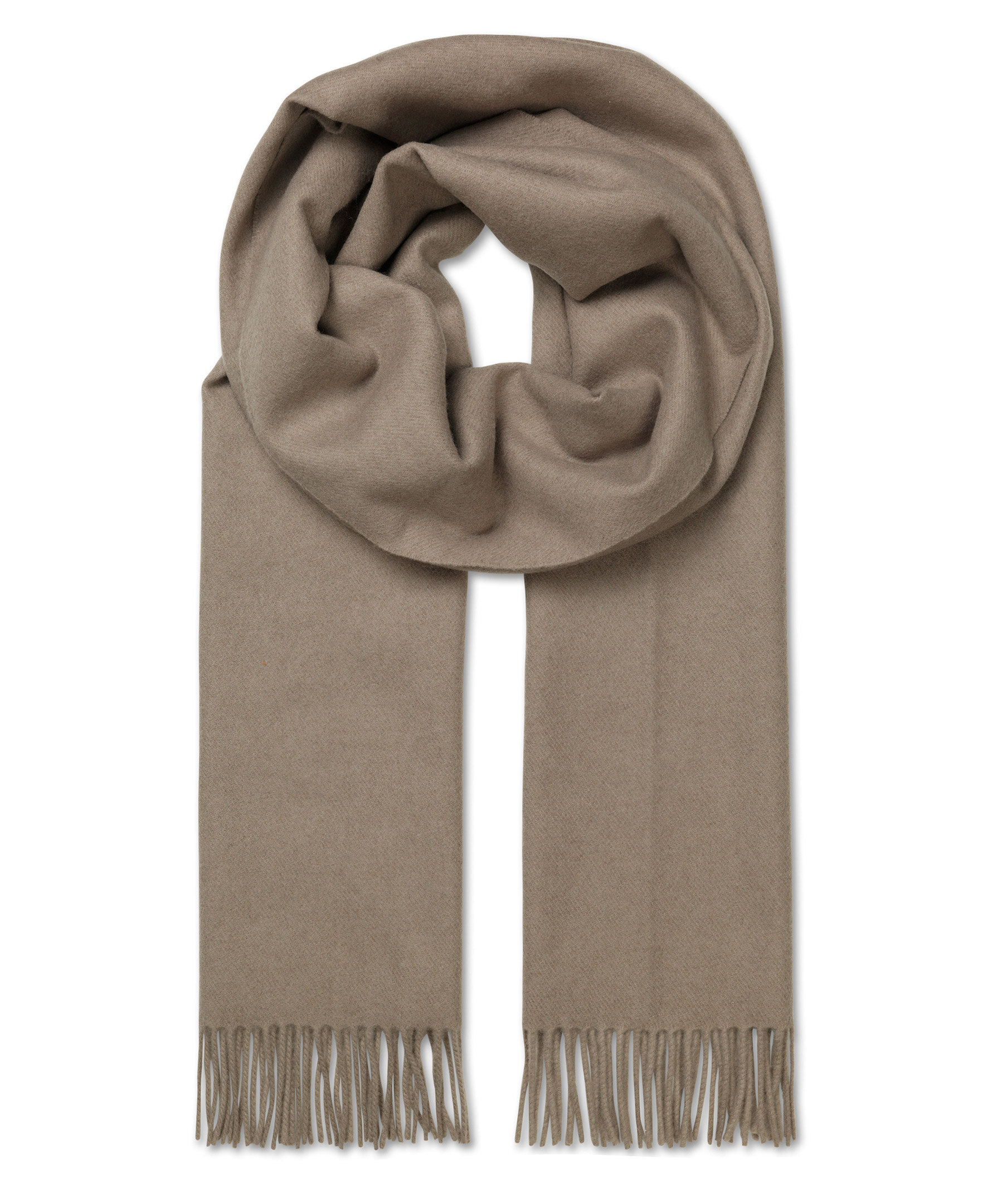 Beige halsduk från Samsoe Samsoe. Fransar i kansterna, tillverkad i en blandning av ull och kashmir. Halsduken är 204 cm lång och 55 cm bred.