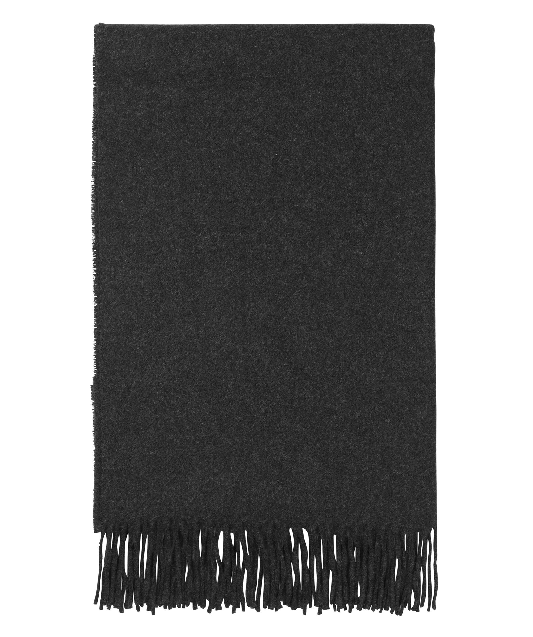 Svart halsduk från Samsoe Samsoe. Fransar i kanterna, tillverkad i en blandning av ull och kashmir. Halsduken är 204 cm lång och 55 cm bred.