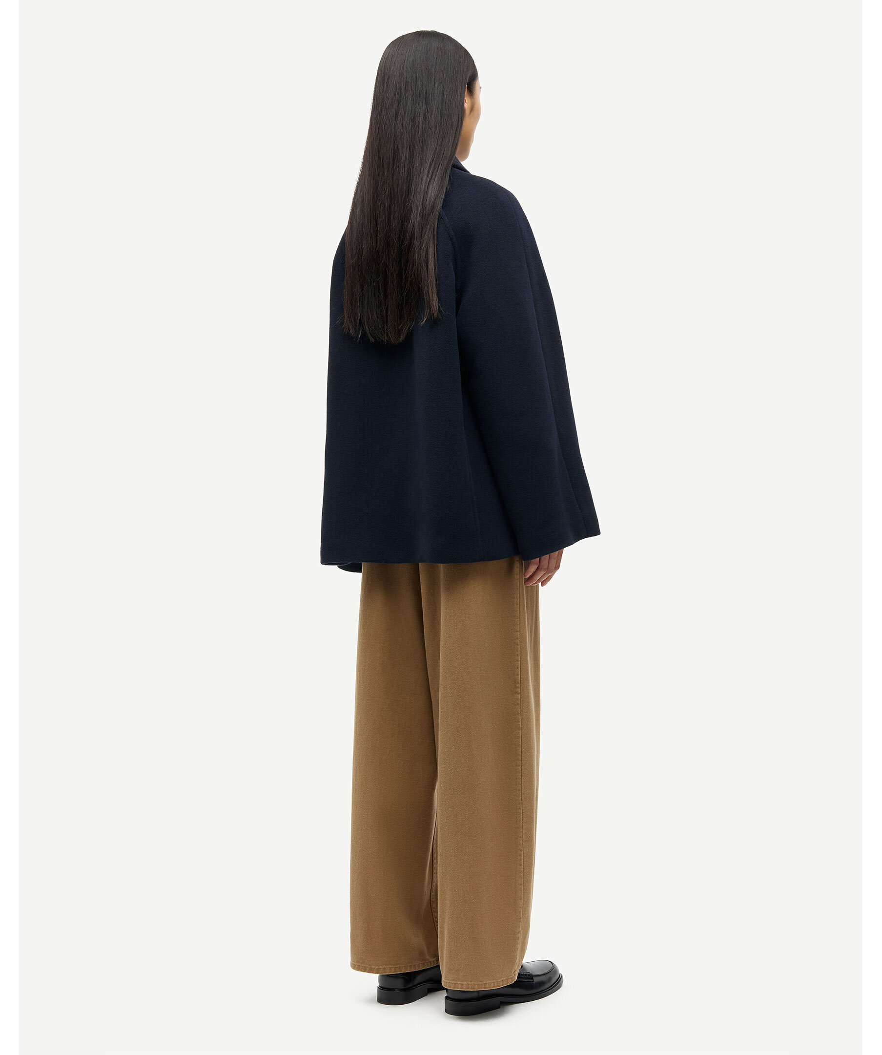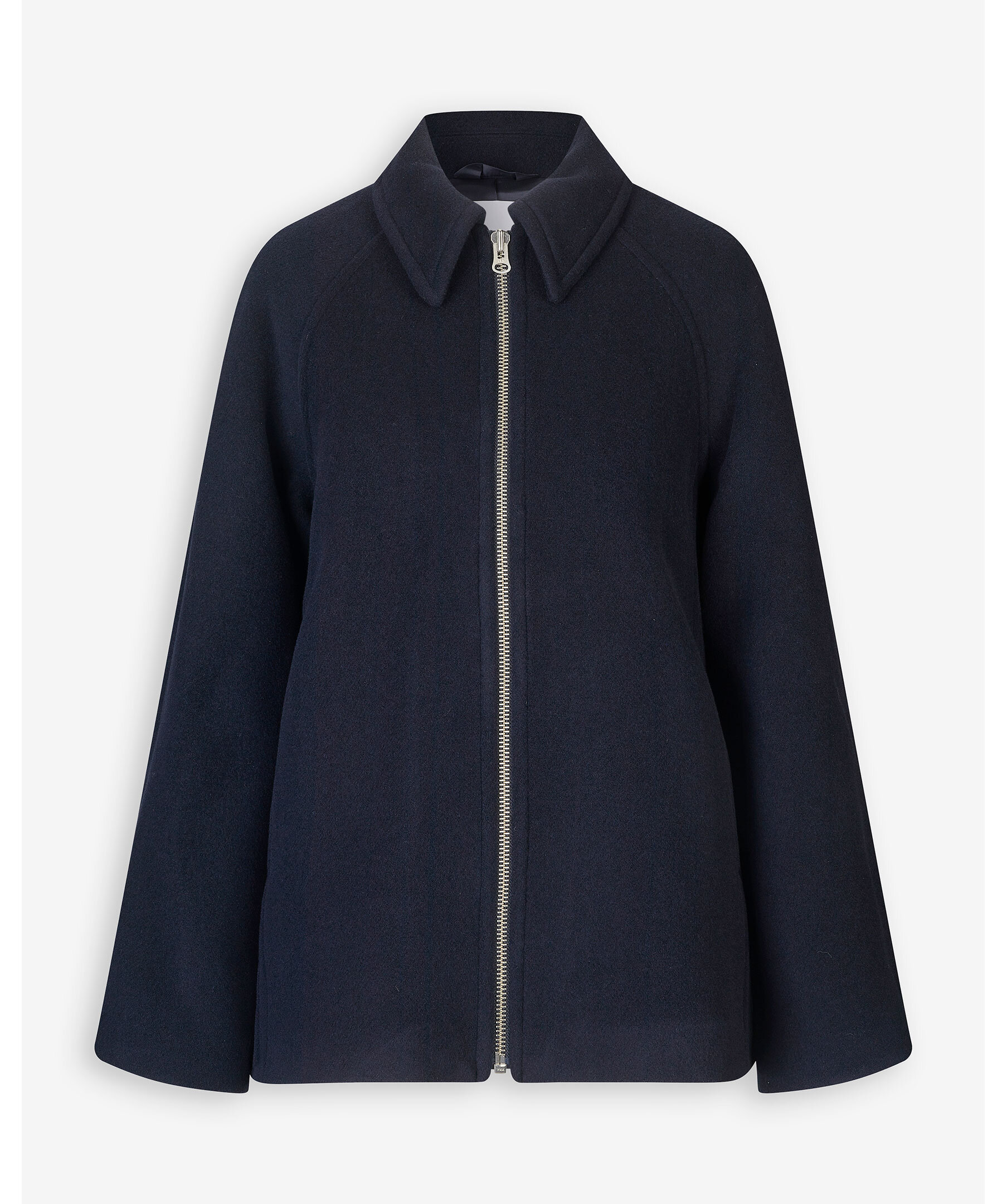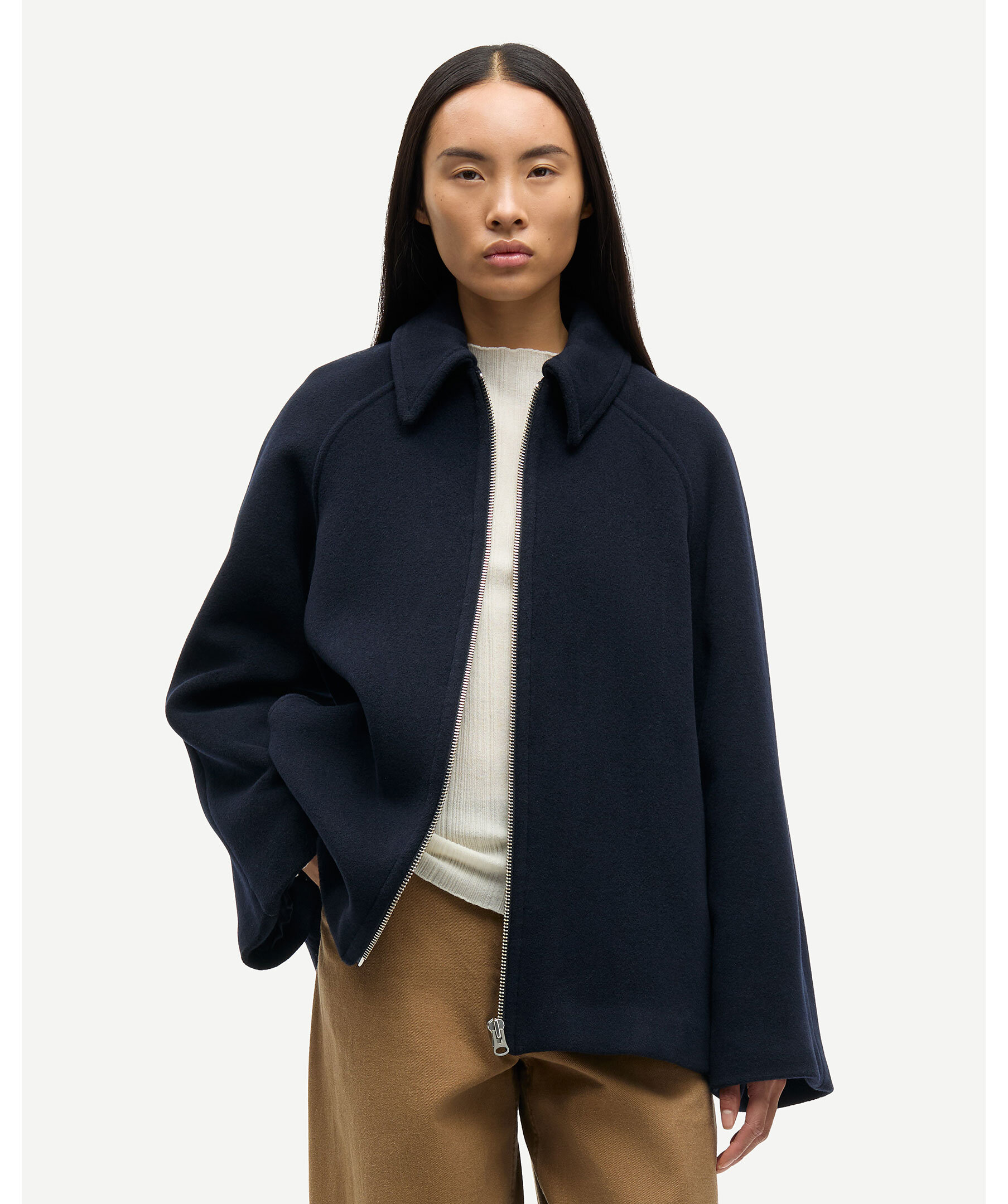 Marinblå jacka från Samsøe Samsøe. Jackan har en stilren design och en avslappnad passform. Dragkedjestängning fram, sidofickor och en innerficka för praktisk förvaring. Jackan är vadderad med Meida-isolering och är tillverkad i Manteco MWool®, en återvunnen ullblandning vävd i Italien. Den perfekta jackan för att hålla värmen under kalla dagar, samtidigt som den erbjuder ett elegant och hållbart alternativ.