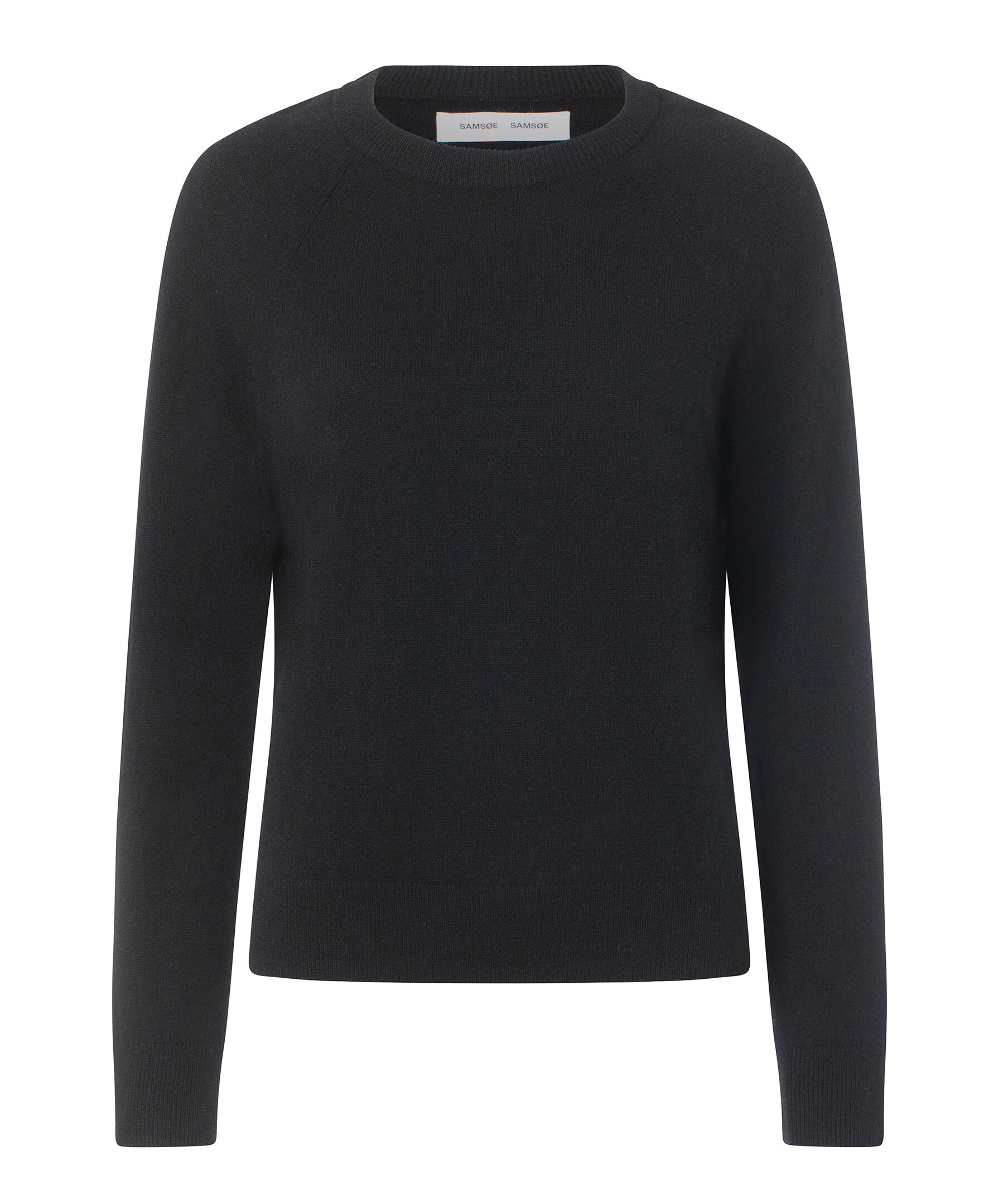 Svart finstickad tröja från Samsøe Samsøe. Ribbstickade muddar vid halsring, ärm och plaggslut. Tillverkad i 100% Kashmir.
