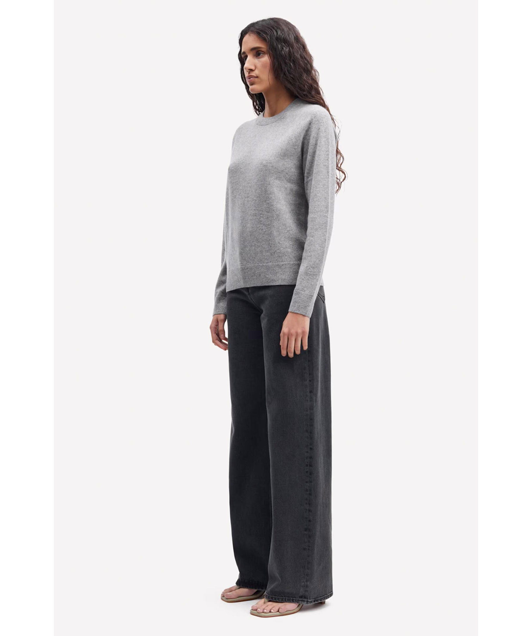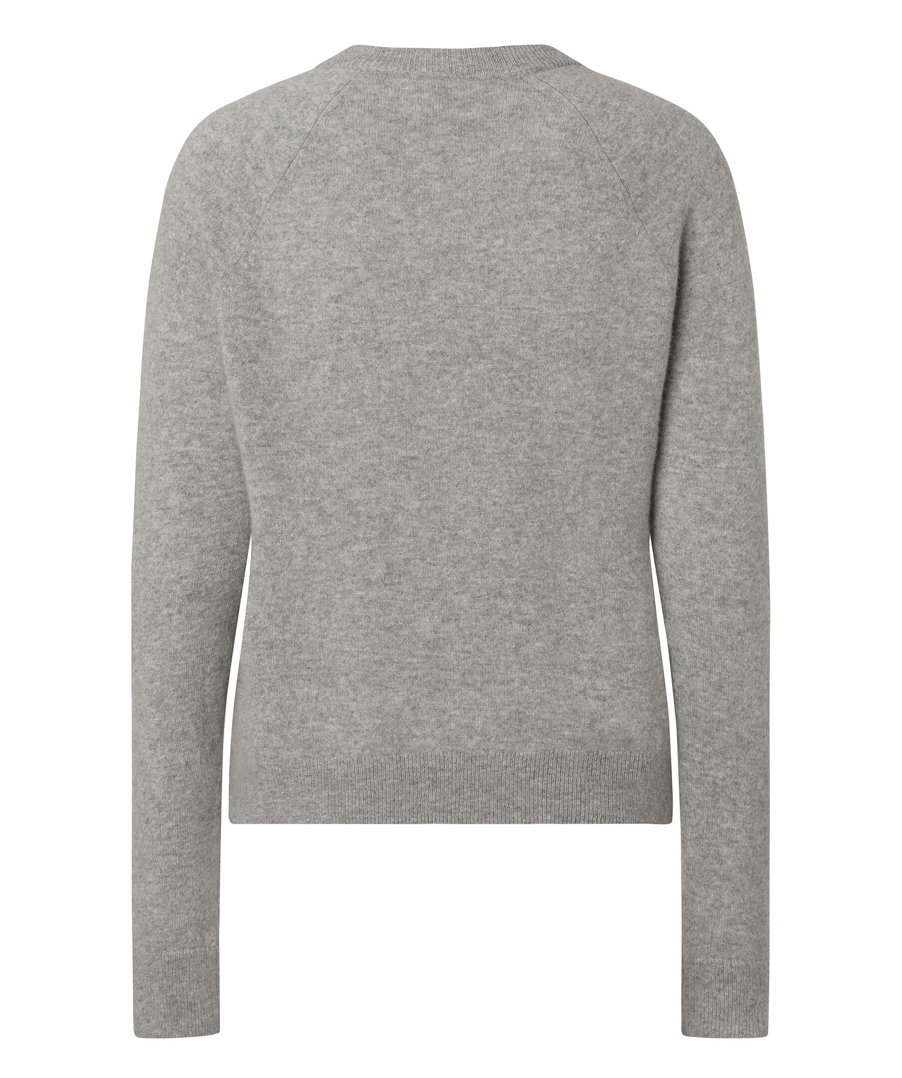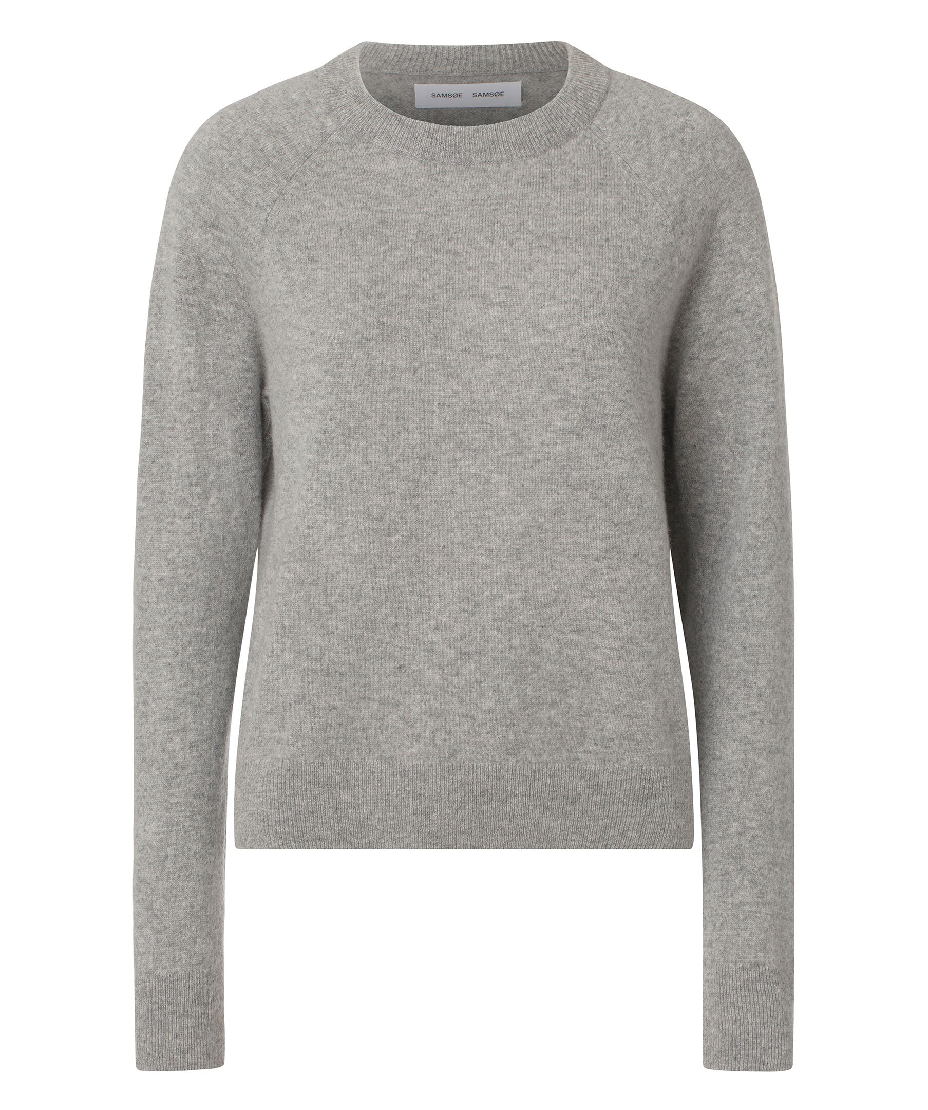 Grå tröja med lös passform och raglanärmar från Samsoe Samsoe. Ribbstickade detaljer vid rund halsringning, ärmslut och nederkant. Finstickad i 100% kashmir. Denna produkt är GCS-certifierad, vilket säkerställer ansvarsfull produktion av kashmirull.
