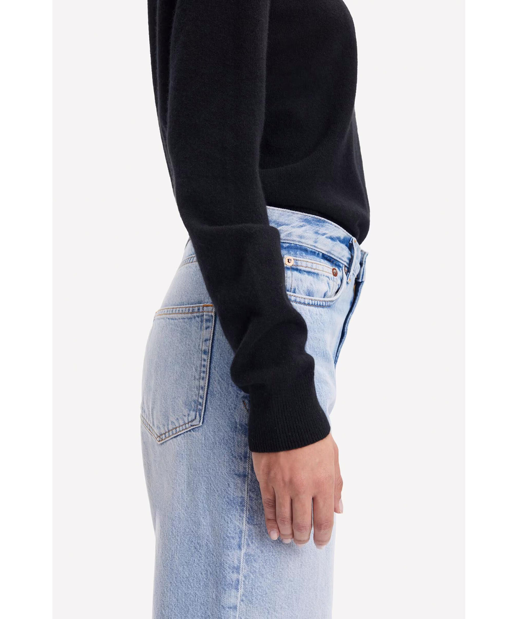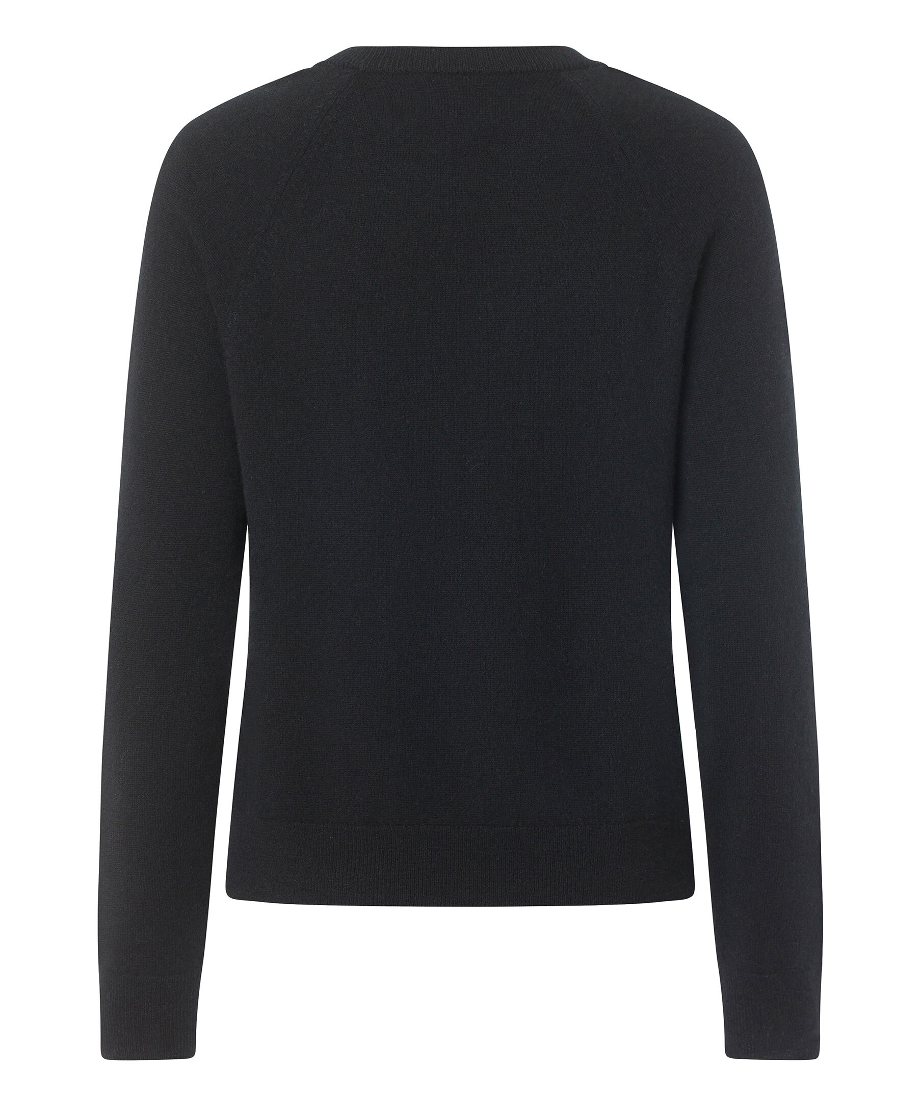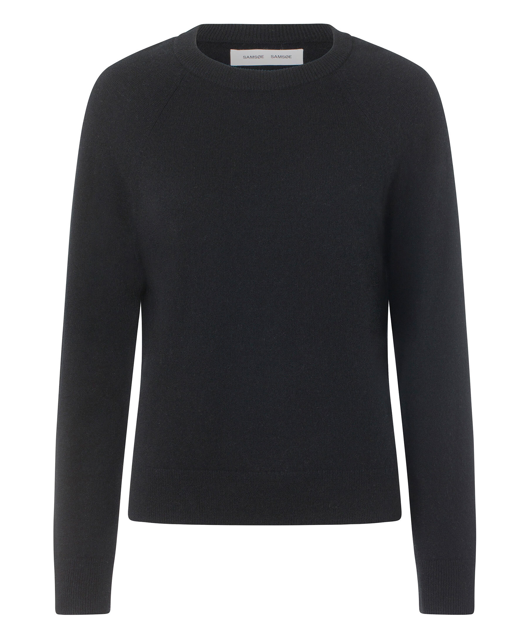 Svart tröja med lös passform och raglanärmar från Samsoe Samsoe. Ribbstickade detaljer vid rund halsringning, ärmslut och nederkant. Finstickad i 100% kashmir. Denna produkt är GCS-certifierad, vilket säkerställer ansvarsfull produktion av kashmirull.